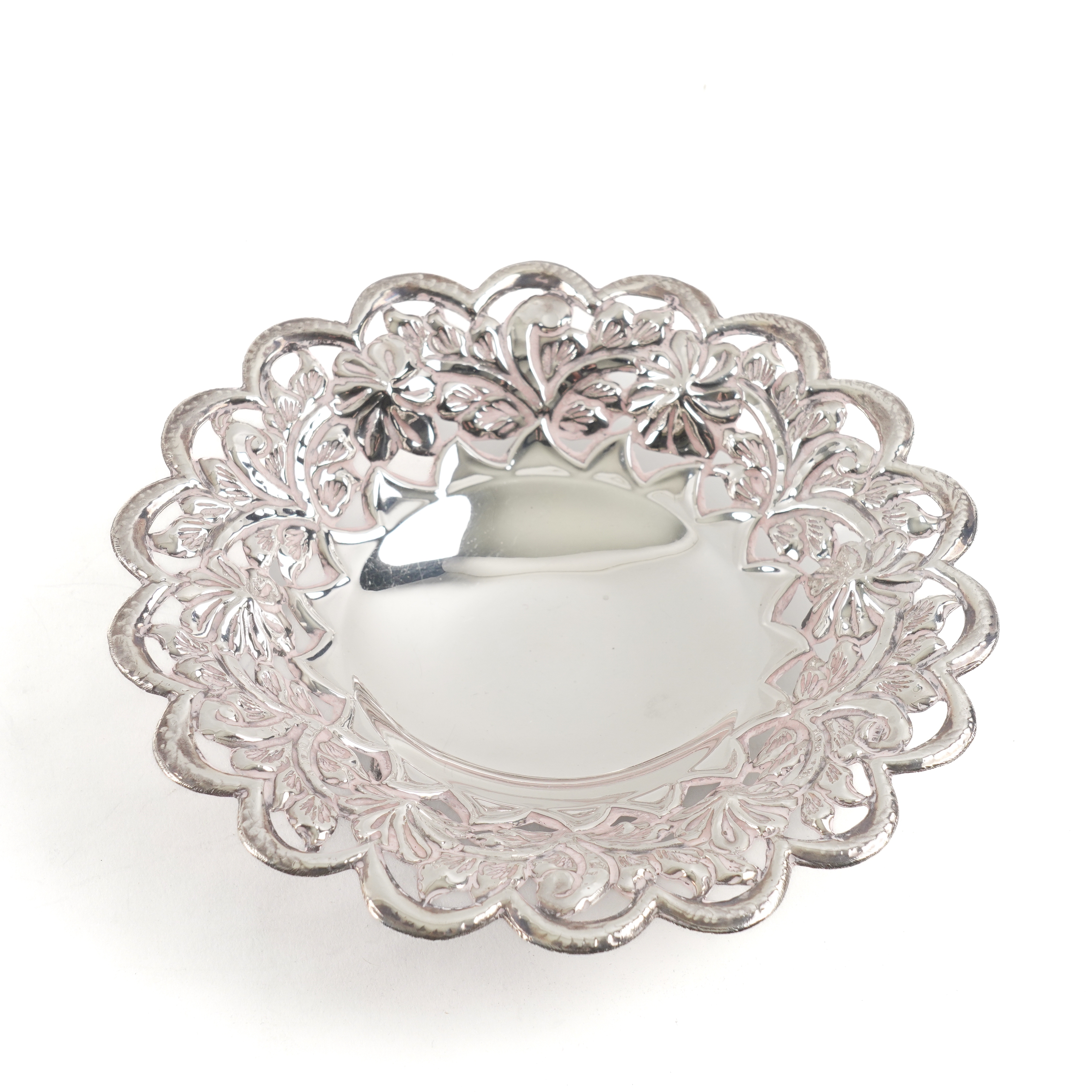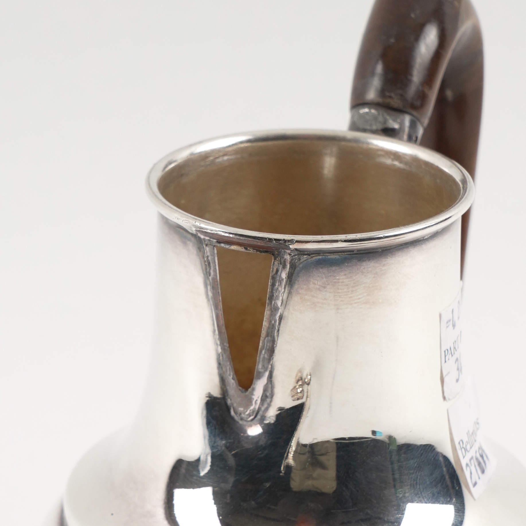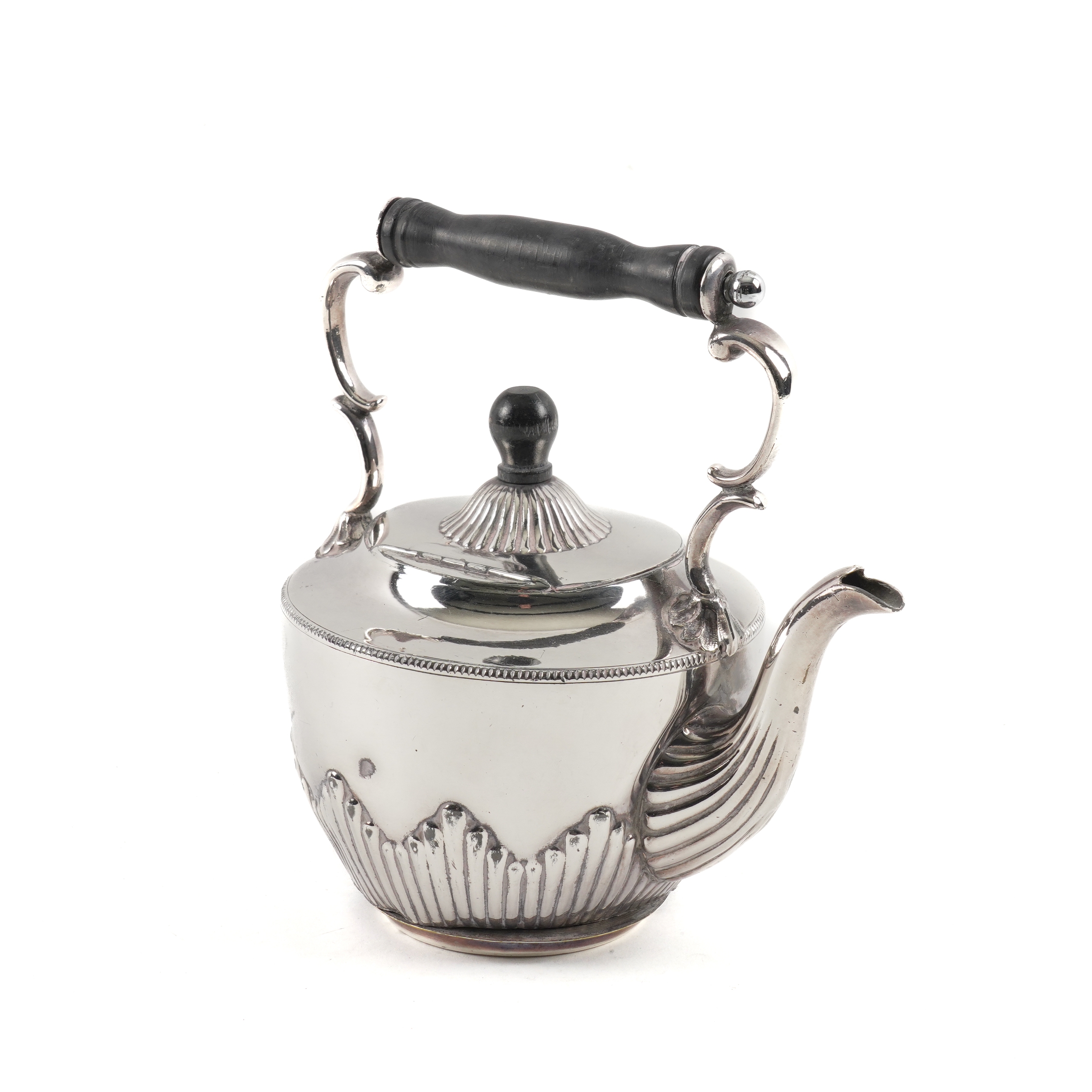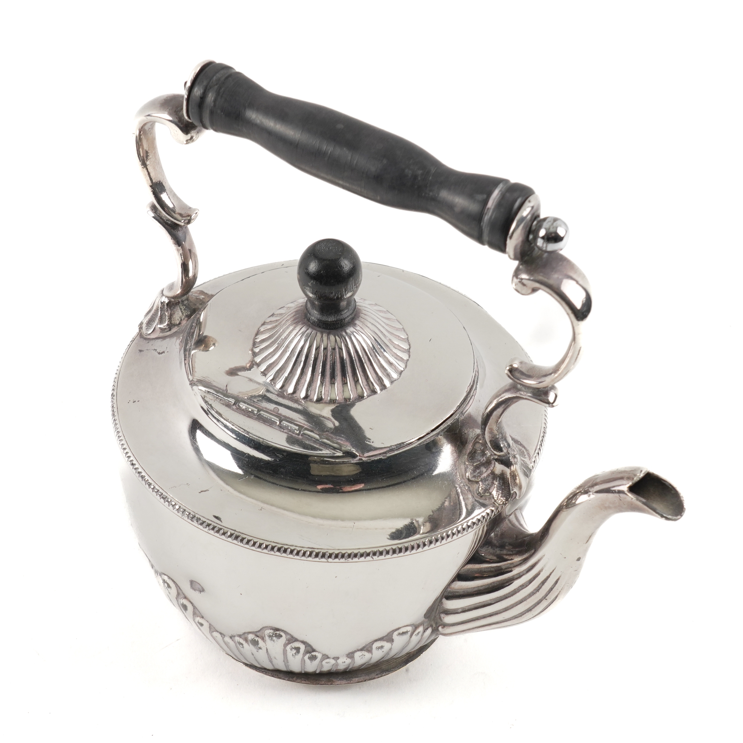 The trinket box embossed with birds and floral scrolls, length 10.5cm, London 1895, a silver cream jug, Birmingham 1903, combined weight 139 grams, an Egyptian shaped circular bonbon dish with embossed and pierced decoration, diameter 17.5cm, weight 141 grams, also a plated hot water jug and a plated kettle, the stand lacking