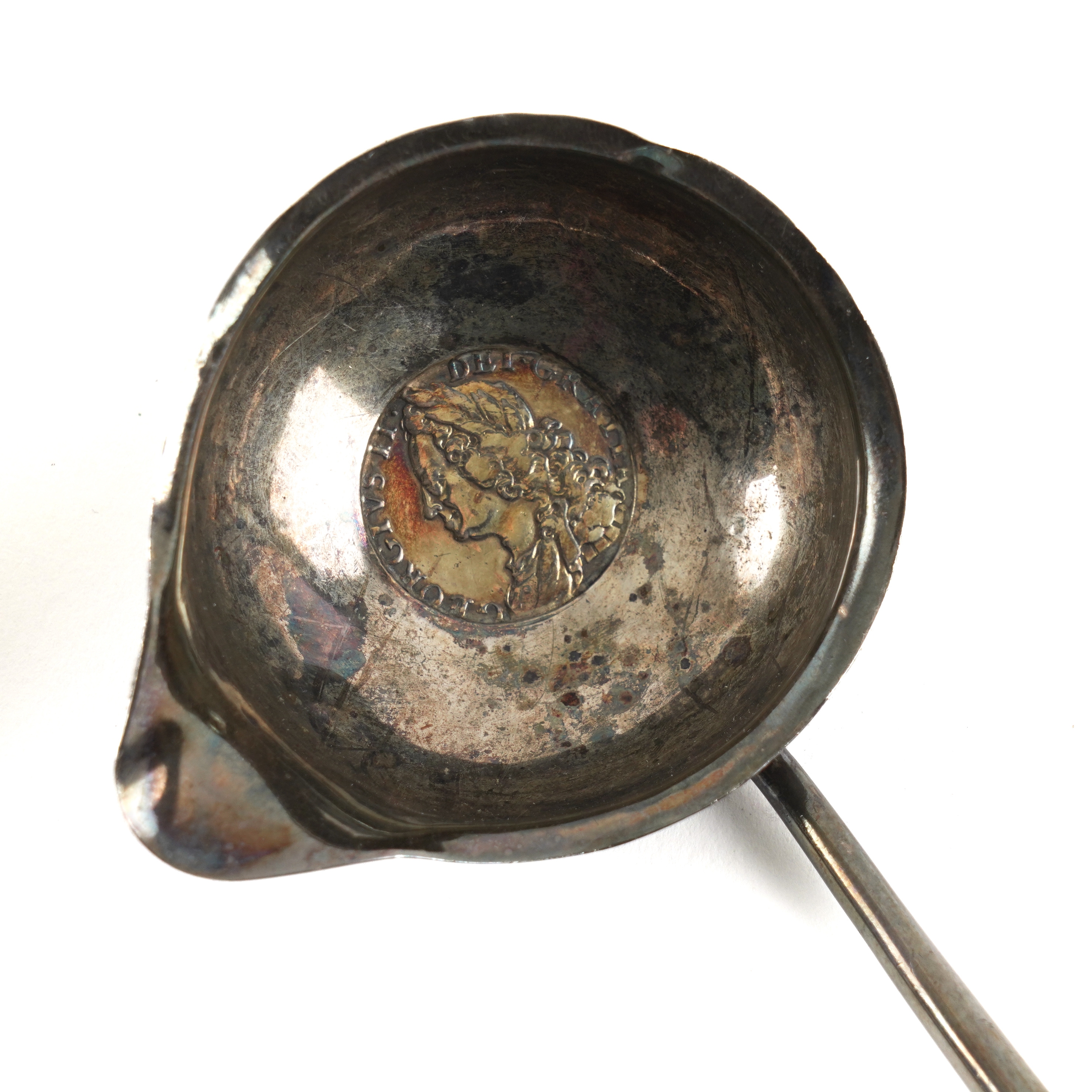 Comprising; the smaller mounted with a George III old head shilling 1758 to the bowl, London 1786, length 34.2cm, the larger of 18th century style, Birmingham probably 1996, length 41cm