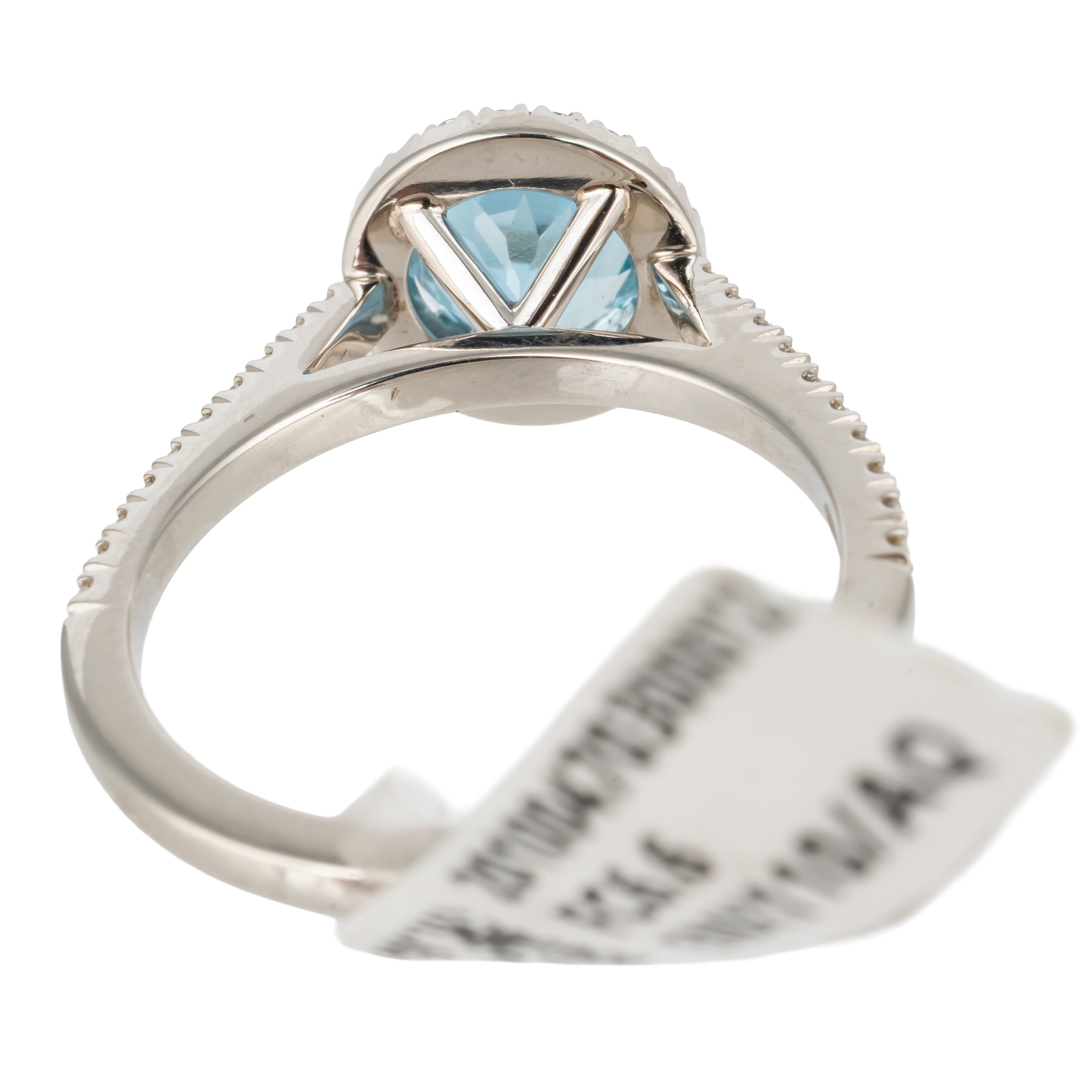 Mounted with a central round cut aquamarine, with a surround of diamonds and diamond set shoulders, in platinum, size L½, gross weight 5.1 grams