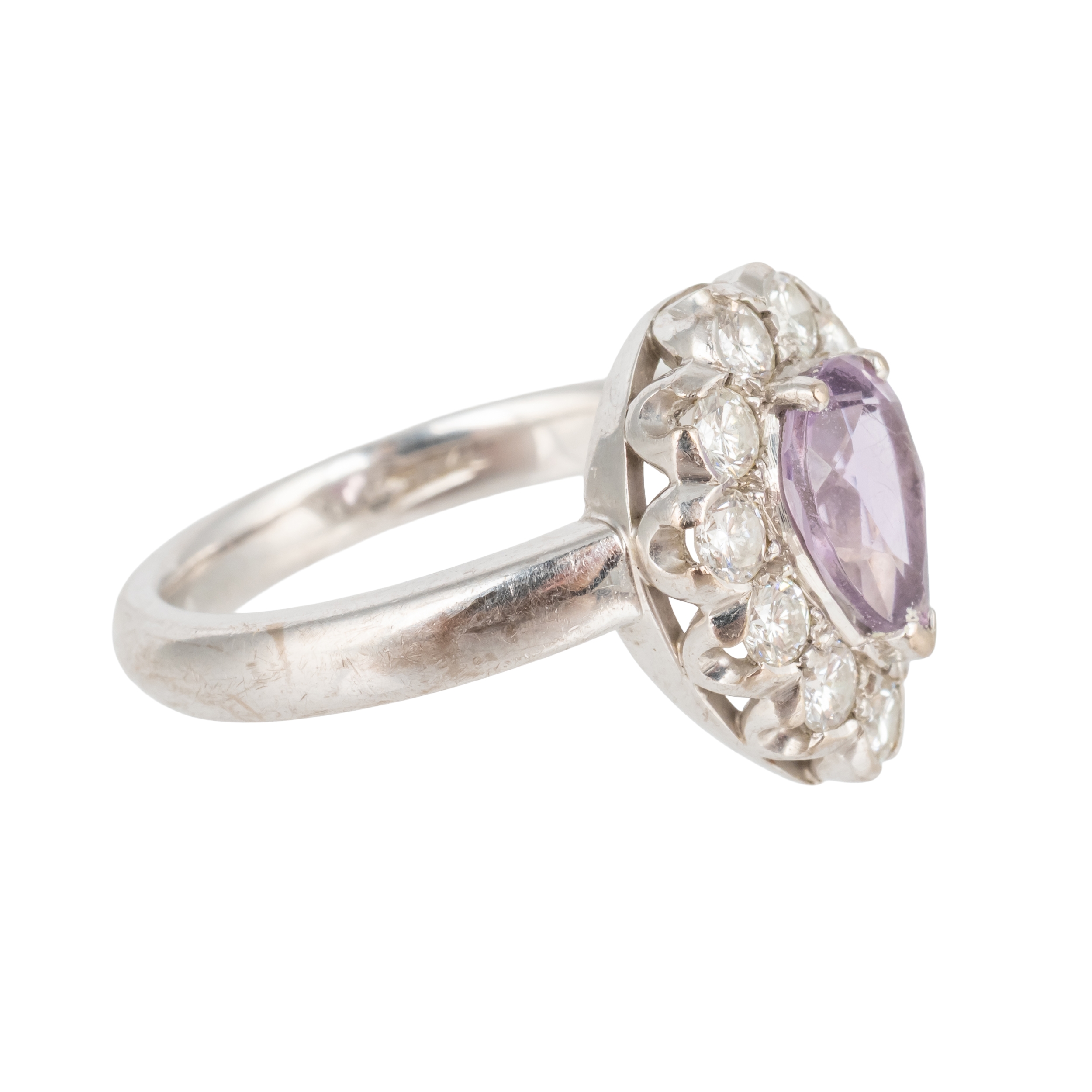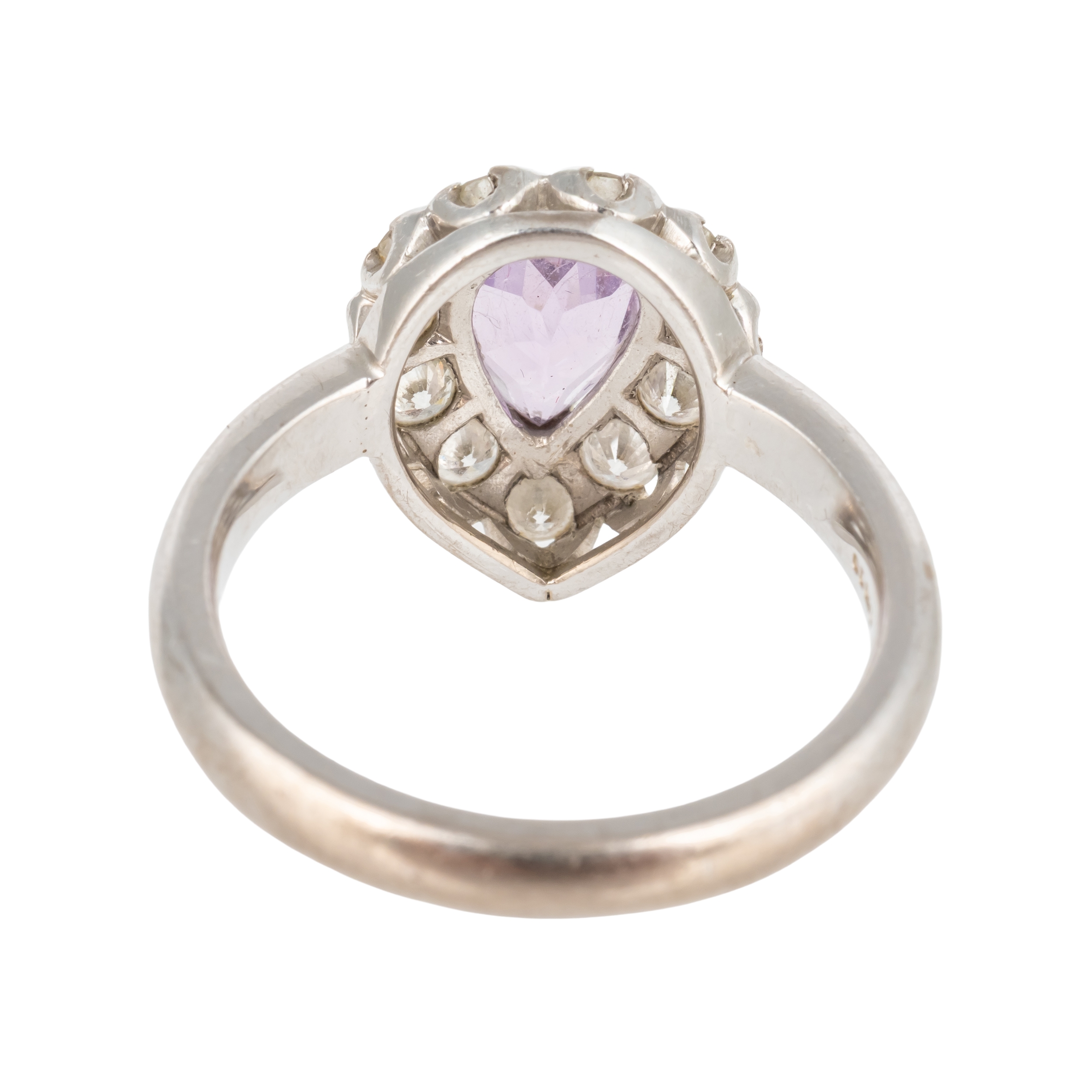 AN 18CT WHITE GOLD, DIAMOND AND PINK GEM SET PEAR SHAPED CLUSTER RING