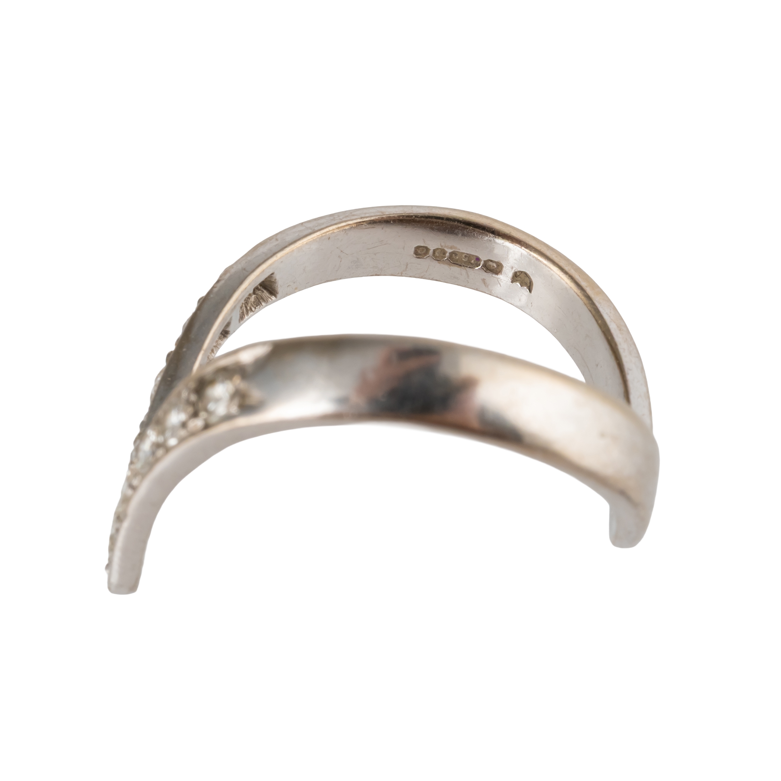 Mounted with round brilliant cut diamonds in 18ct white gold, size N½, gross weight 5 grams, with a box