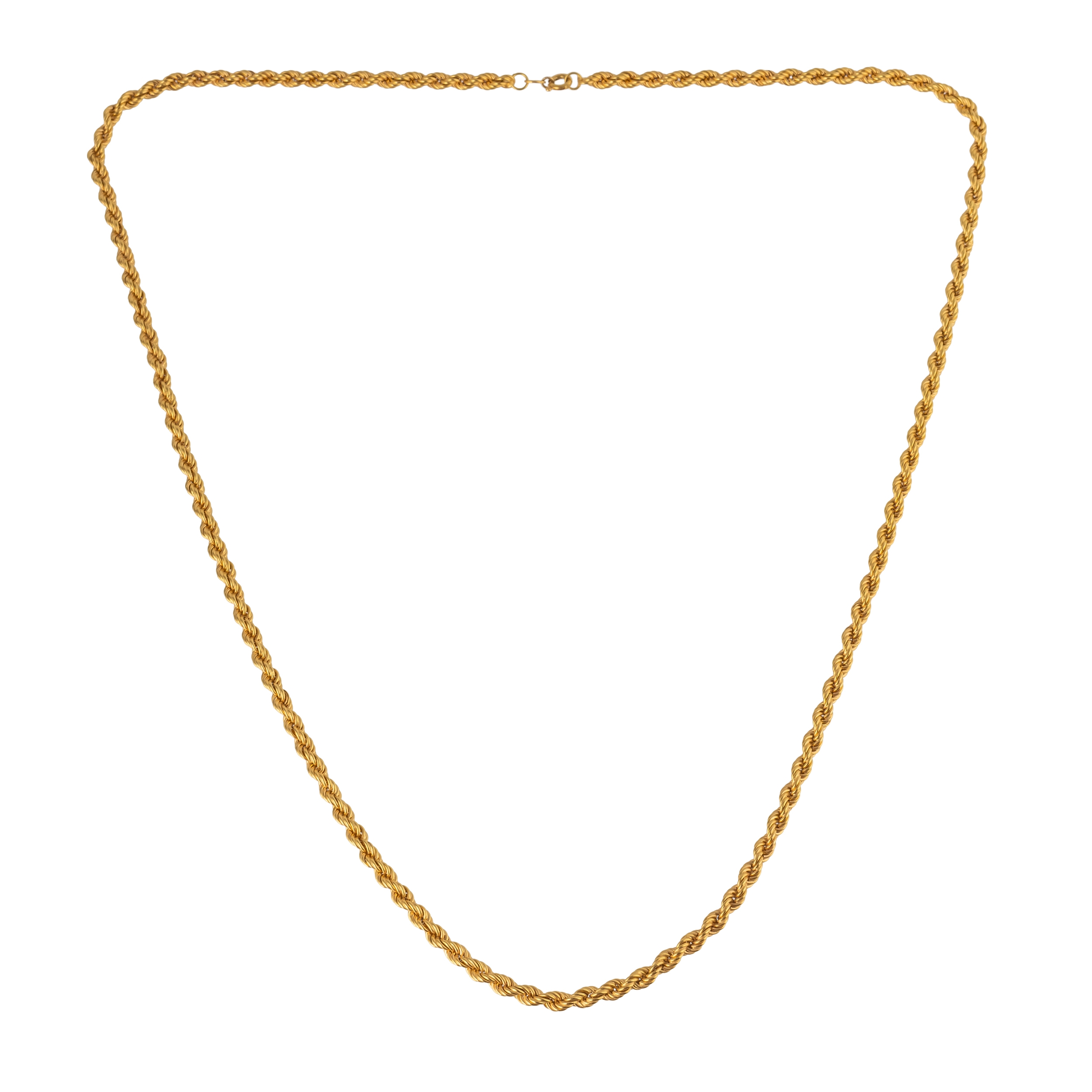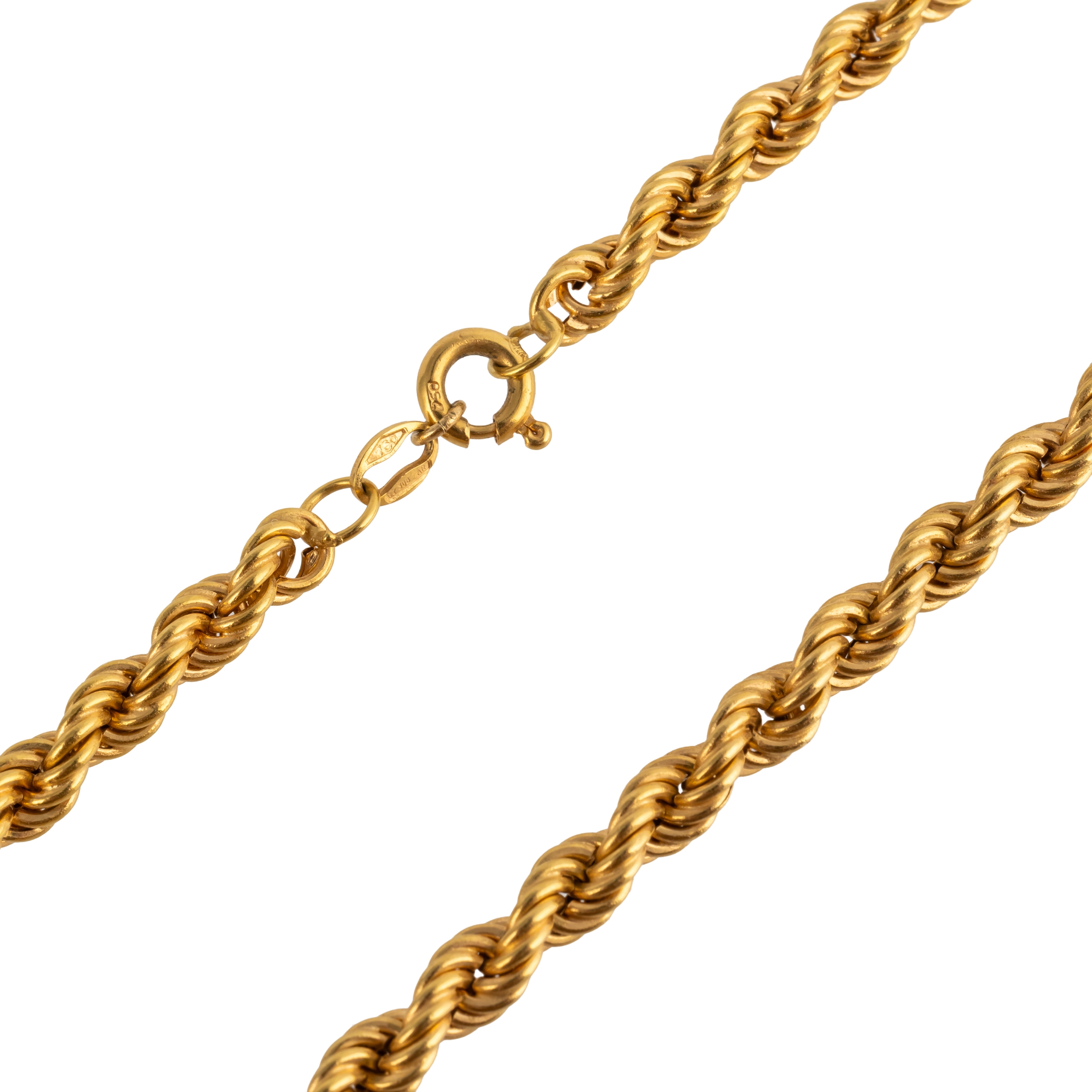 In 18ct gold, with bolt ring clasp, measuring 70cm in length, weight 18.7 grams
