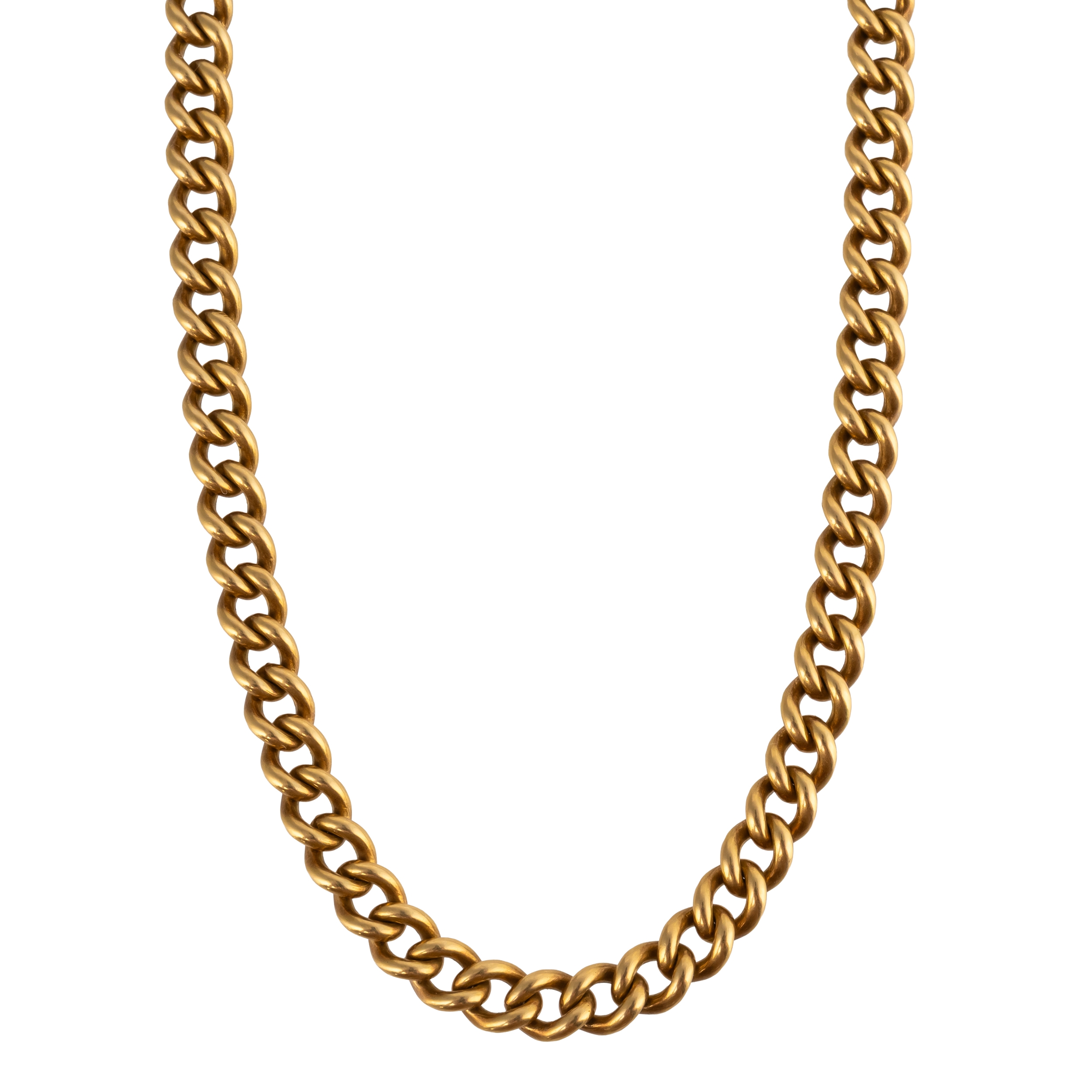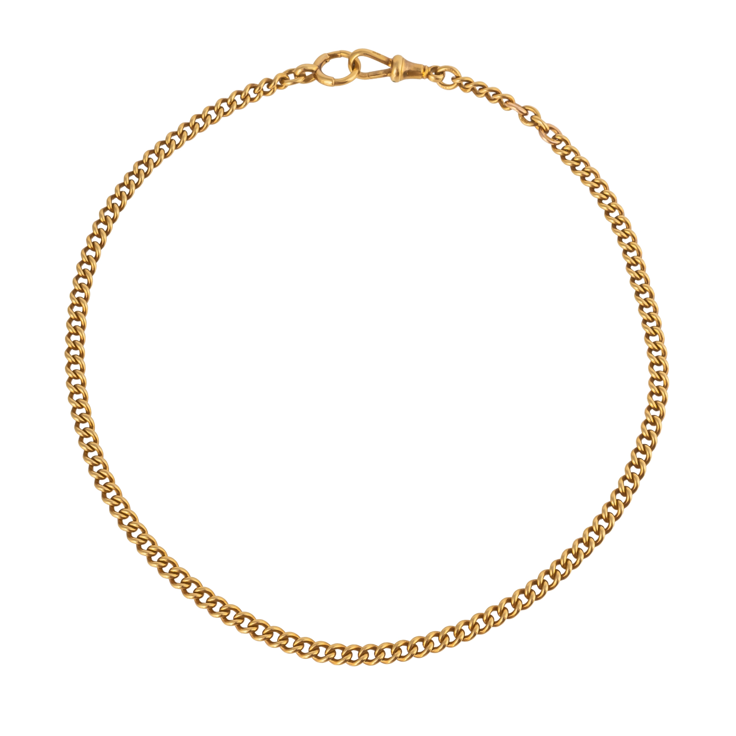 In 18ct gold with some 9ct gold link replacements, with a swivel clasp and bolt ring, measuring 38.5cm in length, weight 27.4 grams