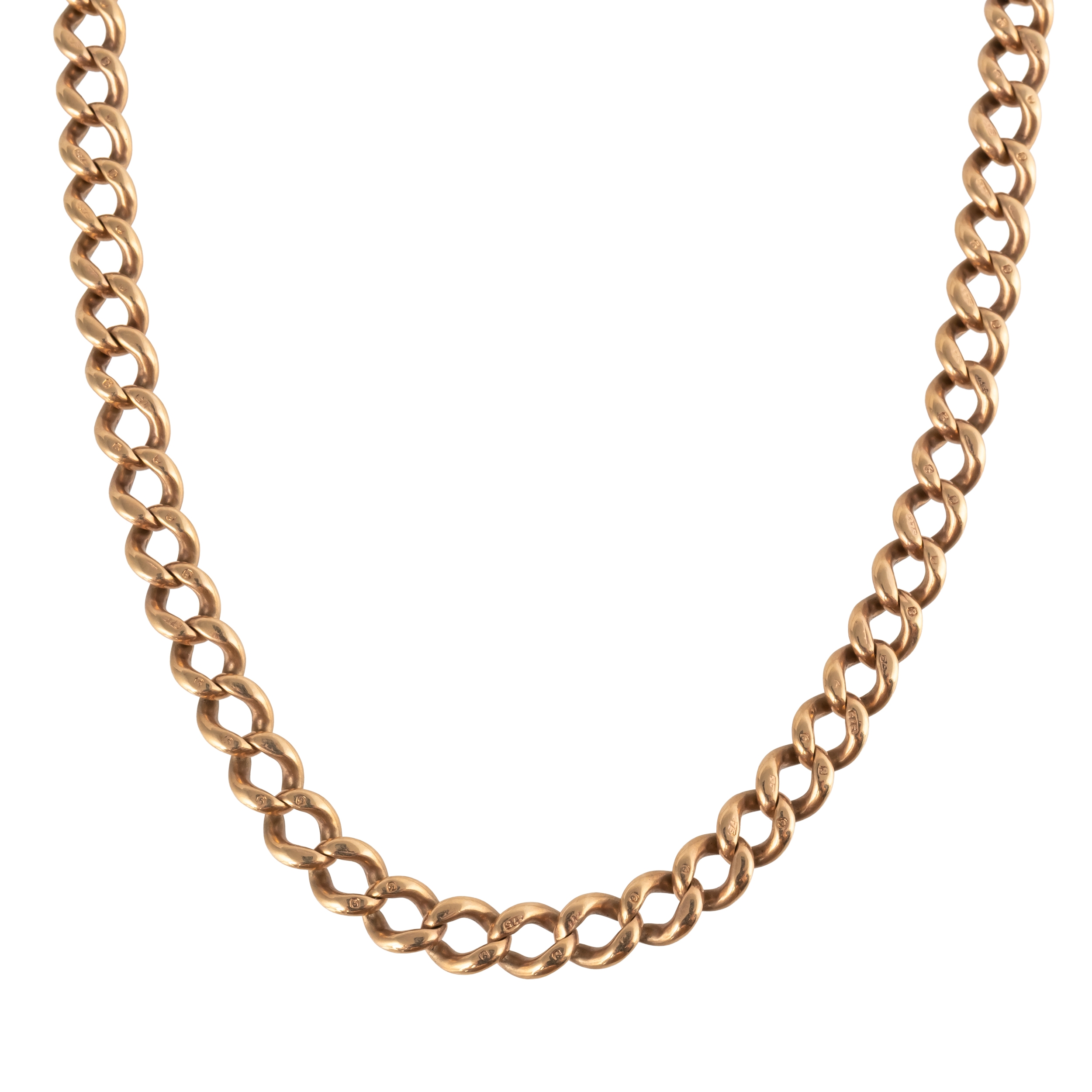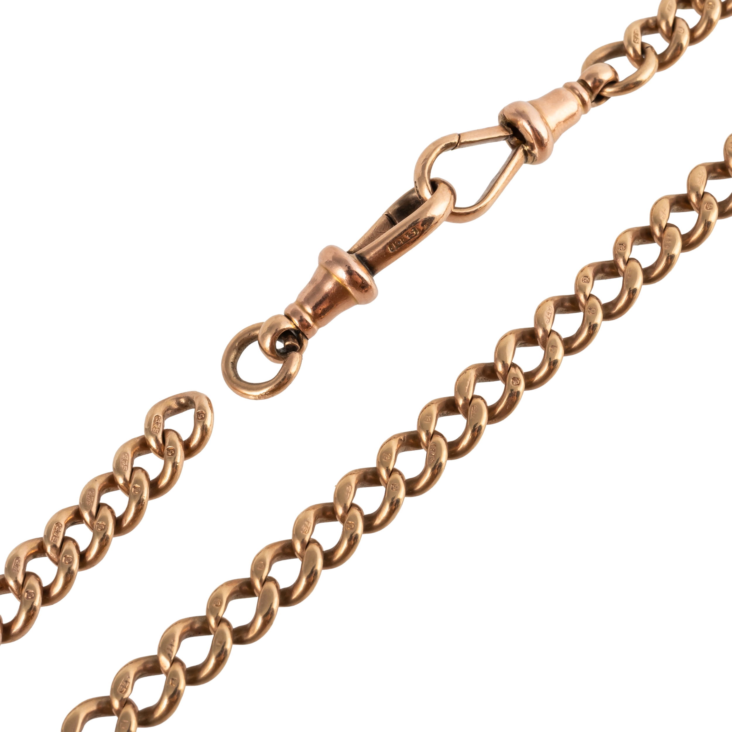With individually marked links for 9ct, with a swivel termination and an extra swivel, measuring 43cm in length, gross weight 40.9 grams