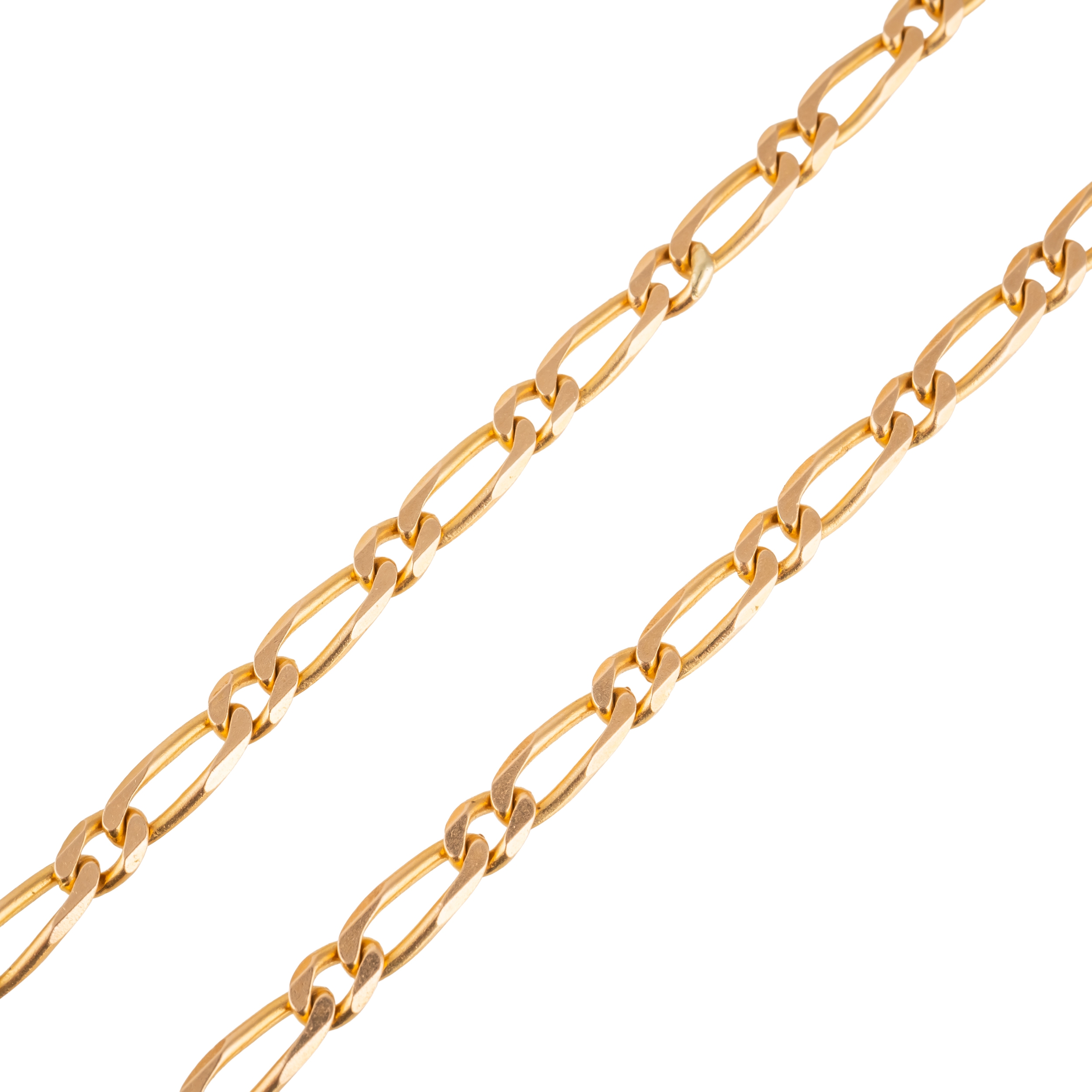 Without a clasp, unmarked, testing as 14ct gold, measuring approximately 70cm in length, gross weight 18.9 grams
