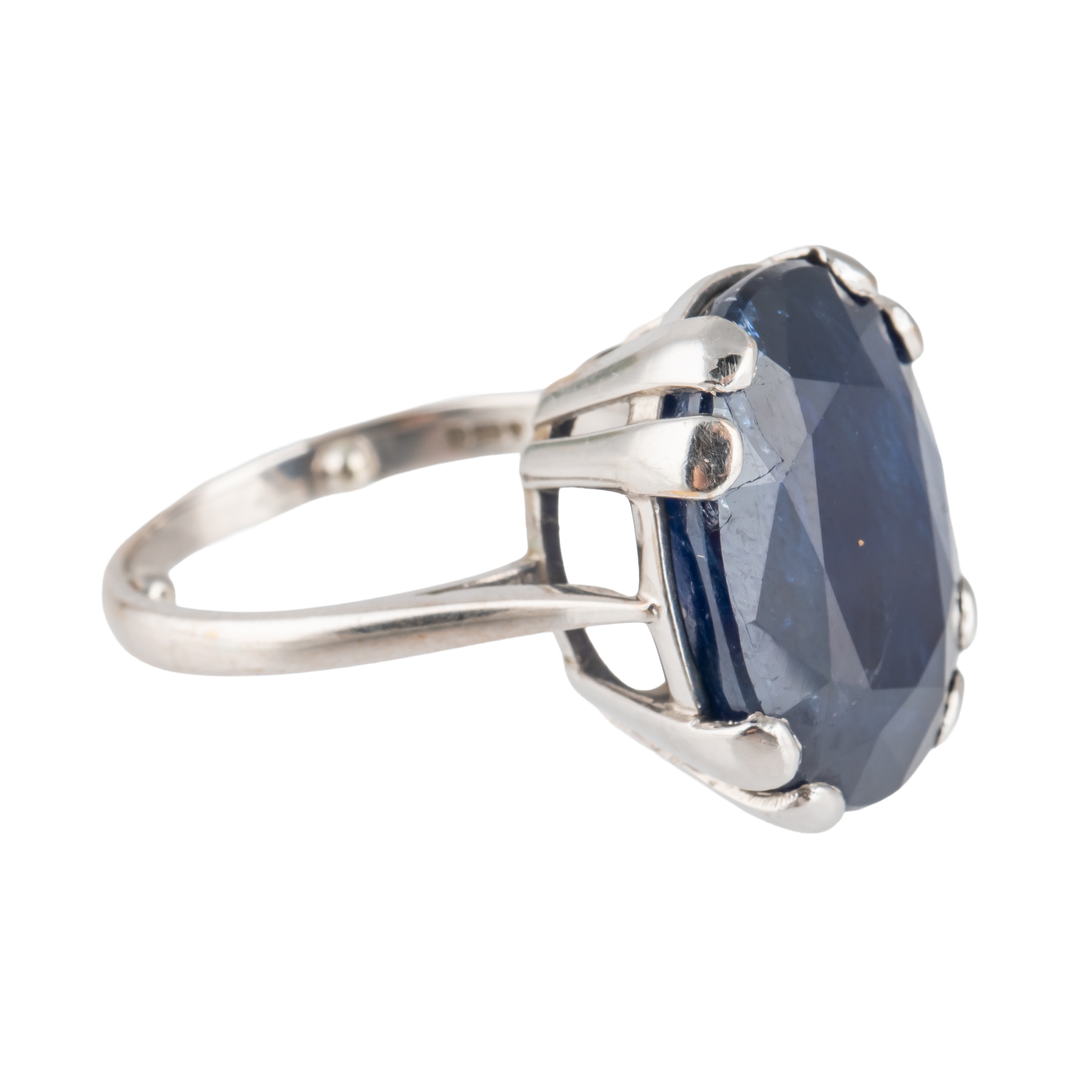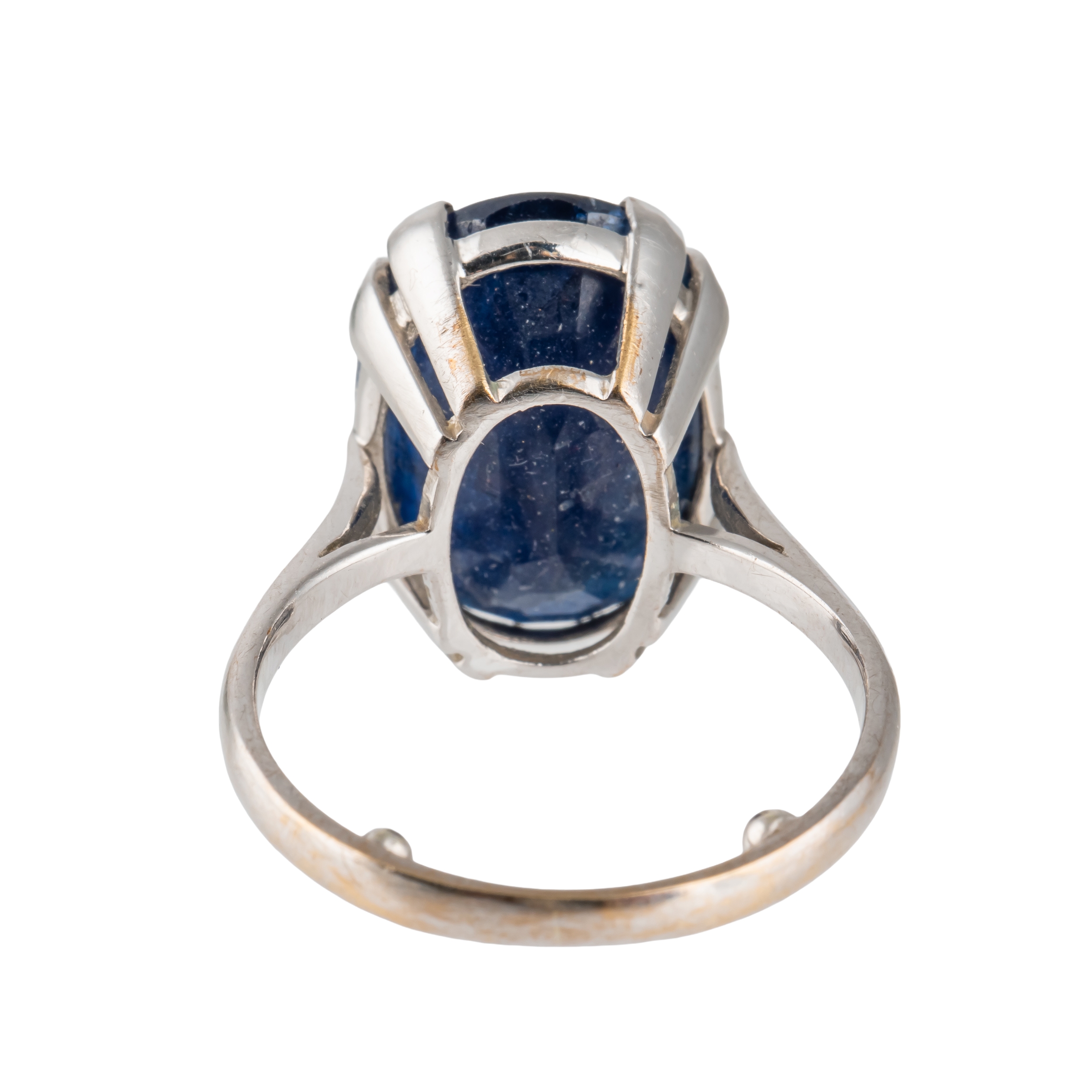 Claw set with an oval cut sapphire, ring size K (note sizing beads) gross weight 5.2 grams
