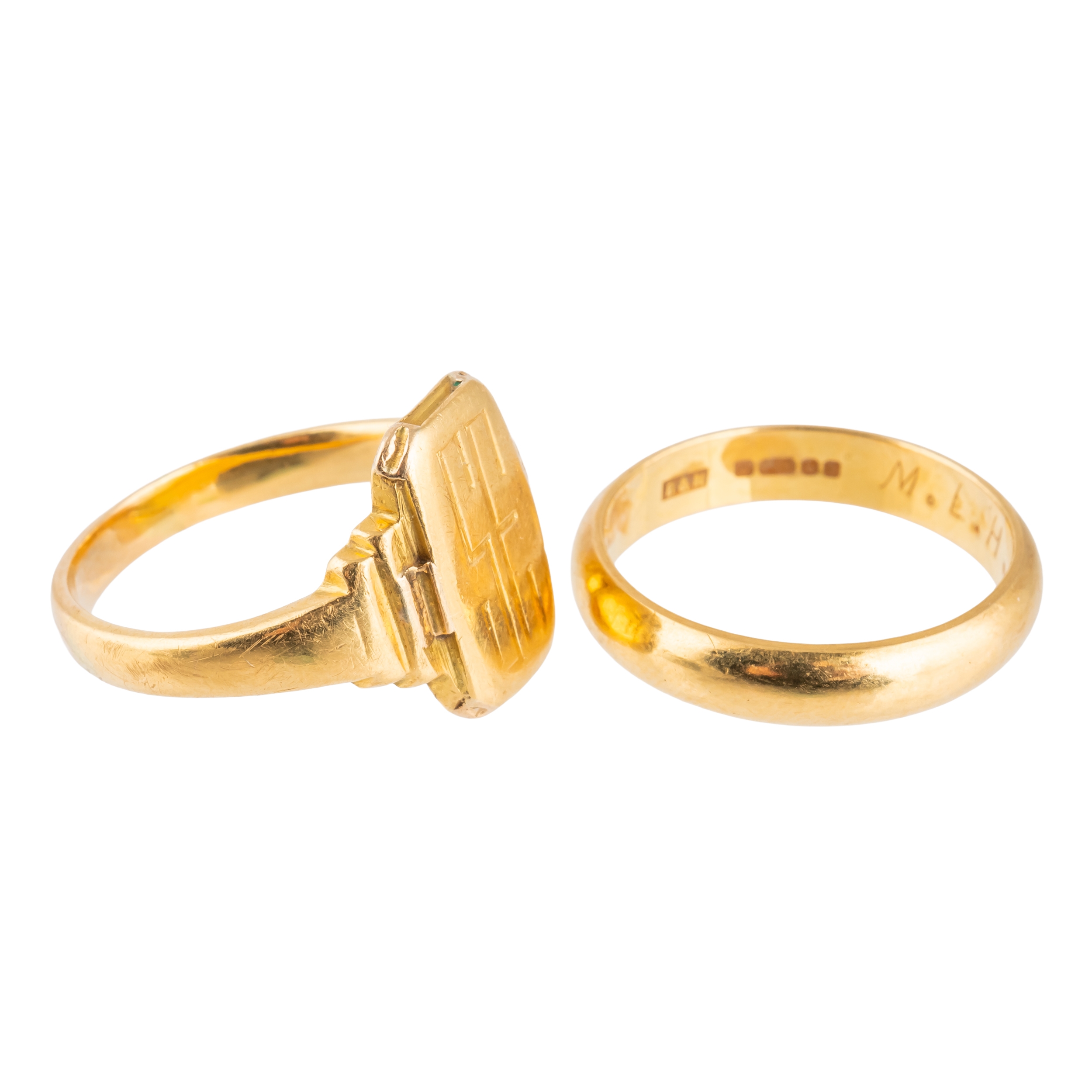 Including a gold wedding band, size O, and a signet style ring, size O½ combined gross weight 11.8 grams