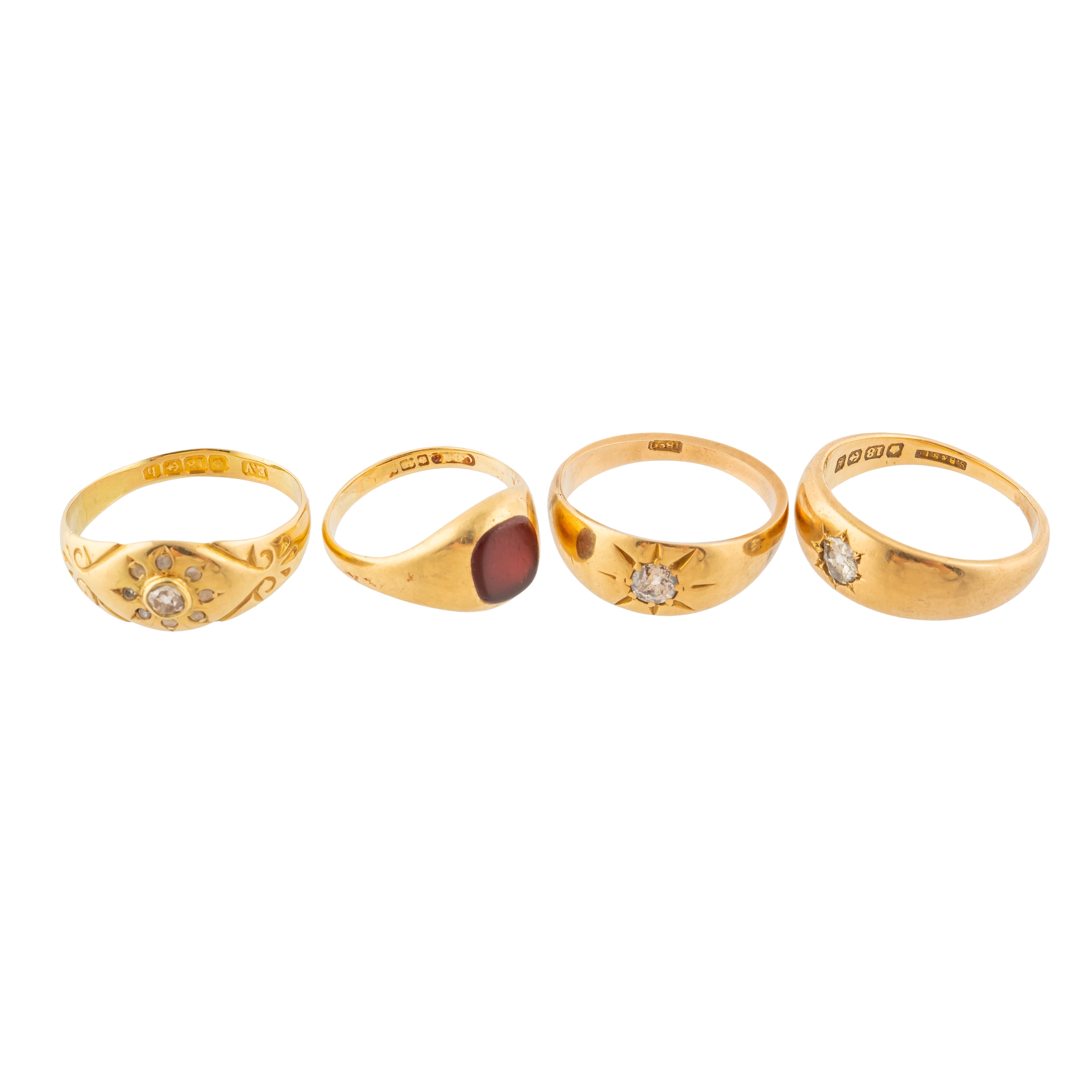 FOUR 18CT GOLD RINGS (4)