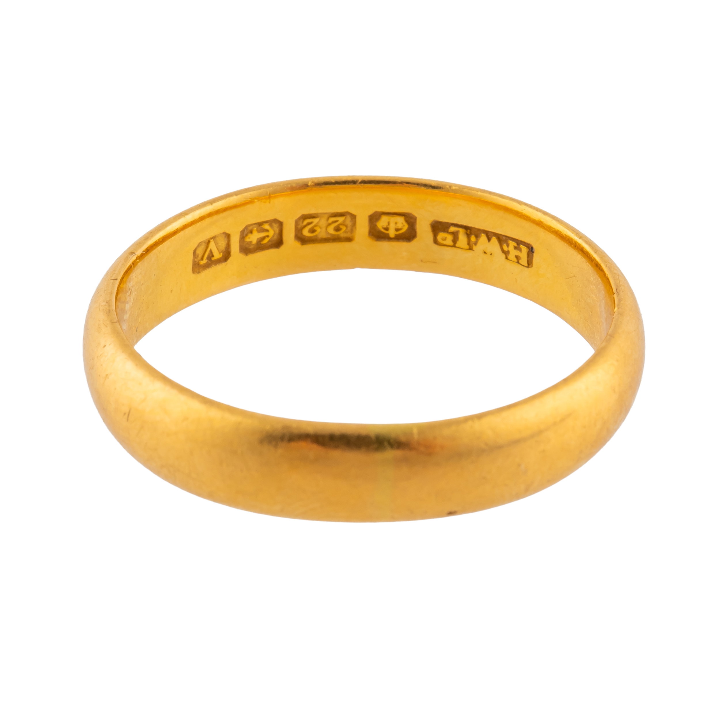 Measuring 4.4cm in width, hallmarked Birmingham probably 1945, size T, gross weight 6.4 grams