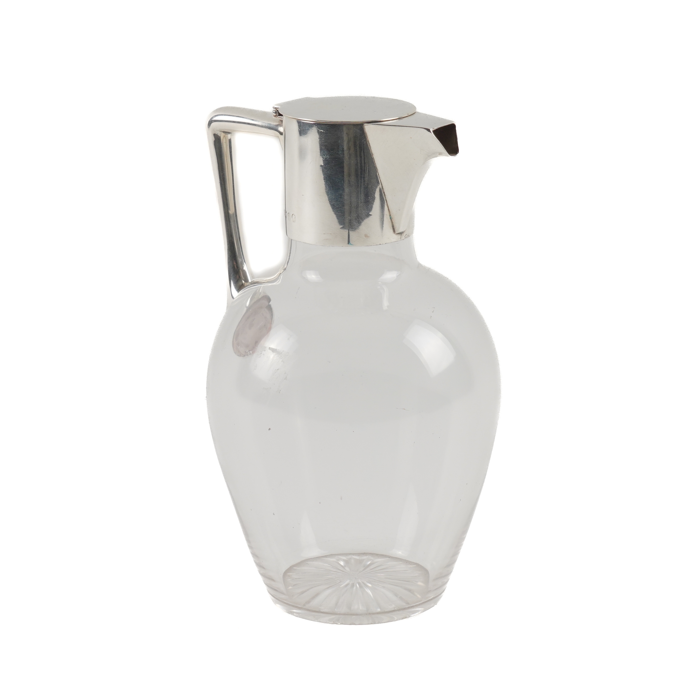 With an angular handle, hinged flat lid and star cut base, London 1888, height 20cm