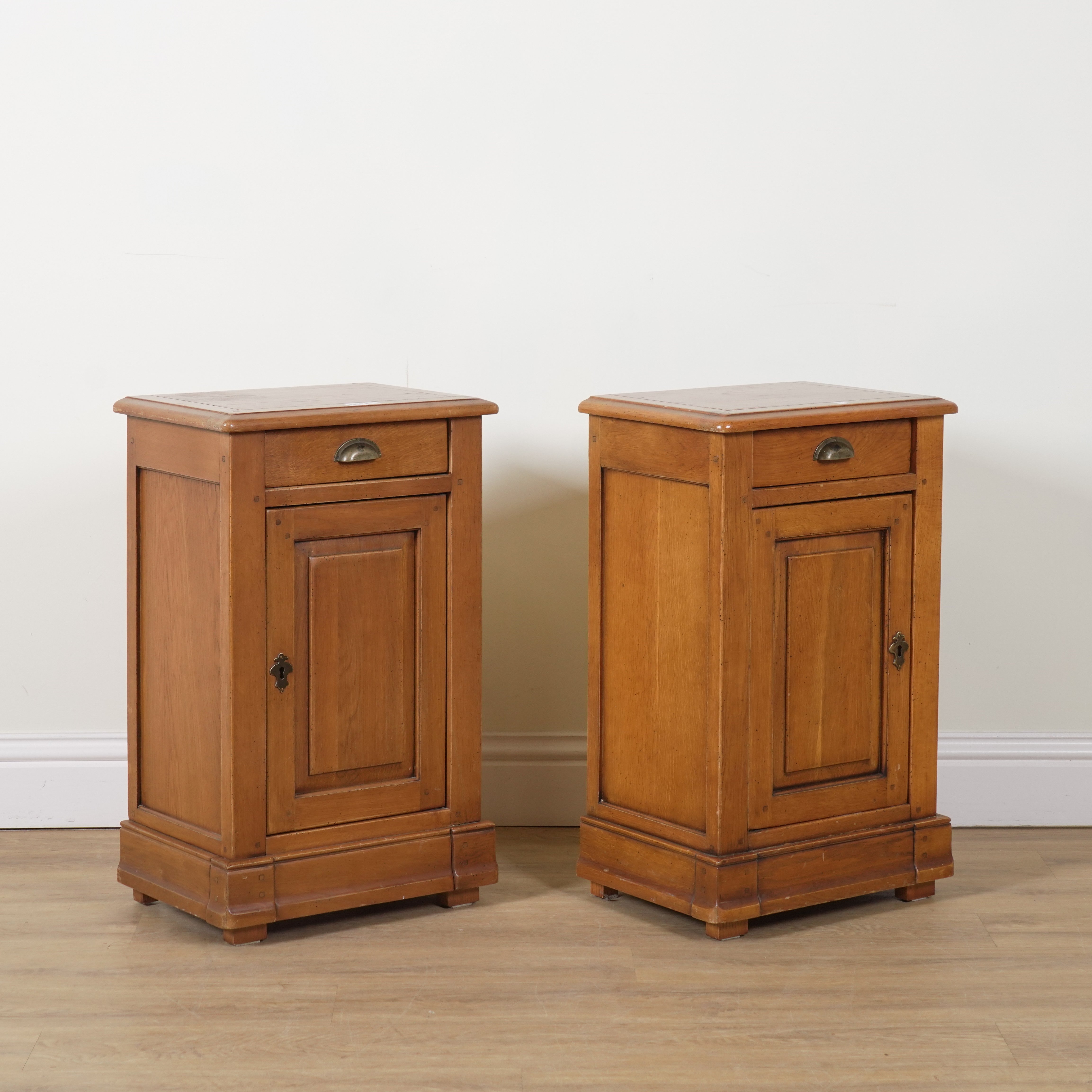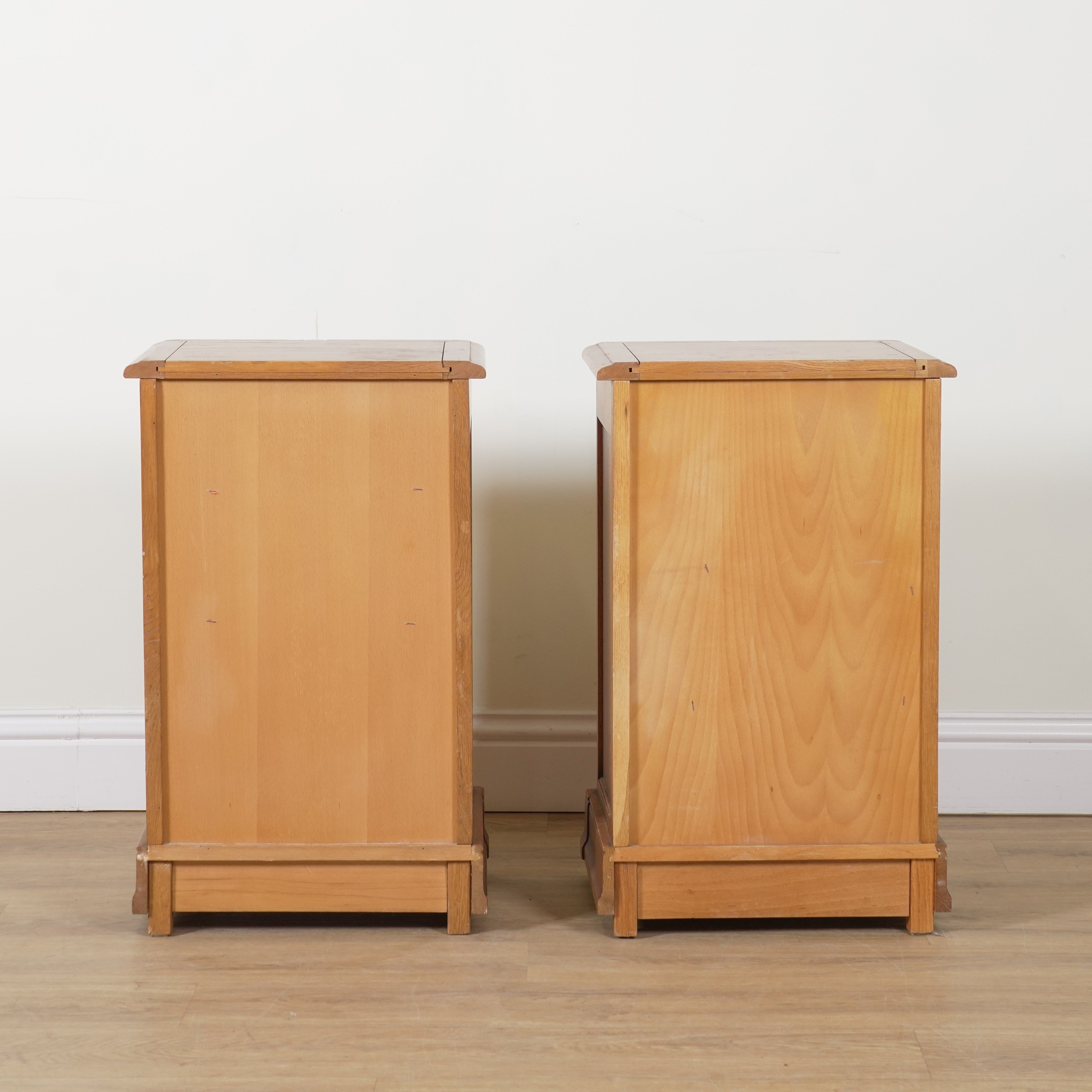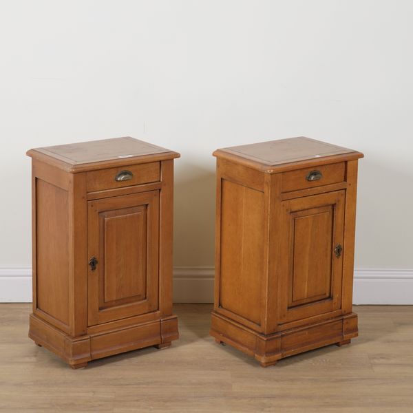 WARING AND GILLOWS; A PAIR OF 20TH CENTURY OAK SINGLE DRAWER BEDSIDE CUPBOARDS (2)