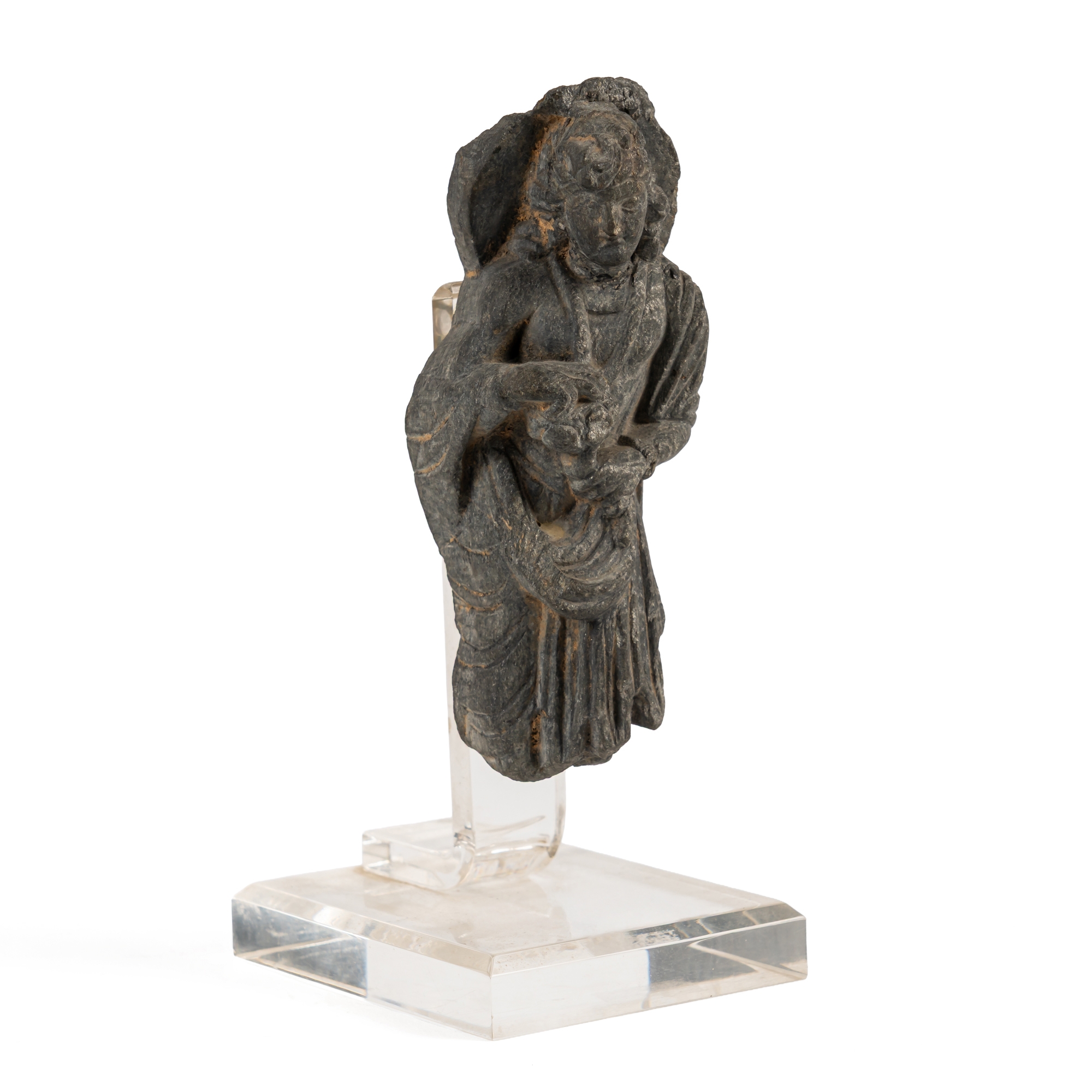 A SMALL GANDHARAN GREY SCHIST TORSO OF BODHISATTVA MAITREYA