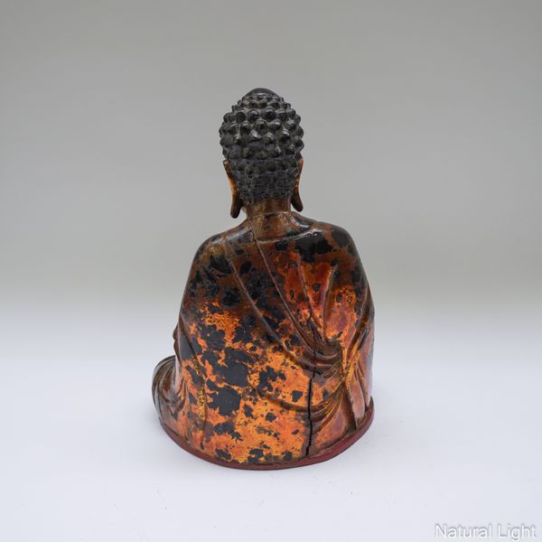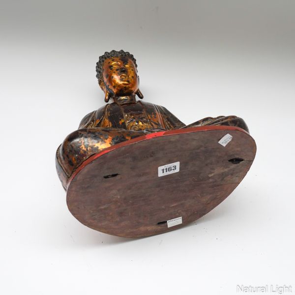 A VIETNAMESE CARVED WOOD GILT AND LACQUERED FIGURE OF GAUTAMA BUDDHA