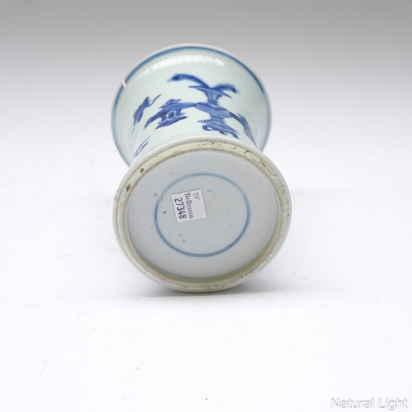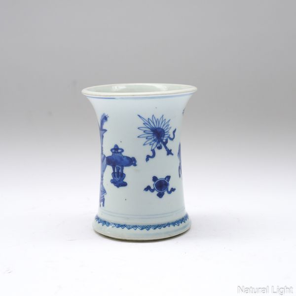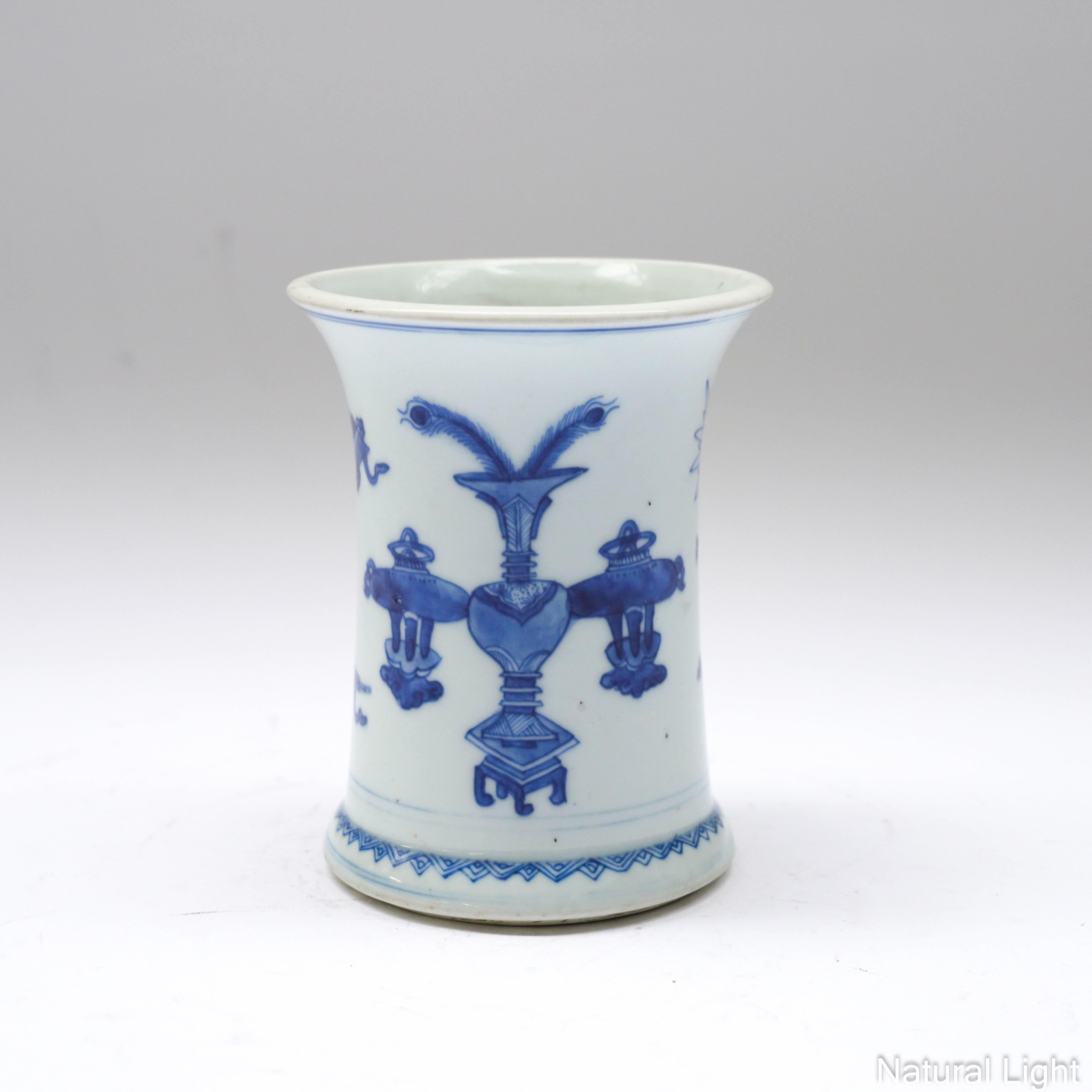 A CHINESE BLUE AND WHITE PORCELAIN BRUSH POT, BITONG