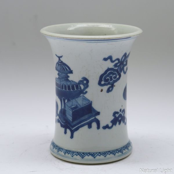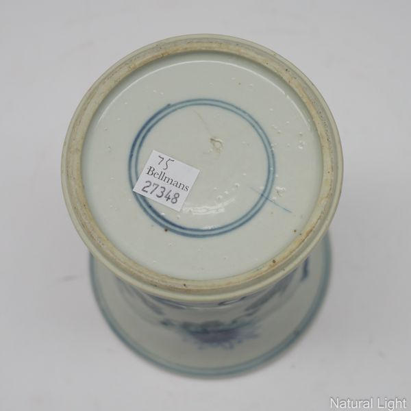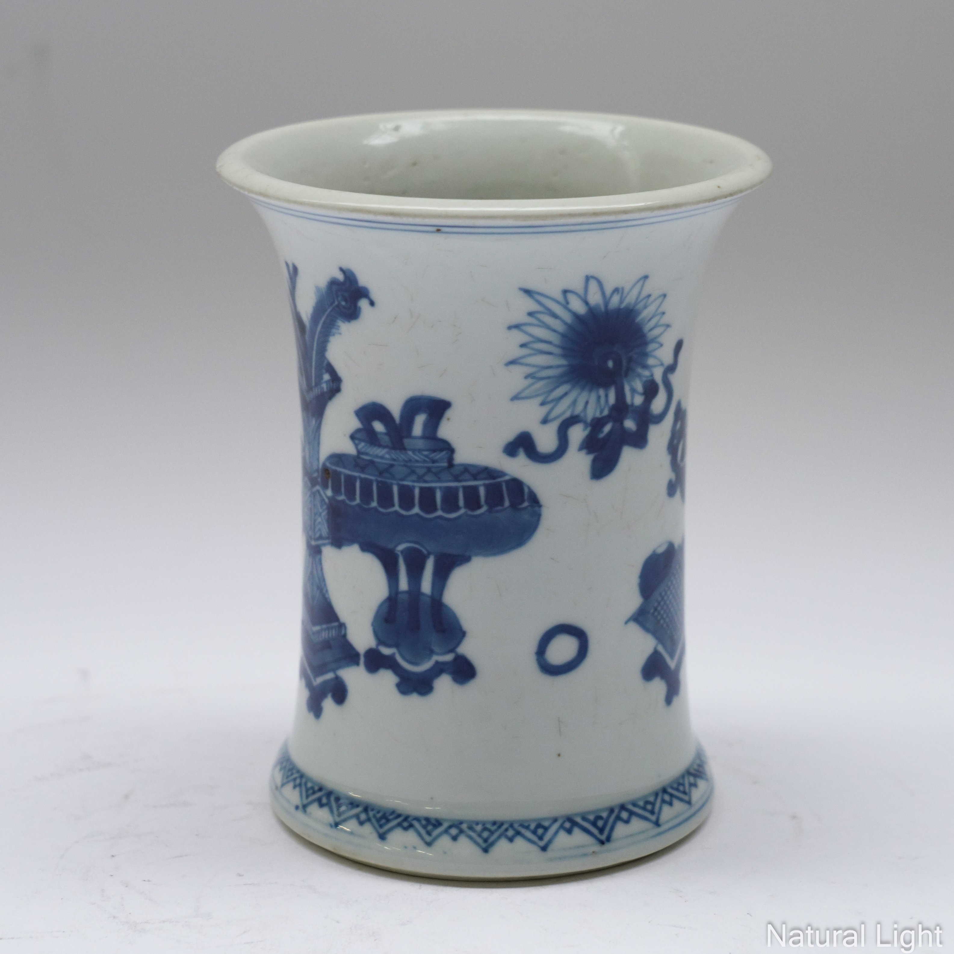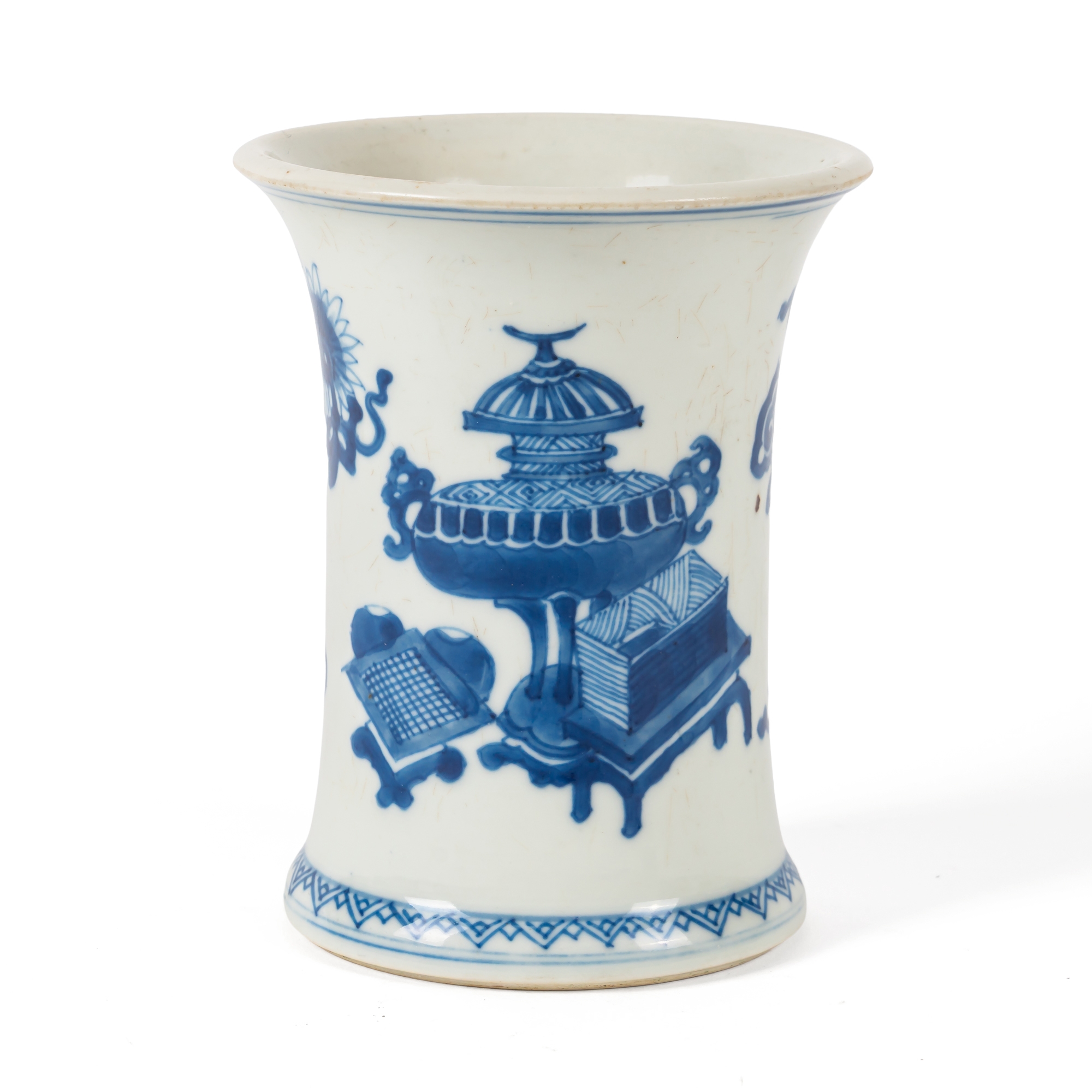 A CHINESE BLUE AND WHITE PORCELAIN BRUSH POT, BITONG