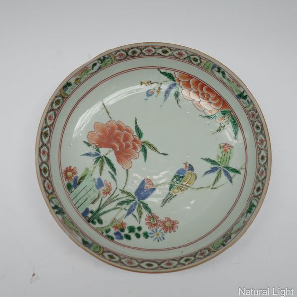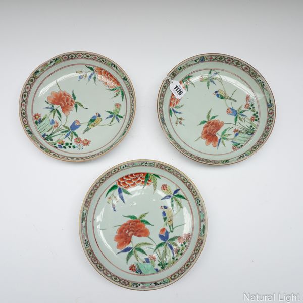 THREE CHINESE FAMILLE VERTE PORCELAIN DISHES (3)