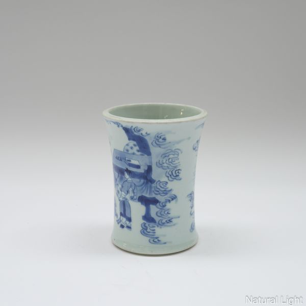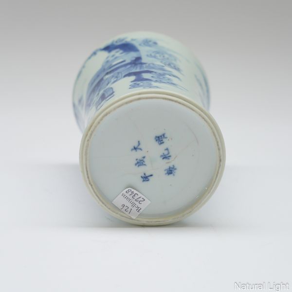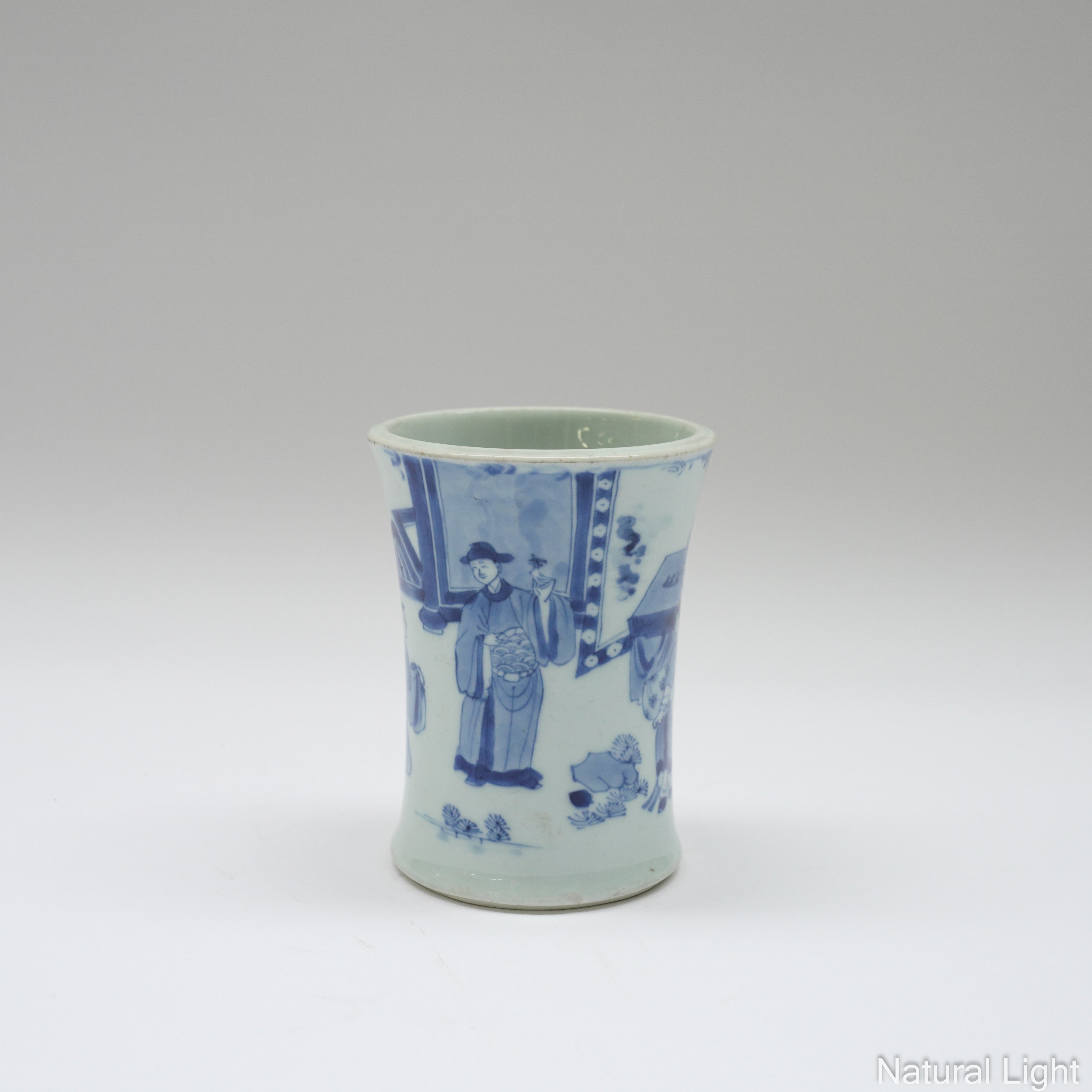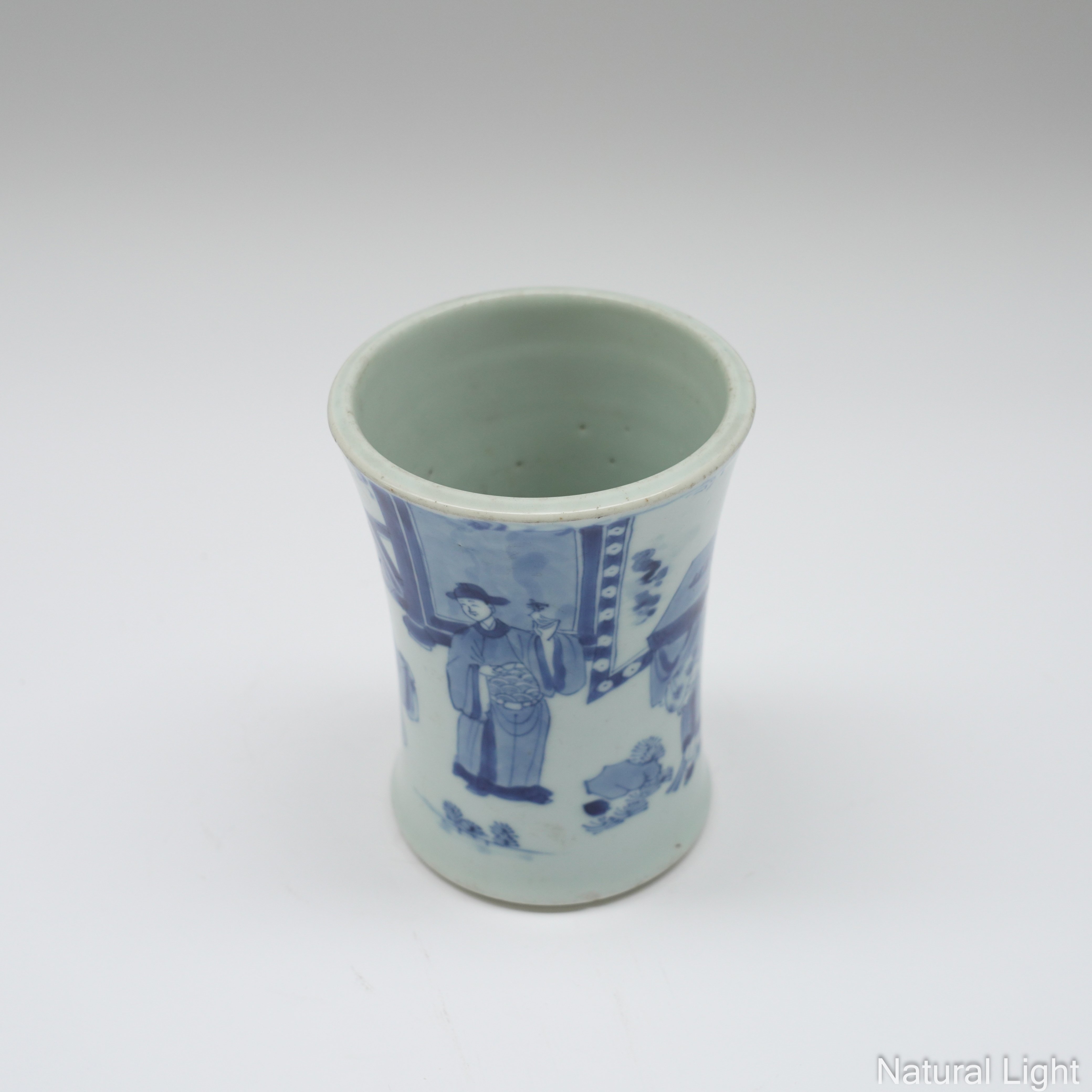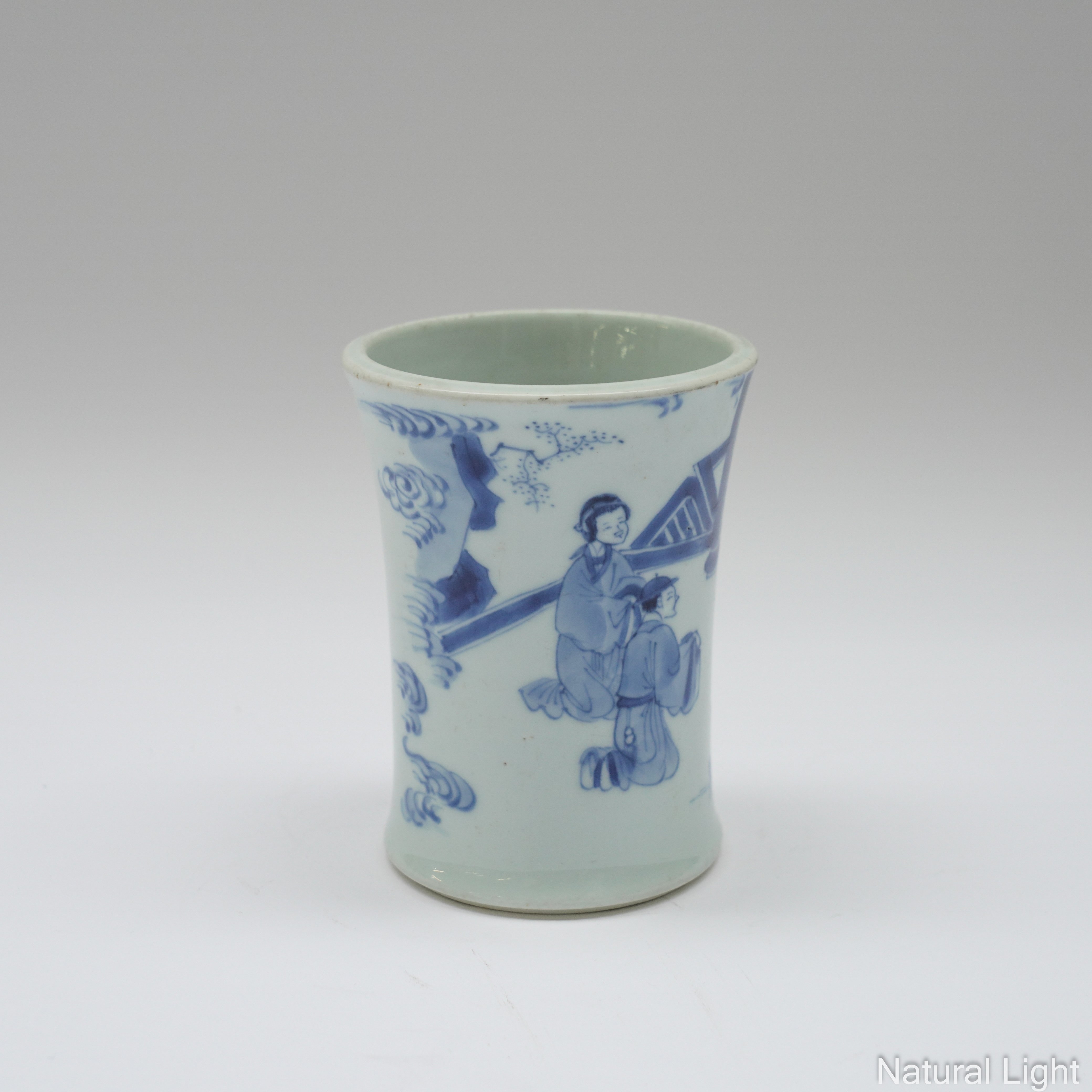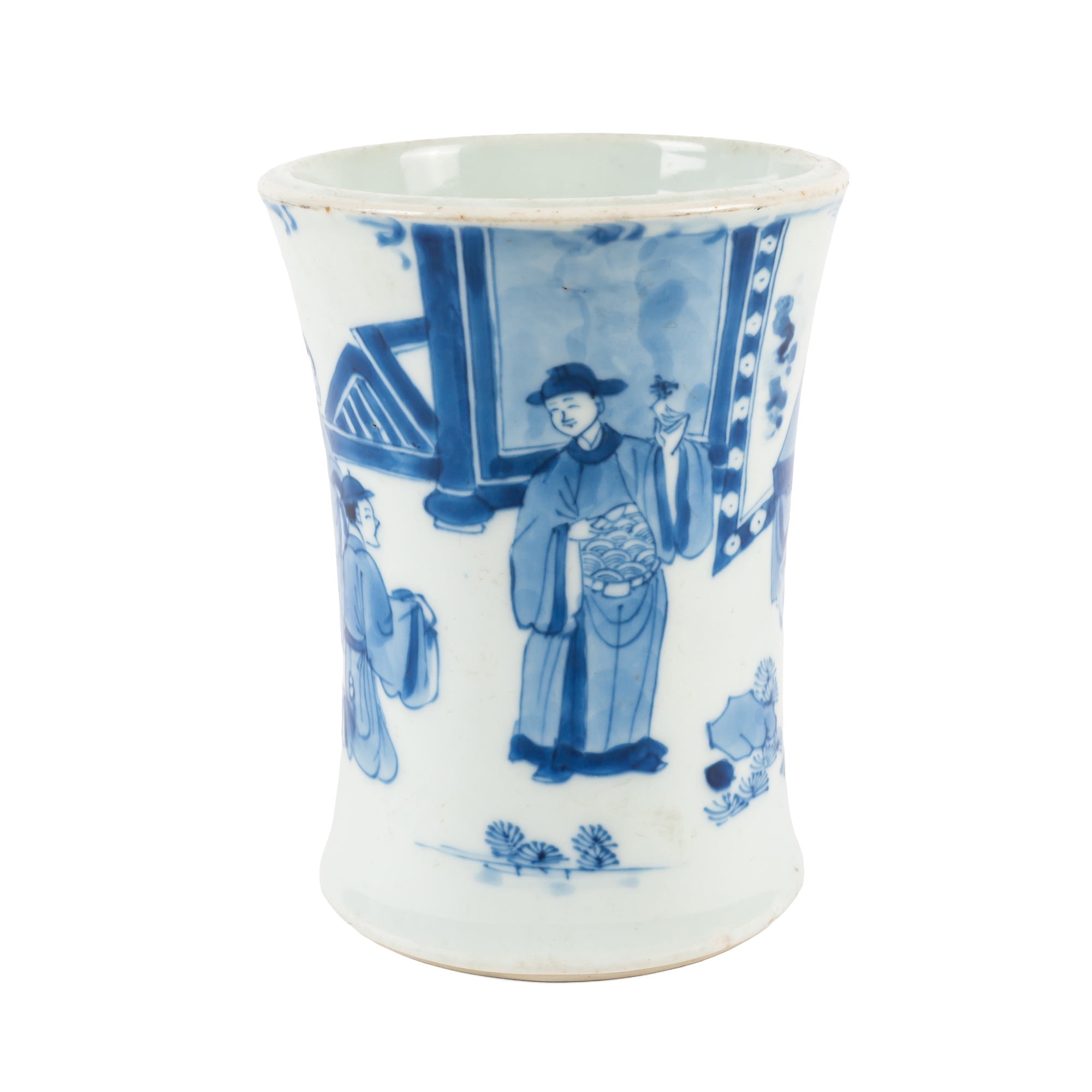 A CHINESE BLUE AND WHITE PORCELAIN BRUSH POT, BITONG