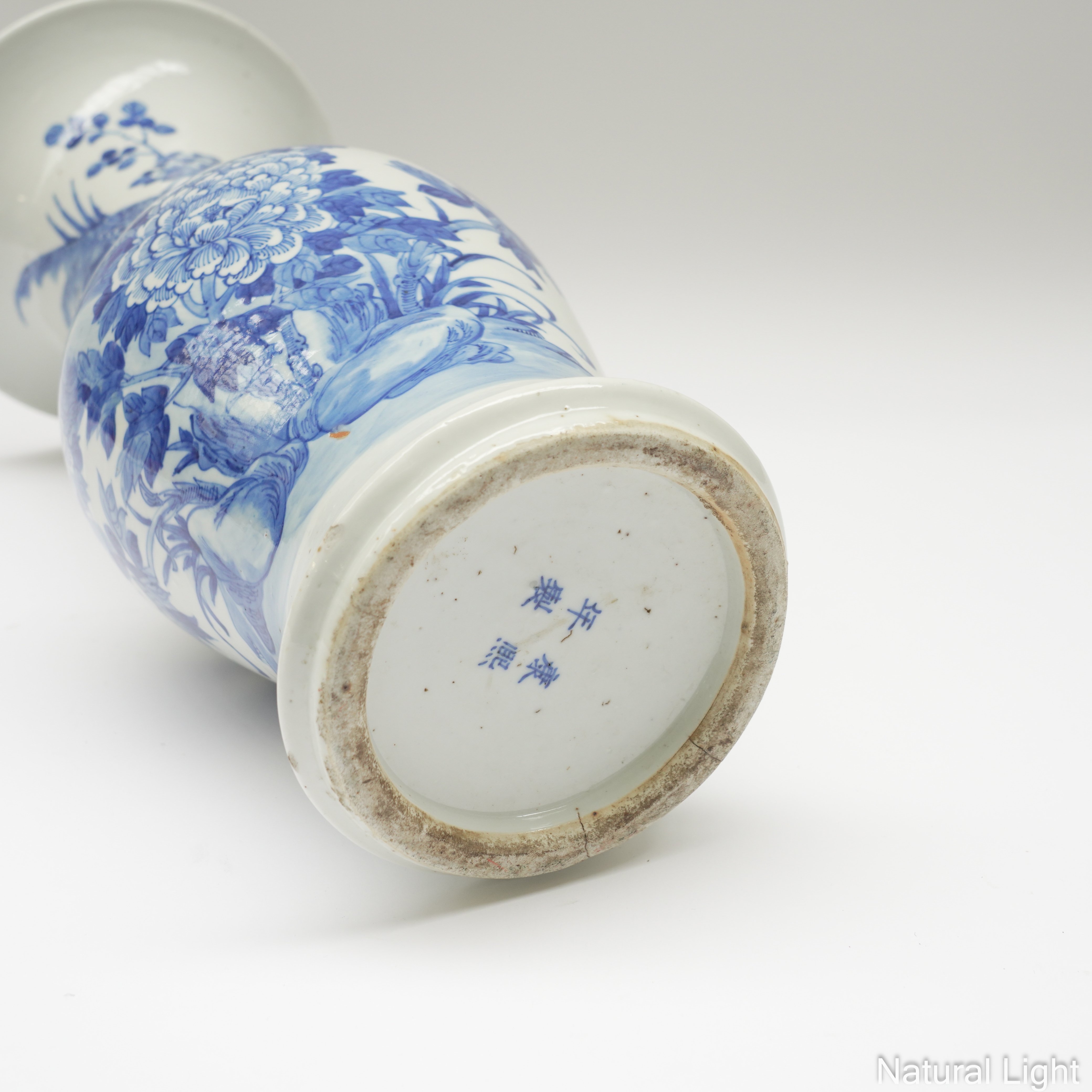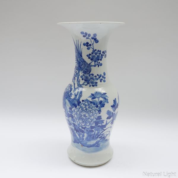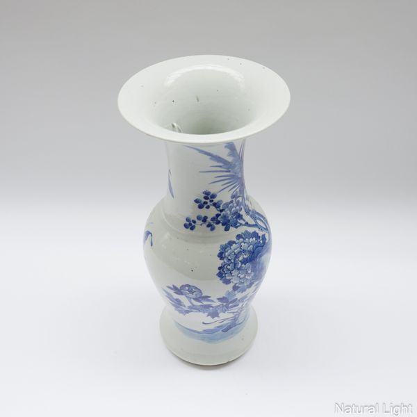 A TALL CHINESE BLUE AND WHITE BALUSTER VASE
