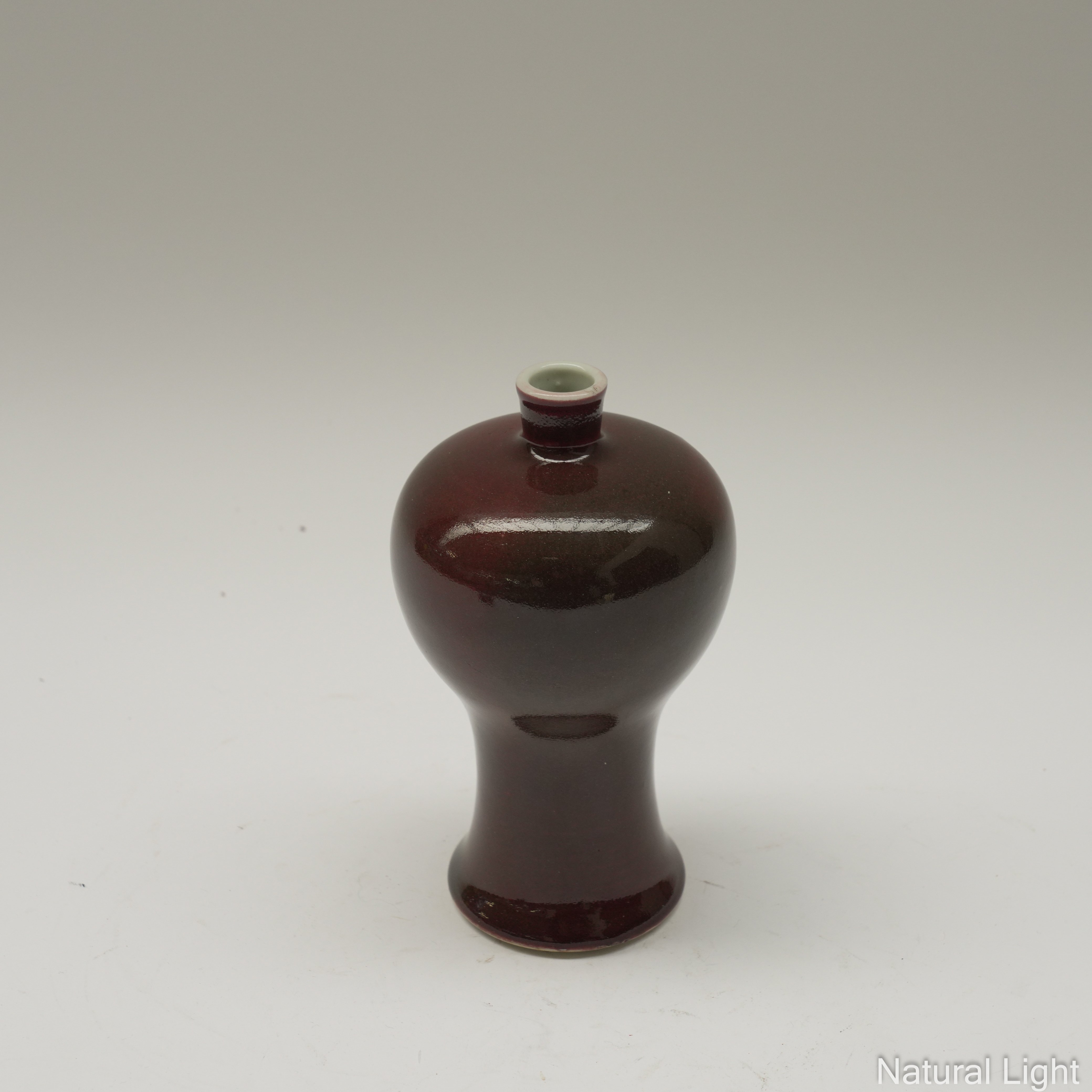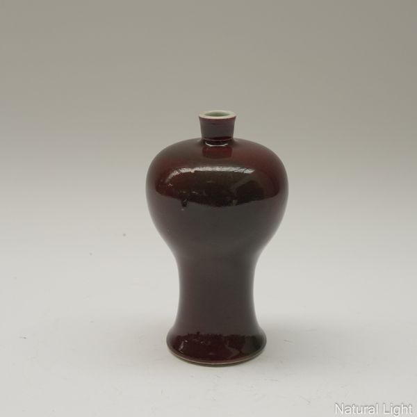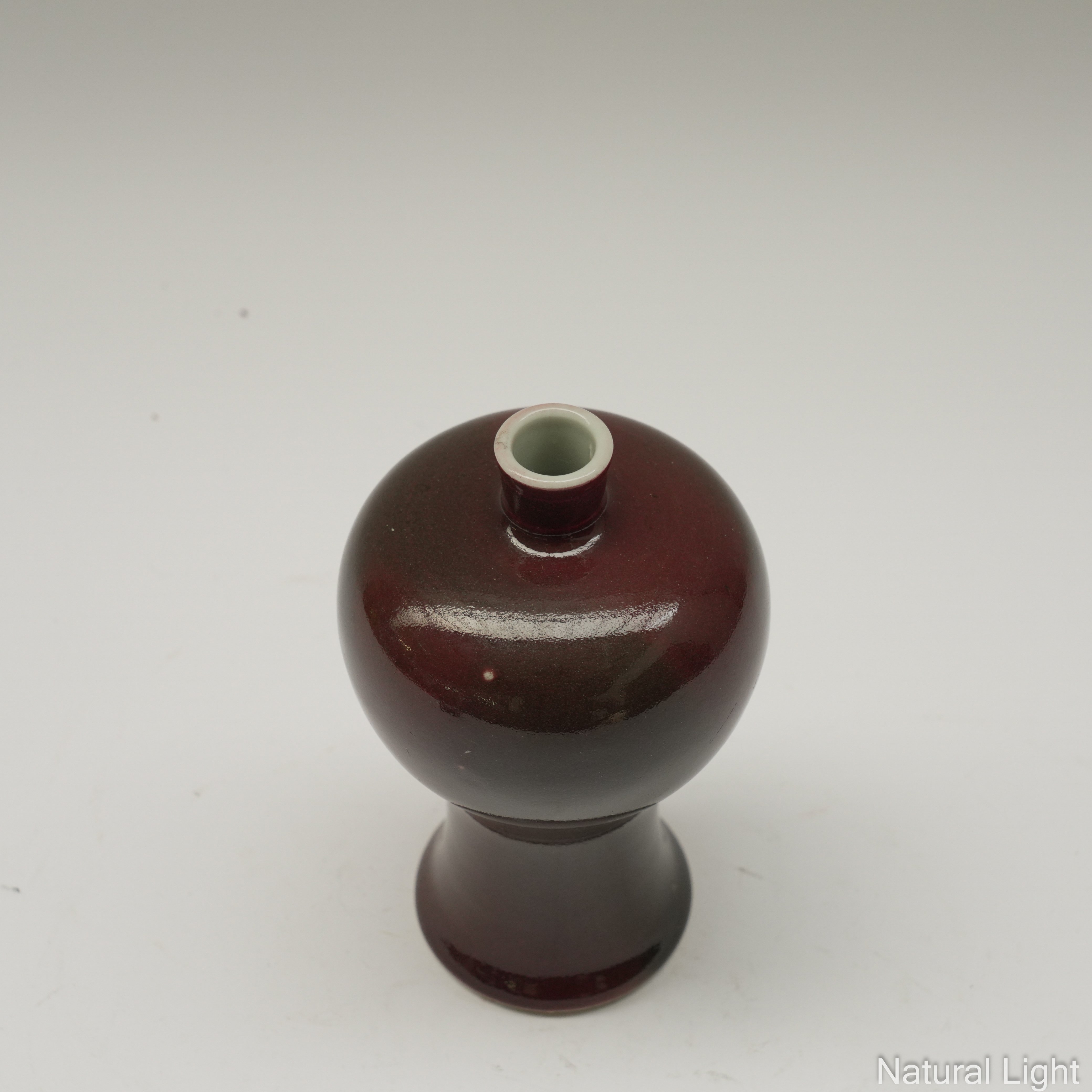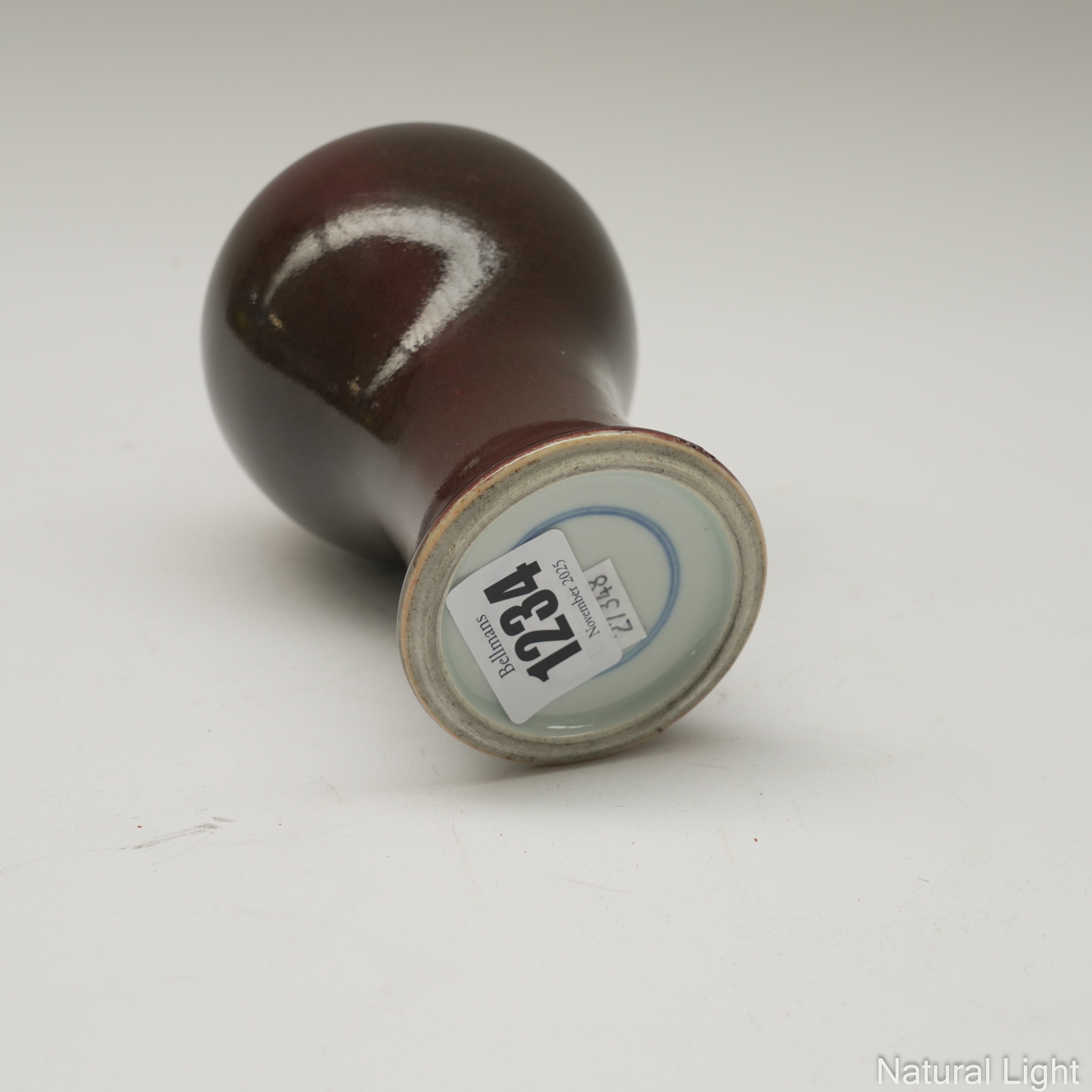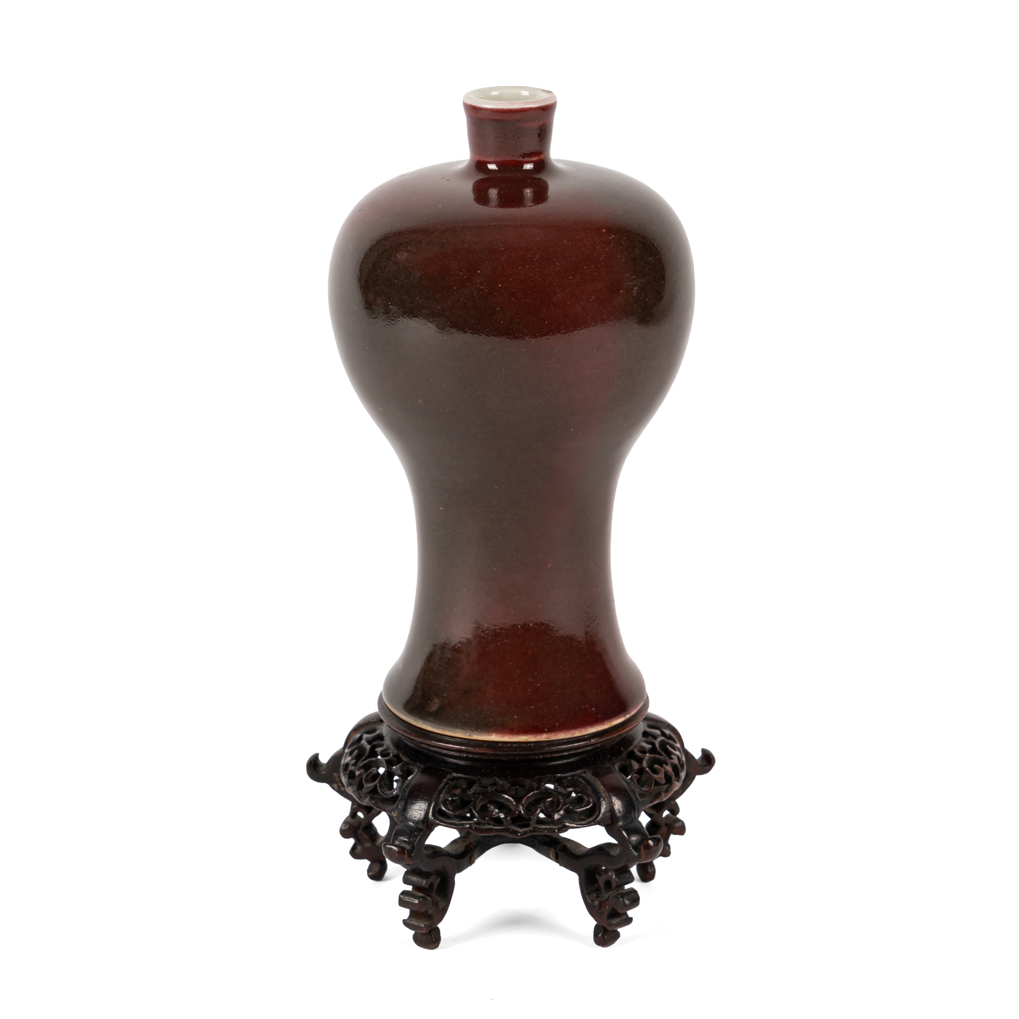 Oxblood/sang de boeuf, the base with vacant double ring cartouche of Kangxi type, 14.5cm high, together with a carved hardwood stand