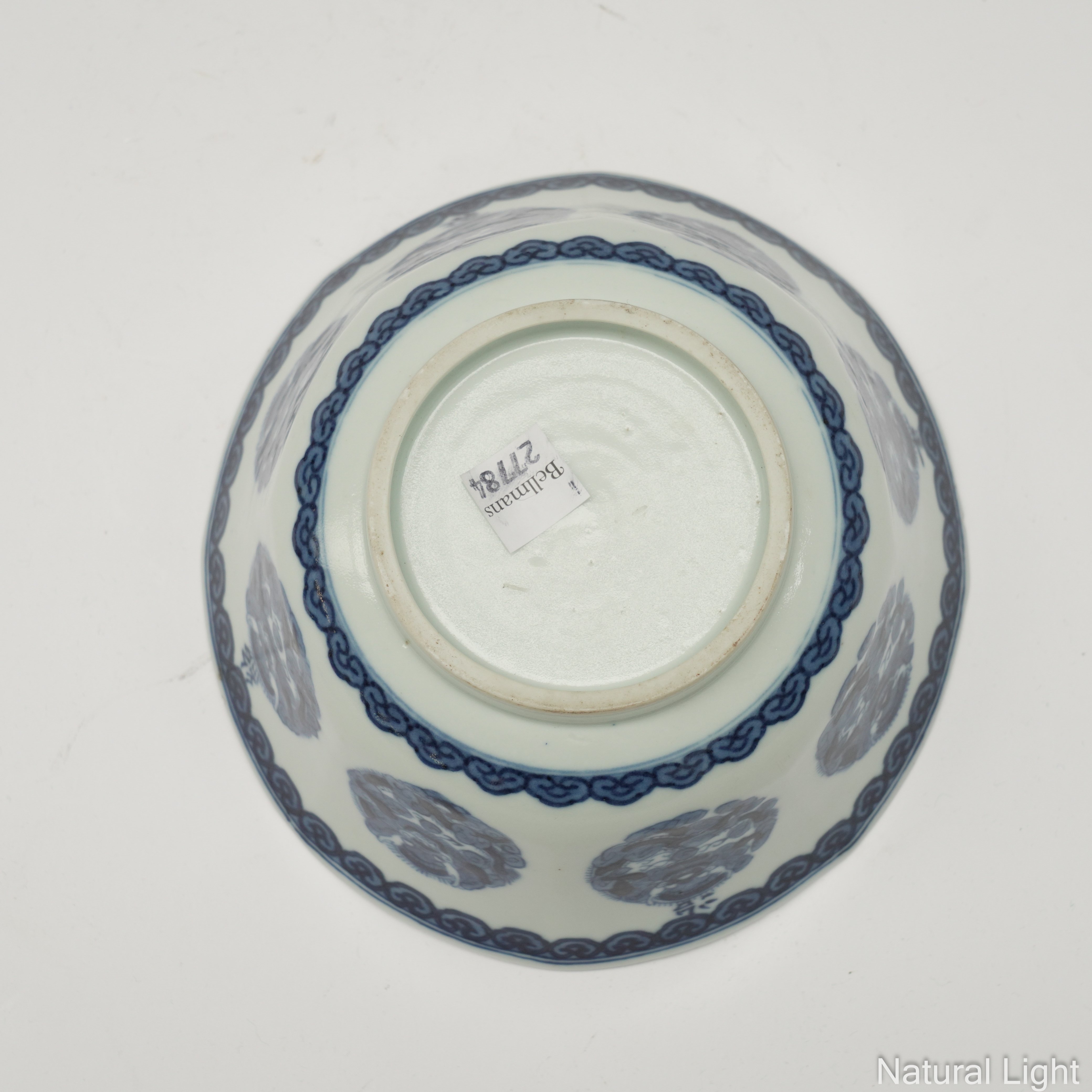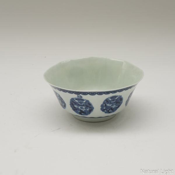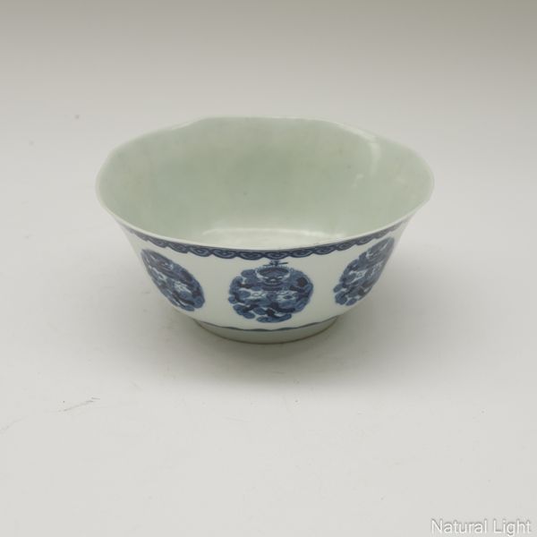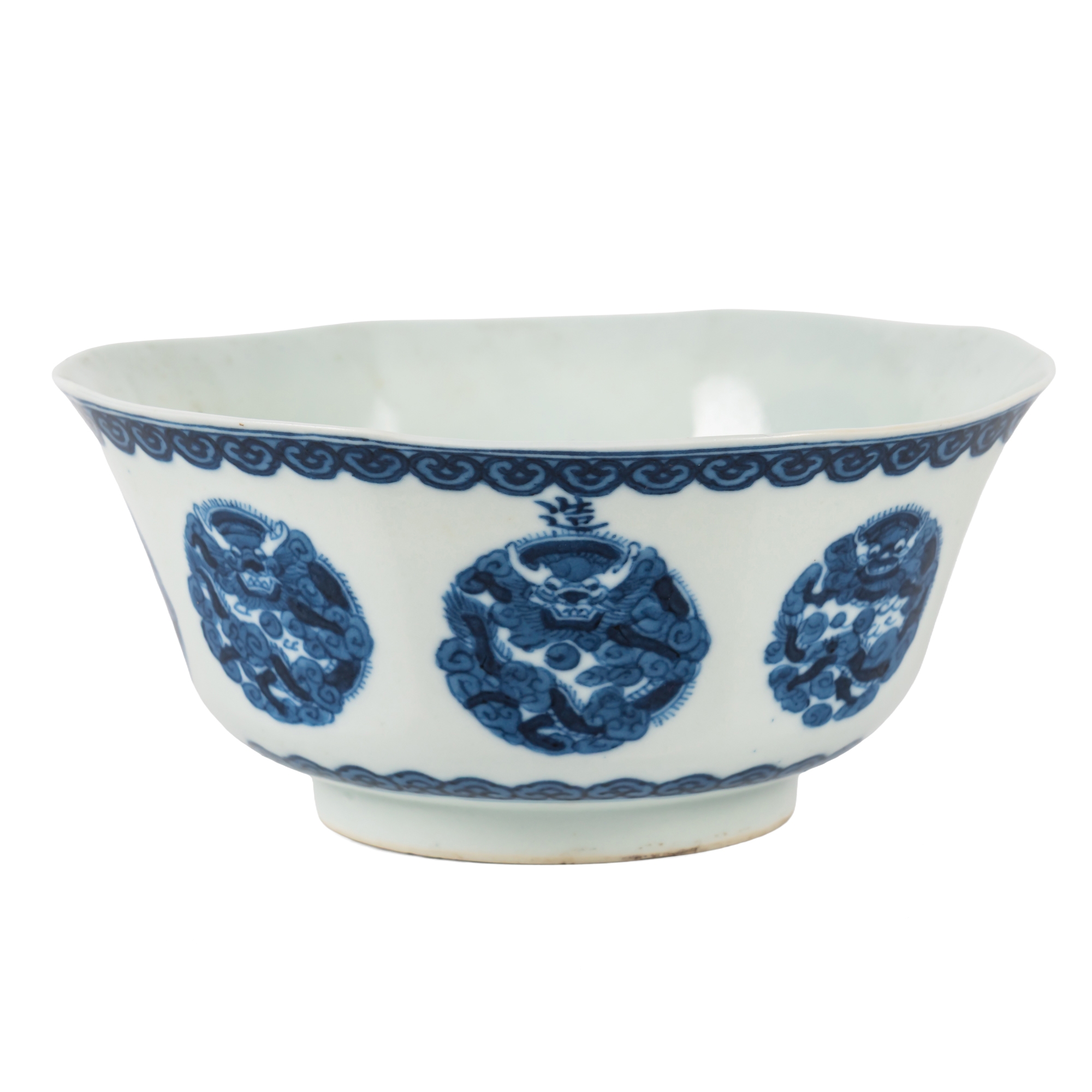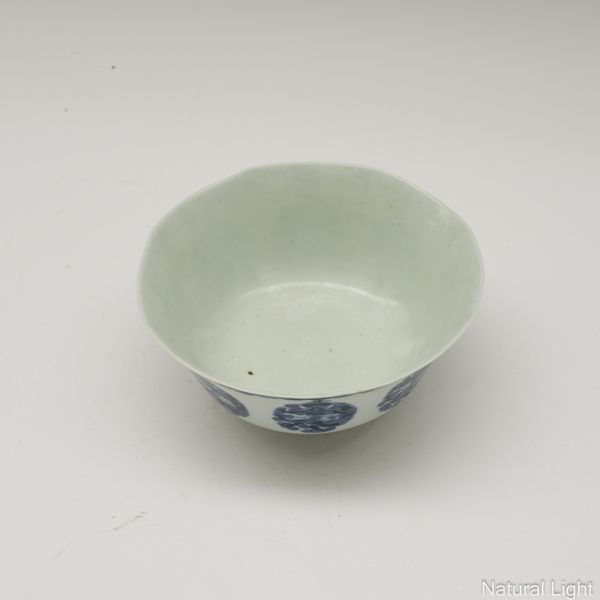 A CHINESE `BLEU DE HUE' BLUE AND WHITE OCTAGONAL BOWL