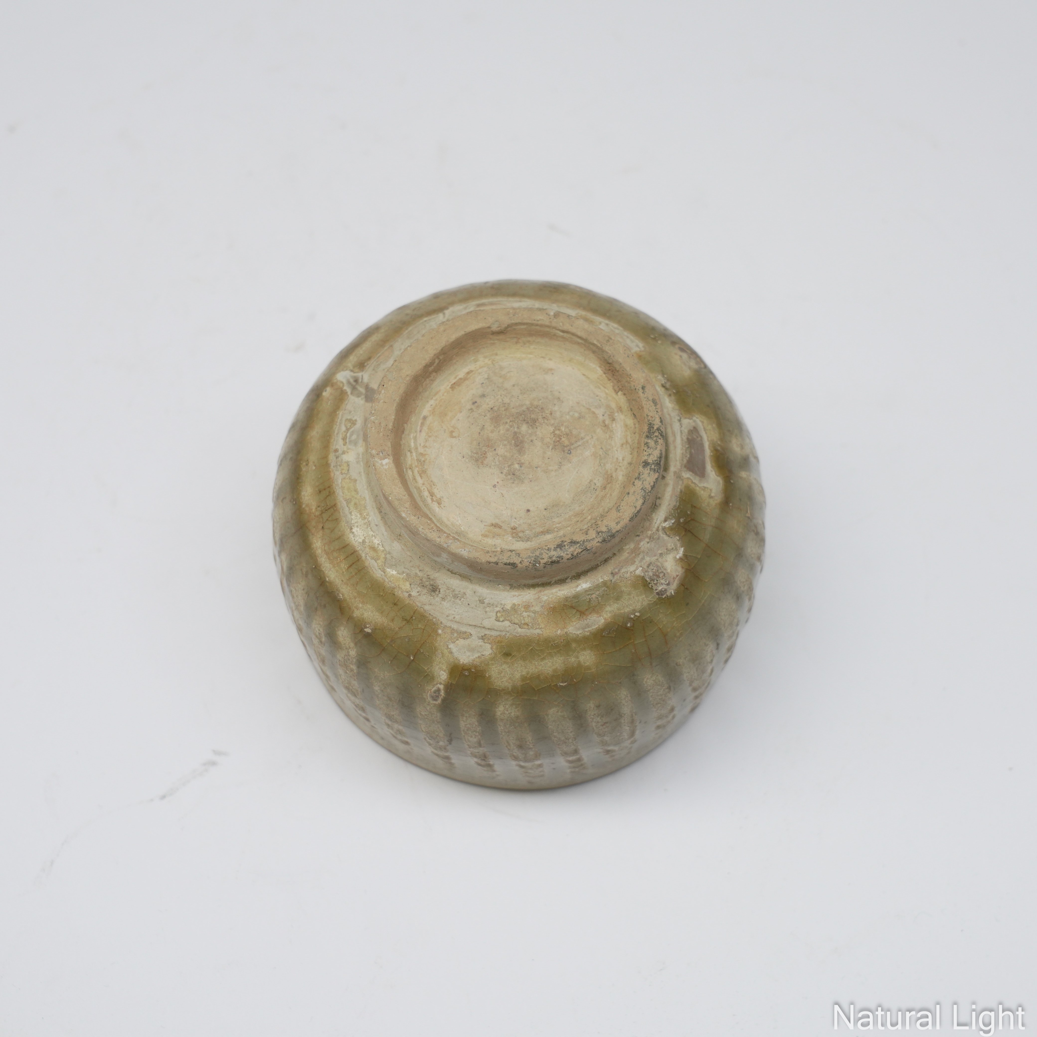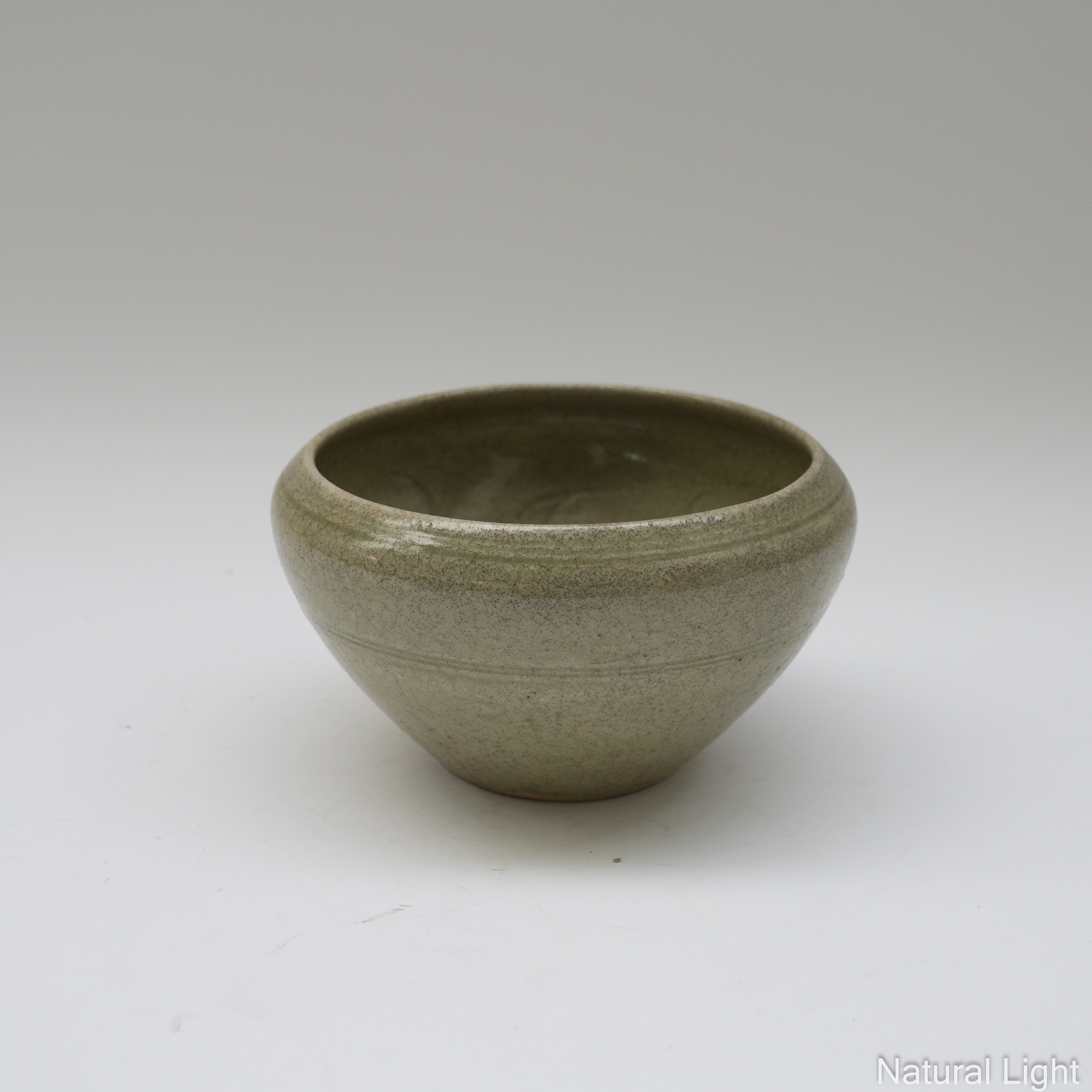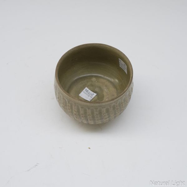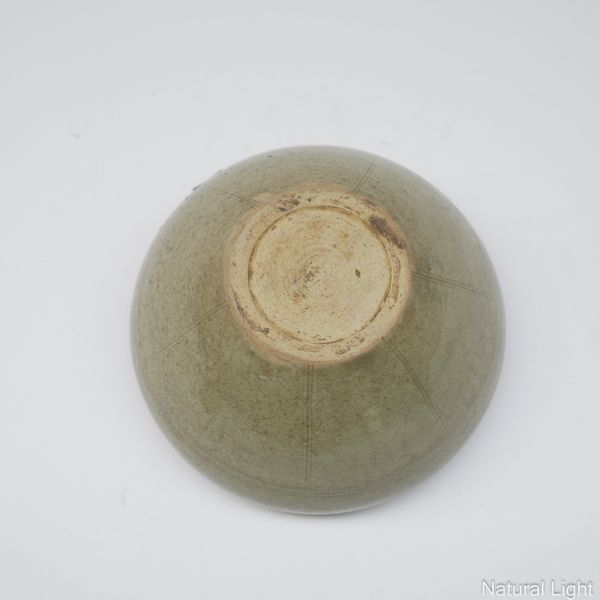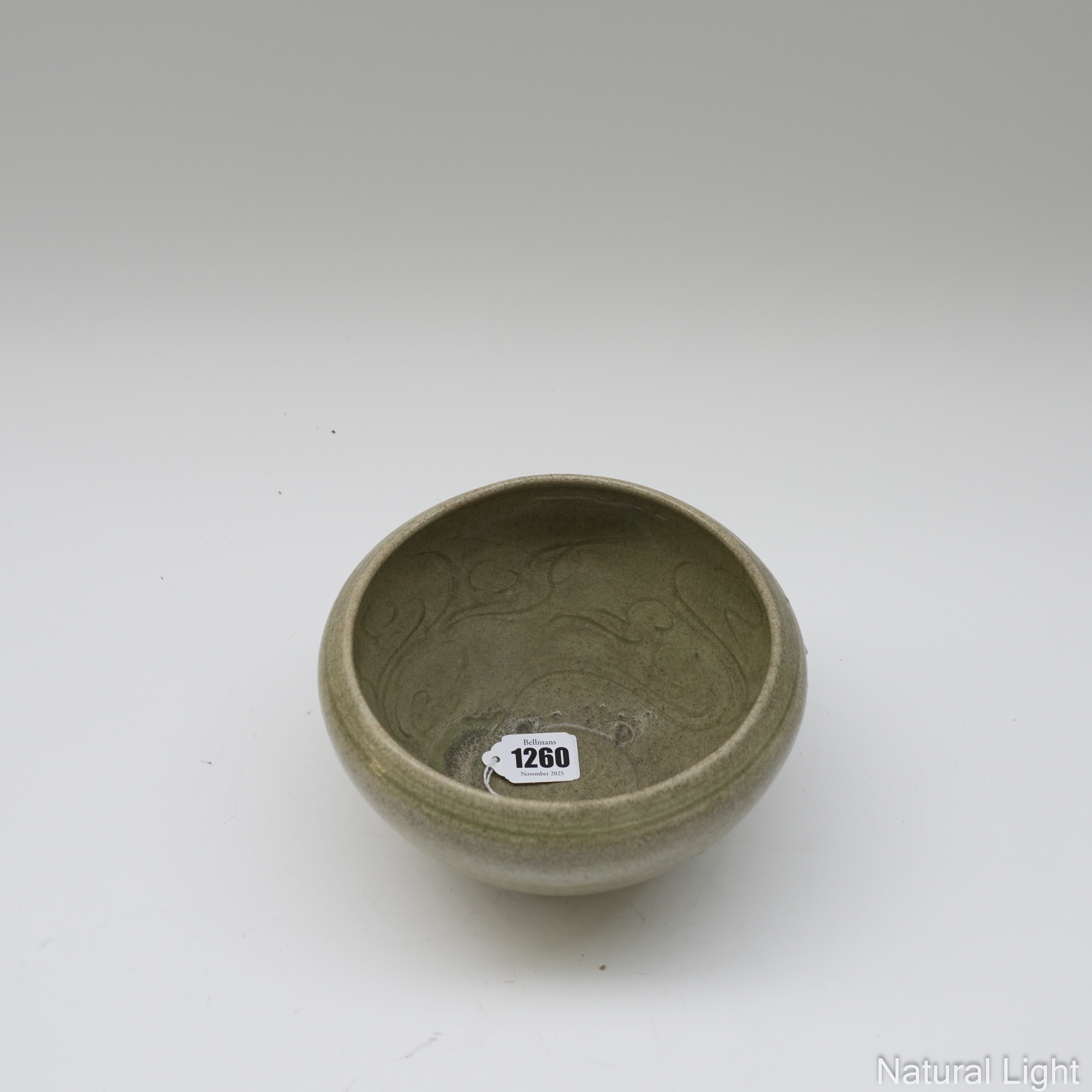 AN EAST ASIAN CARVED STONEWARE CELADON BOWL (2)