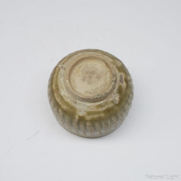 Having incised panel decoration to exterior, the interior carved with floral design, spur marks to interior, 10.5cm high by 19cm diameter; together with a Thai Sawankhalok celadon bowl decorated with incised marks to exterior, carved foot rim to base, 7.5cm high