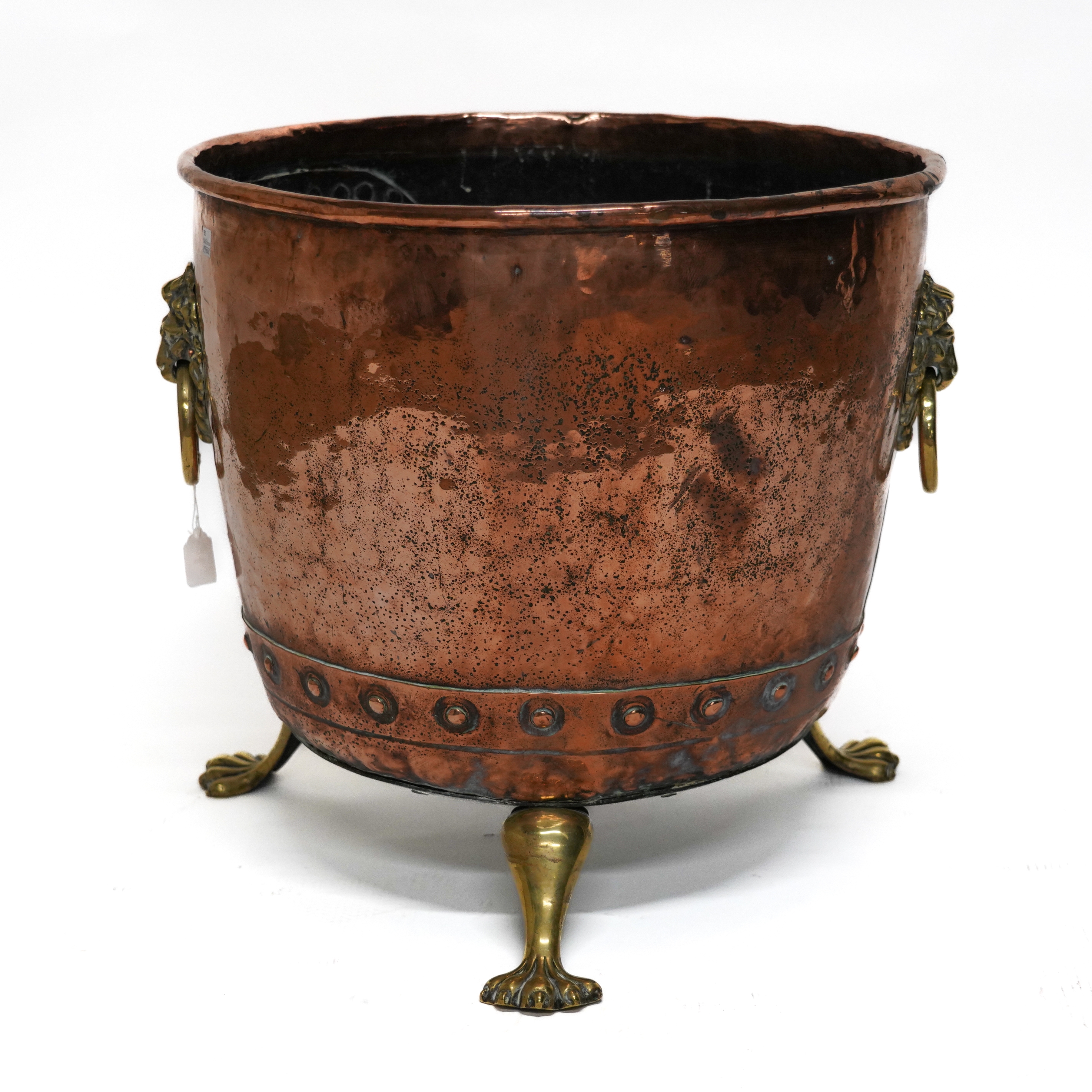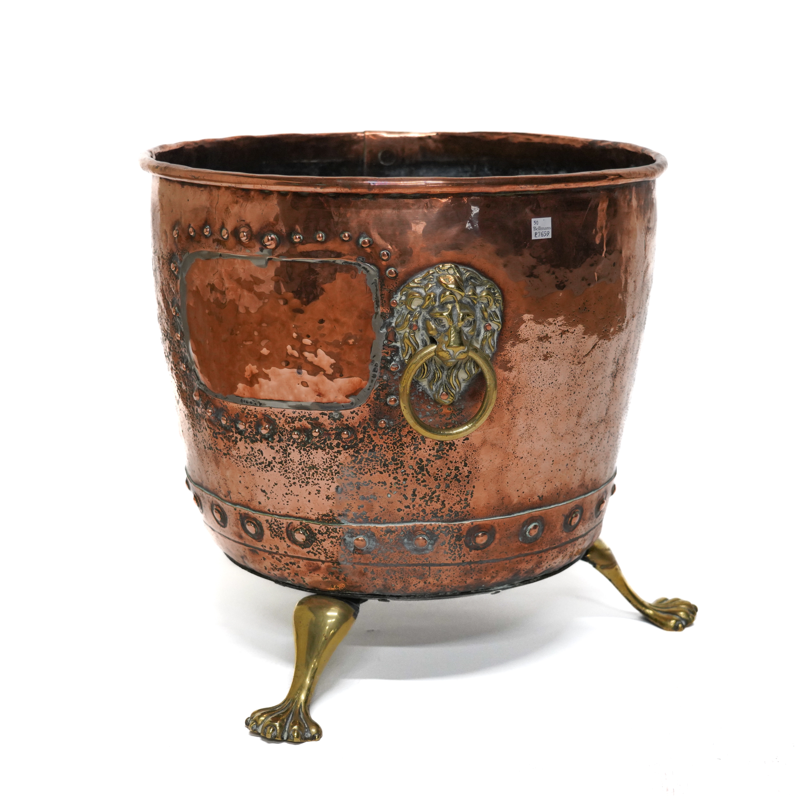 Late 19th Century Rivetted, mounted with lions' mask and loop handles on paw feet, 46cm high
