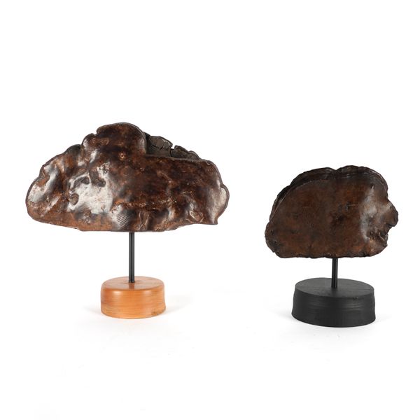 20th Century Each in dark brown colour, mounted on circular plinths, 33cm high and 26.5cm high