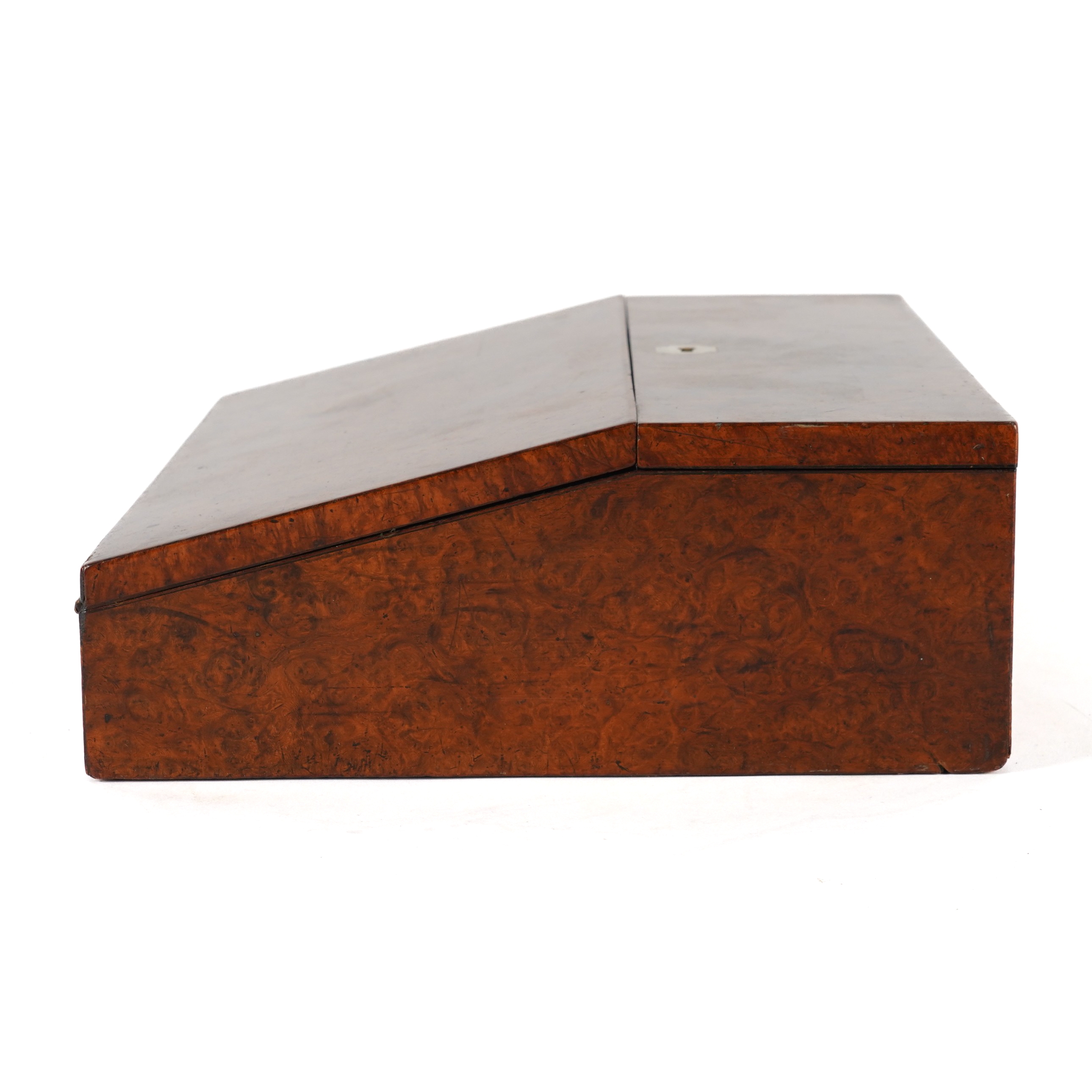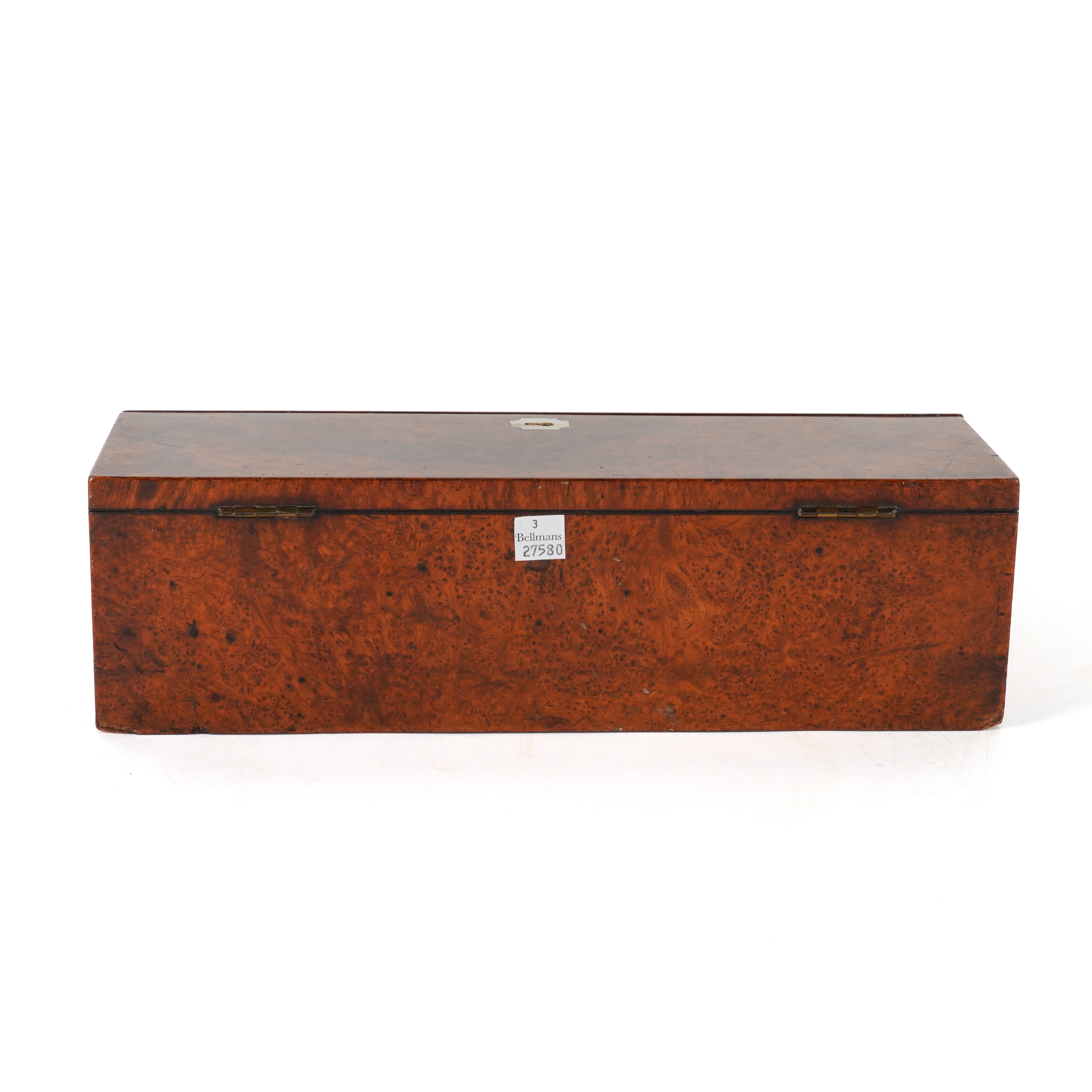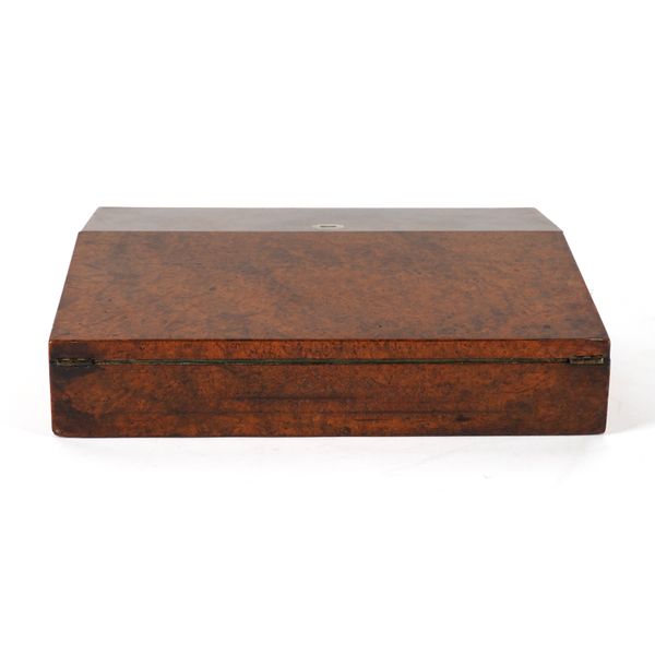 A VICTORIAN CAMPAIGN BURR MAPLE WRITING BOX