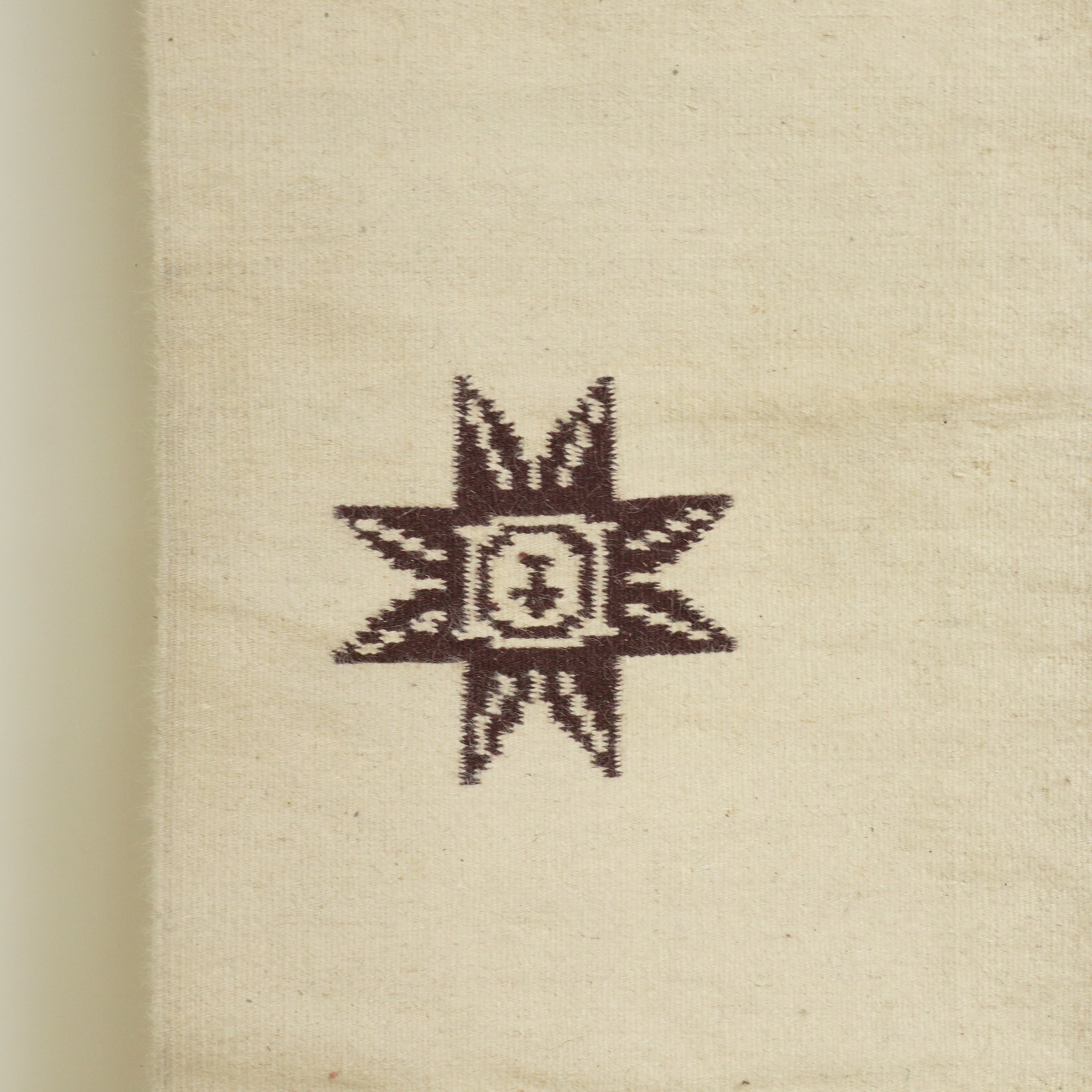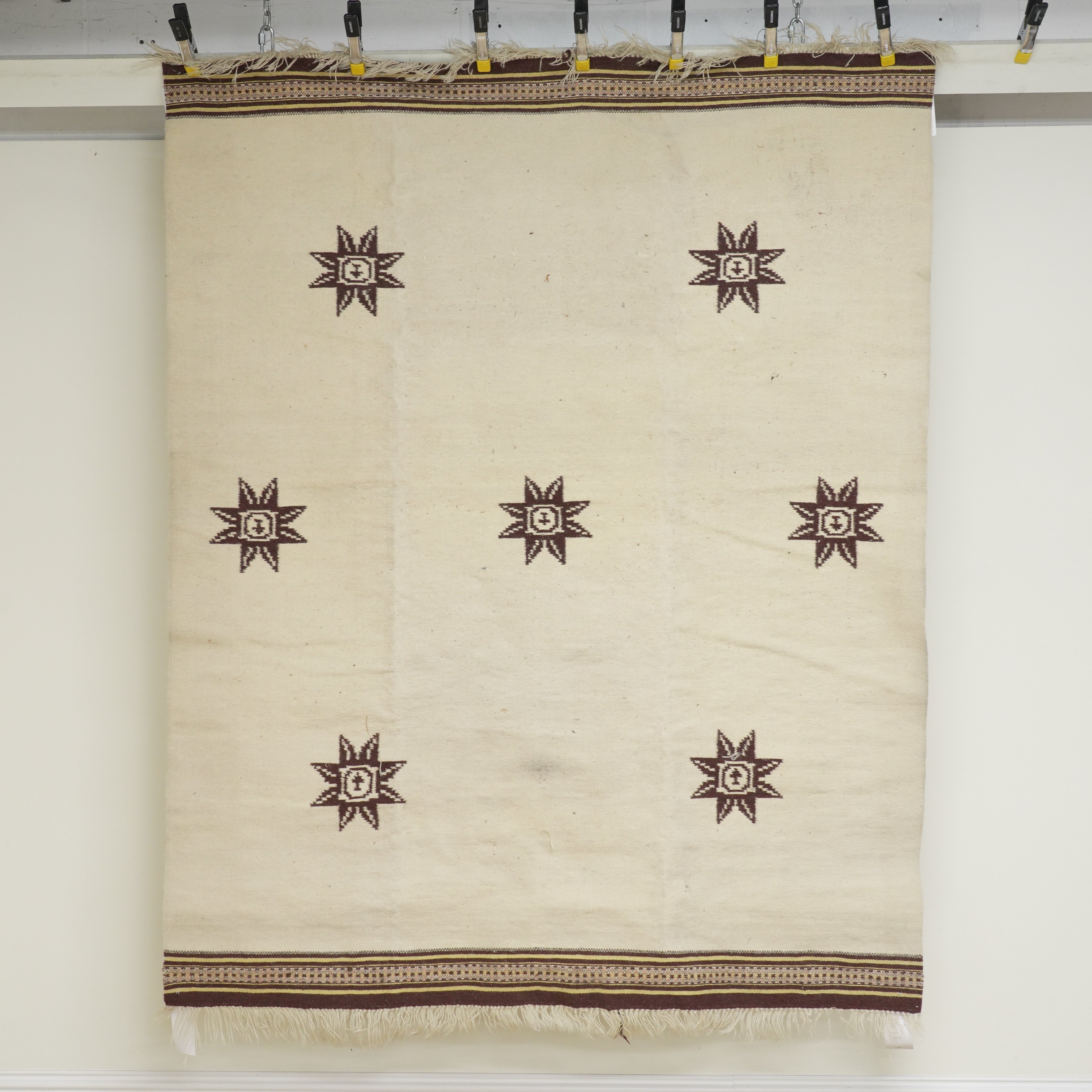 Circa late 20th century The ivory field with seven brown star motifs and banded ends, 230 x 170cm.