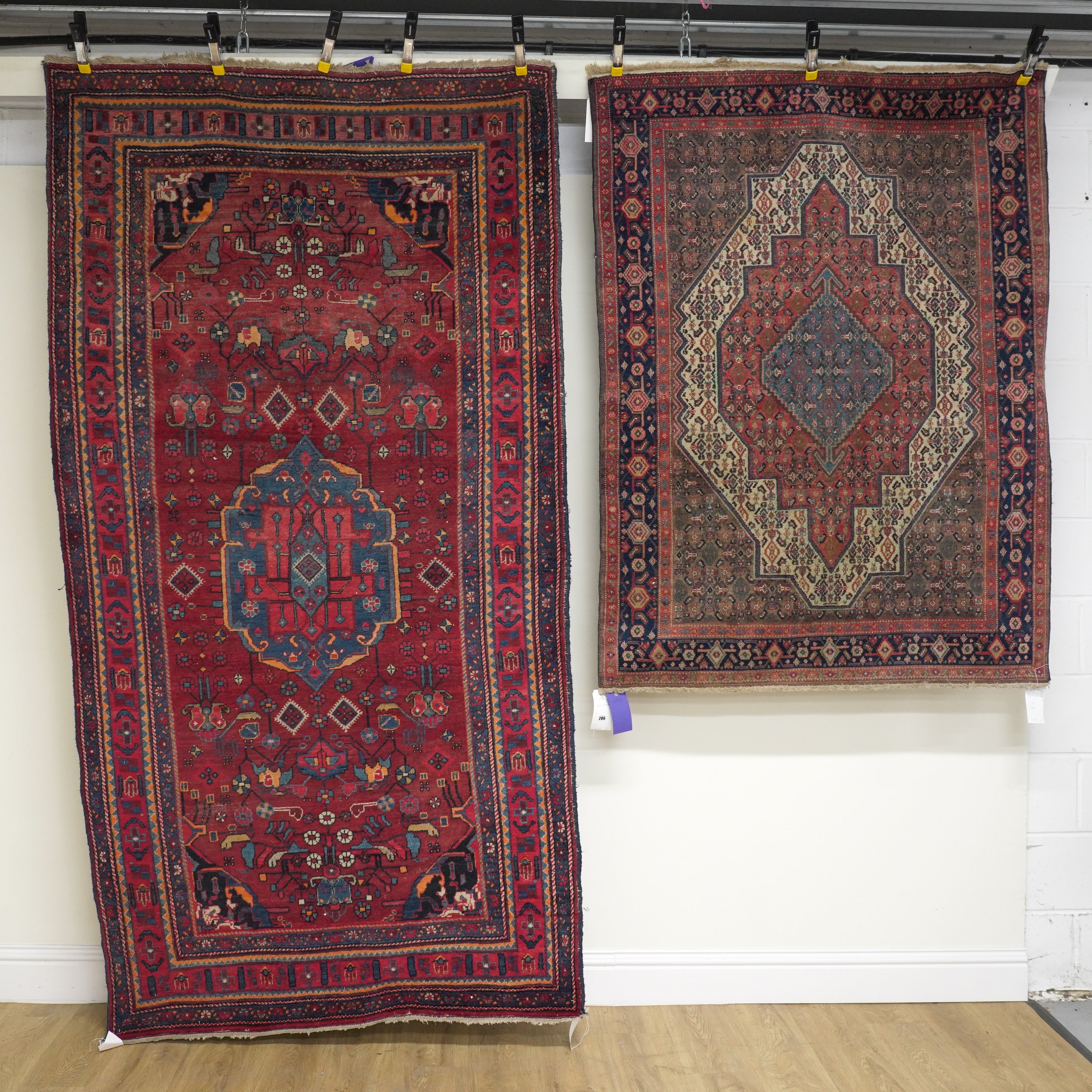 Senneh rug - condition is very good.  Bidjar - condition is good - small repair and some wear.  Both need a clean.