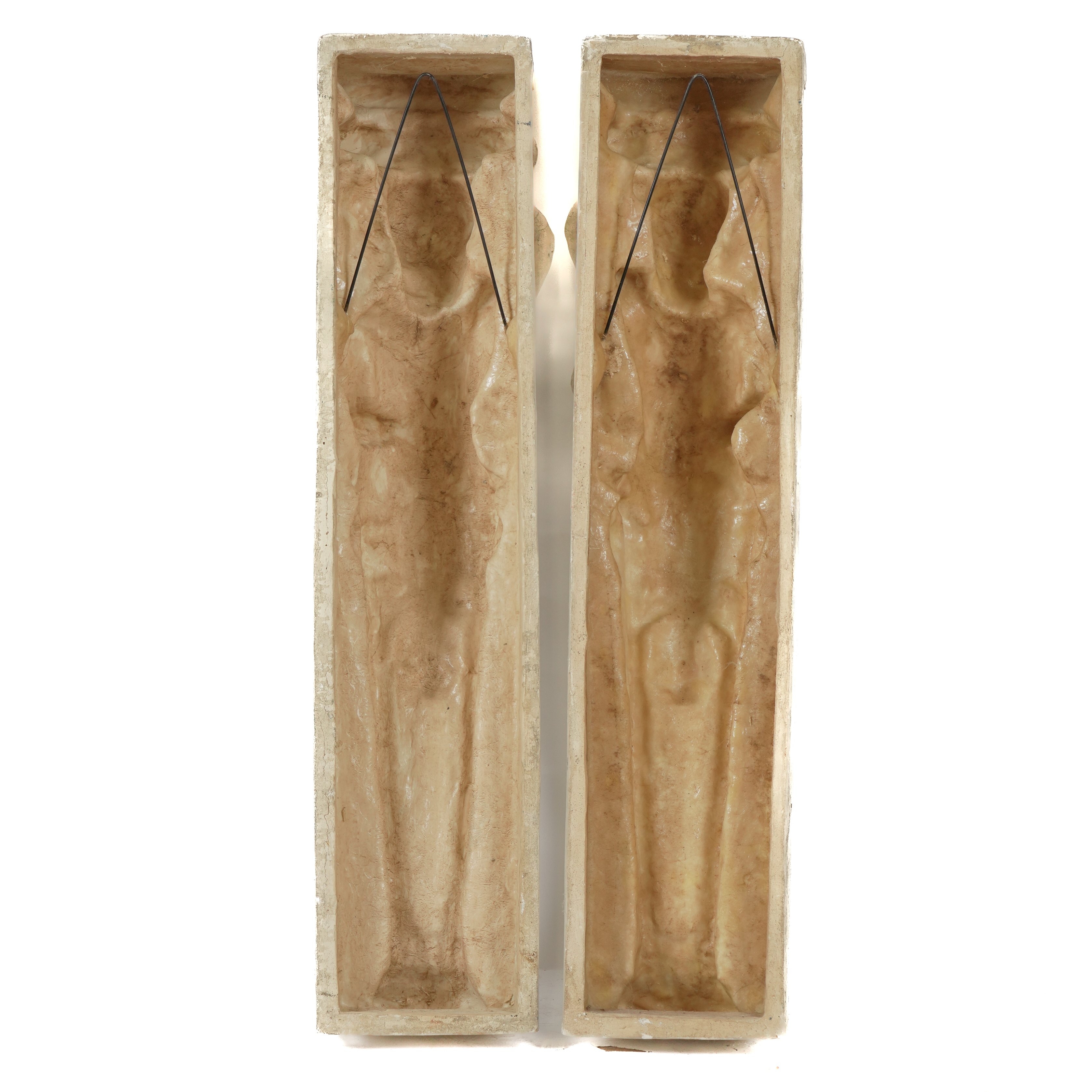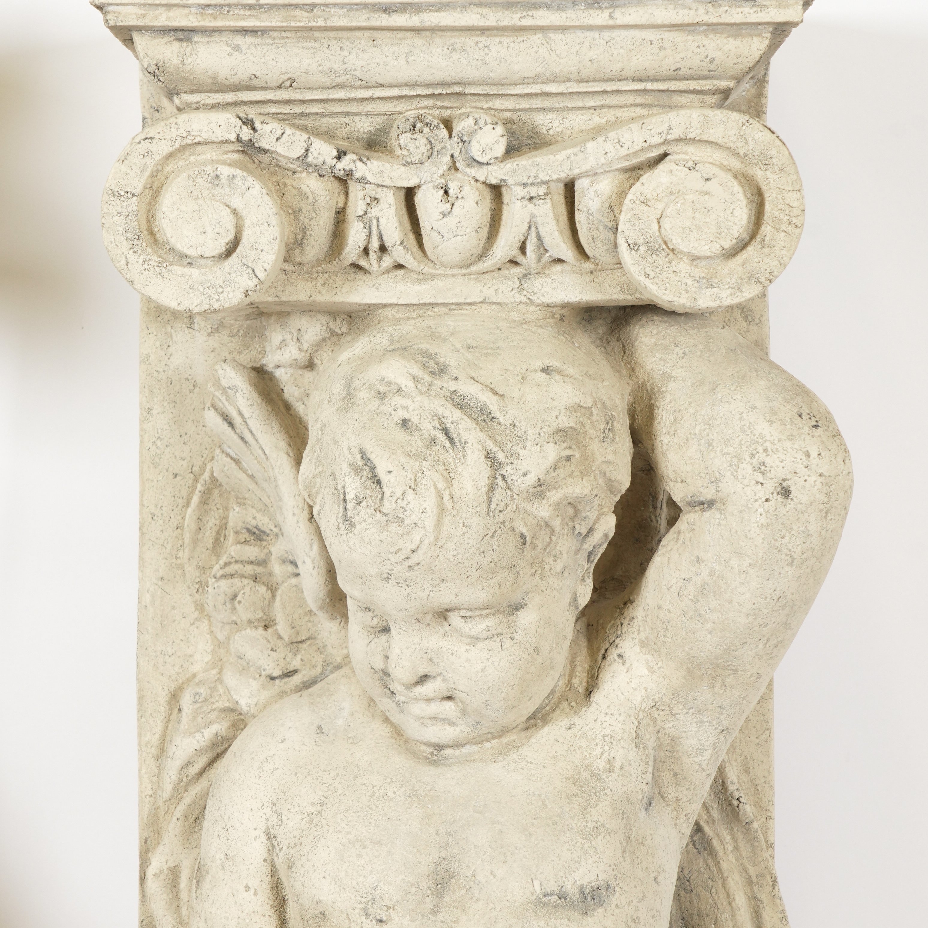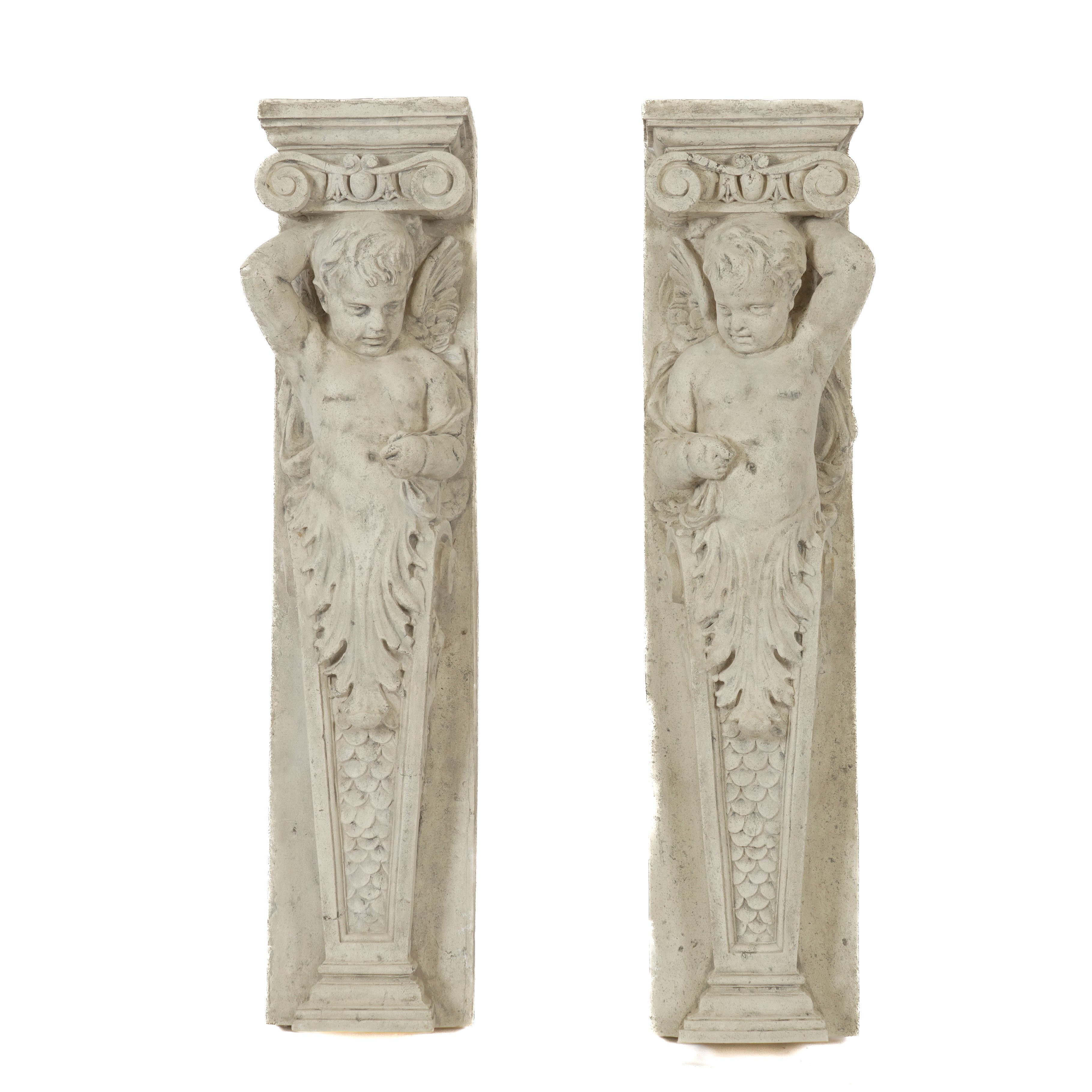 A PAIR OF FAUX STONE CHERUB CARYATID SUPPORTS (2)