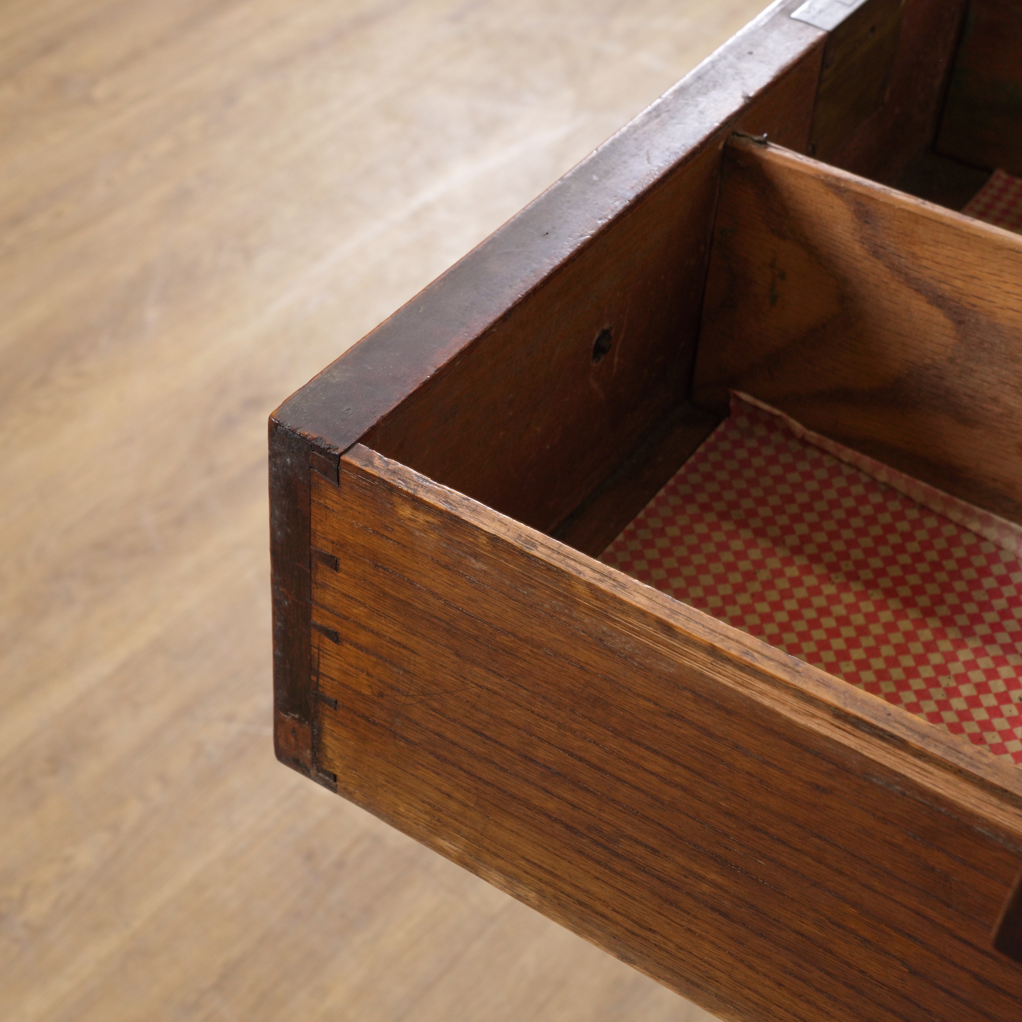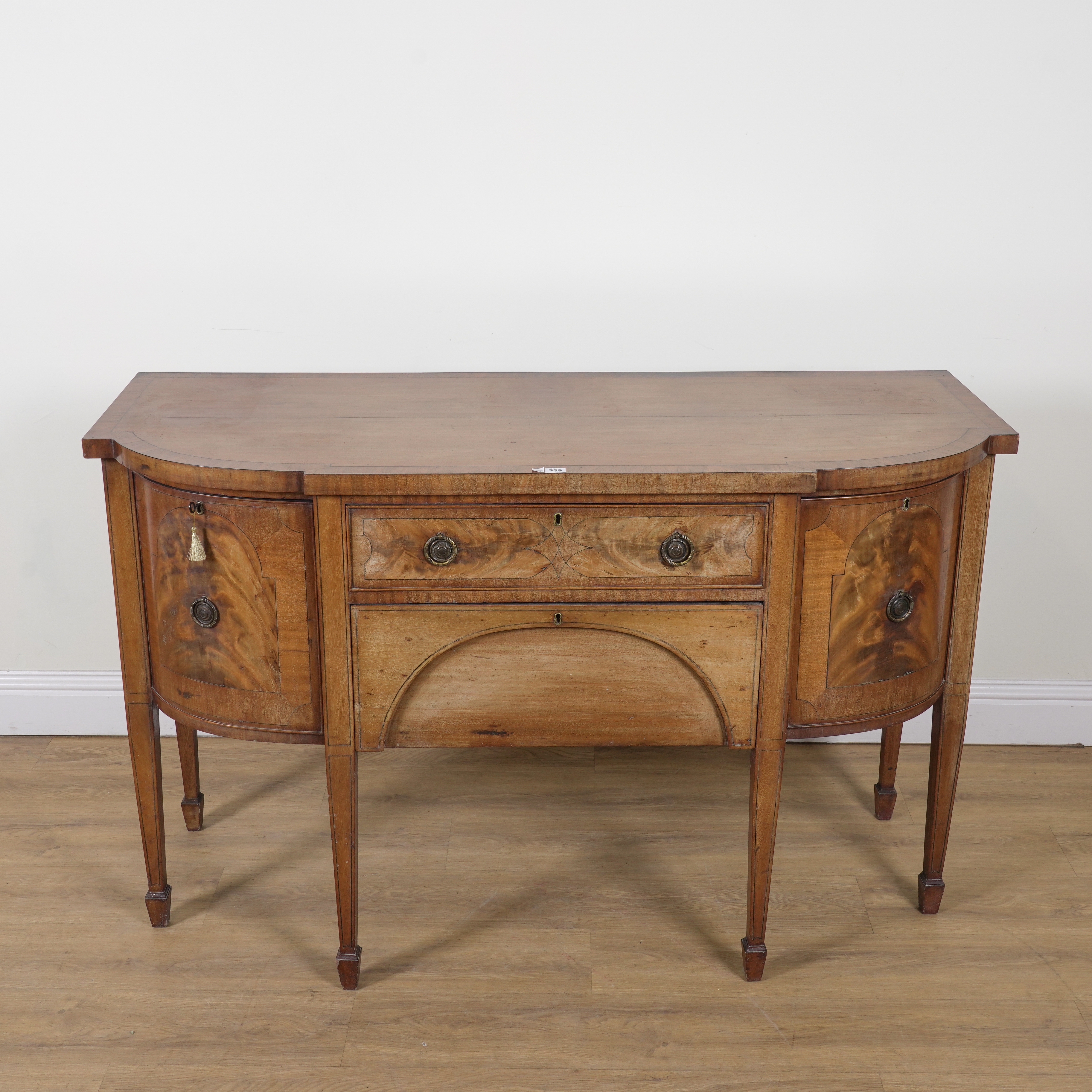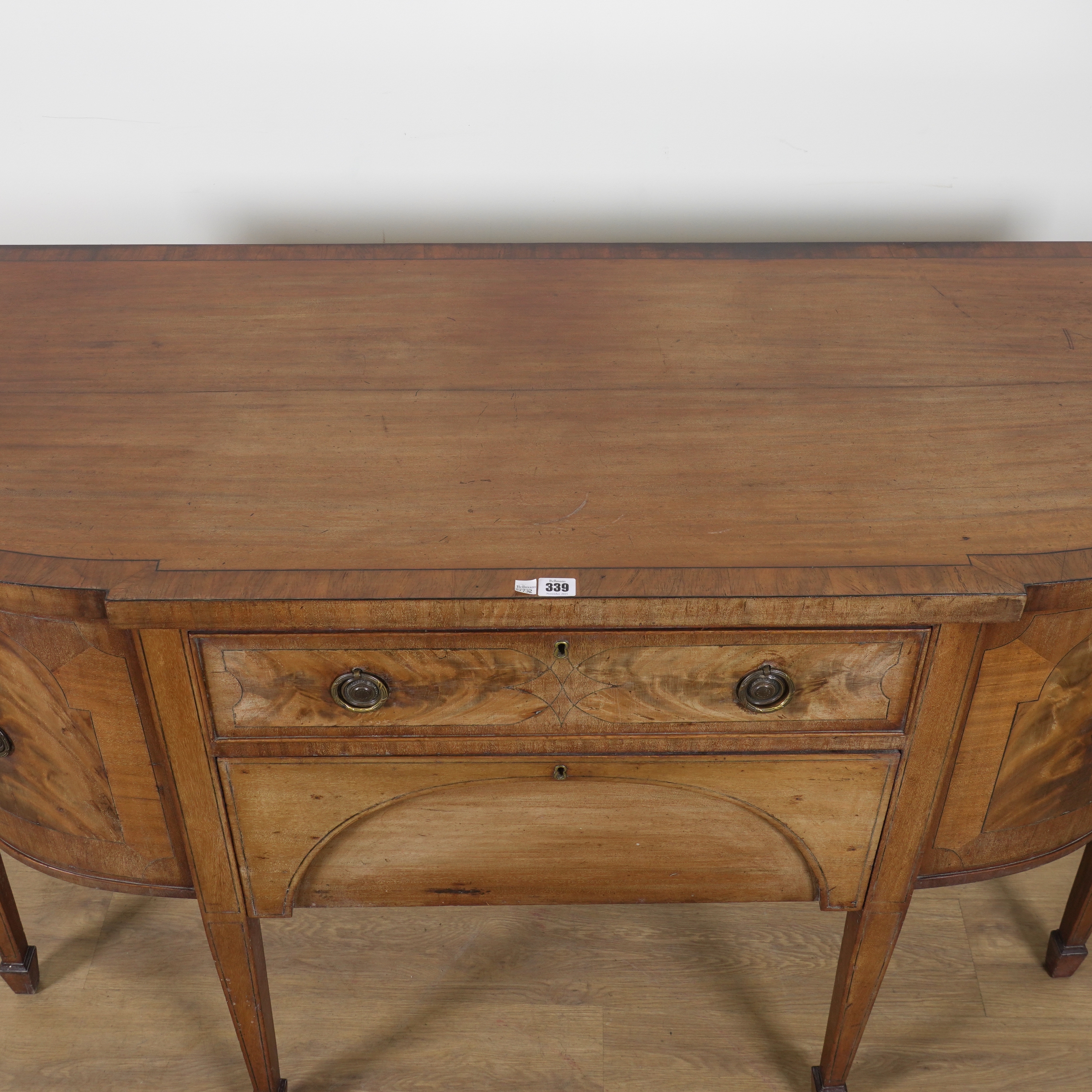 With three frieze drawers and single cupboard, 150cm wide; 60cm deep; 94cm high