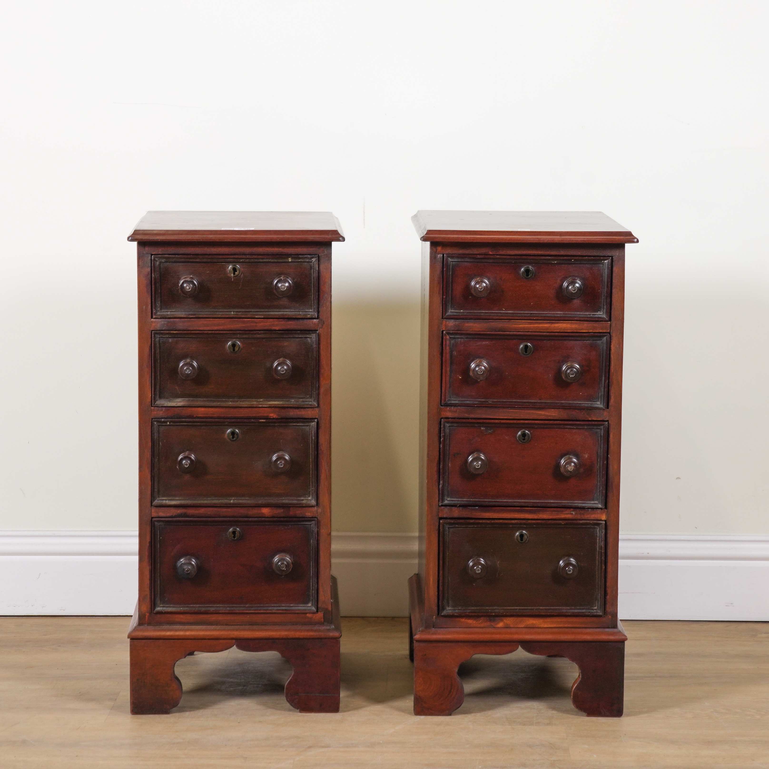 A PAIR OF MAHOGANY FOUR DRAWER BED SIDE CHESTS (2)