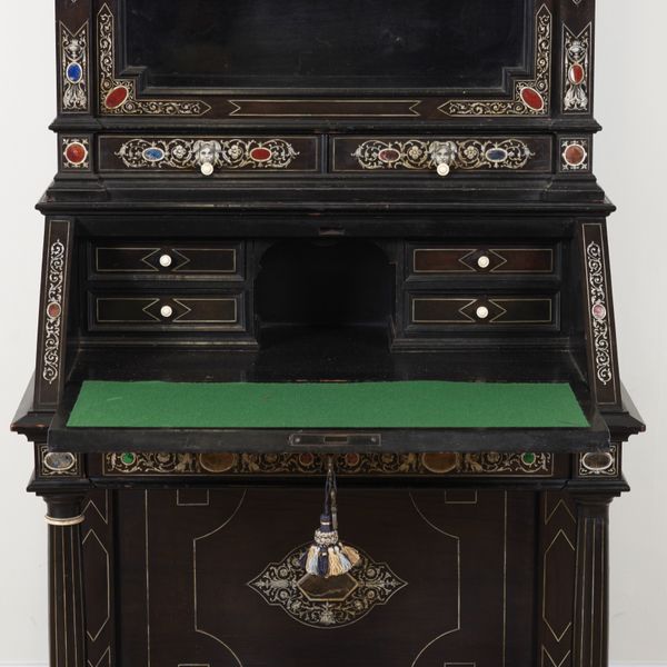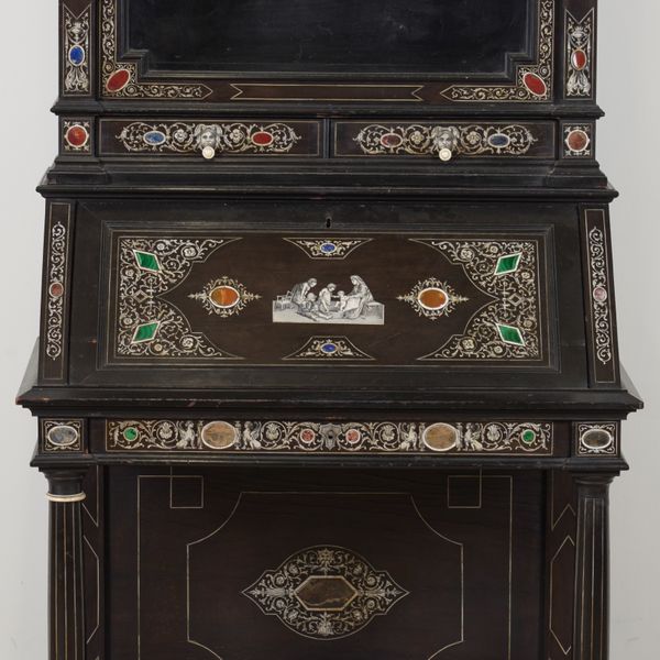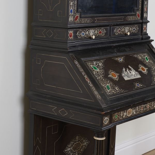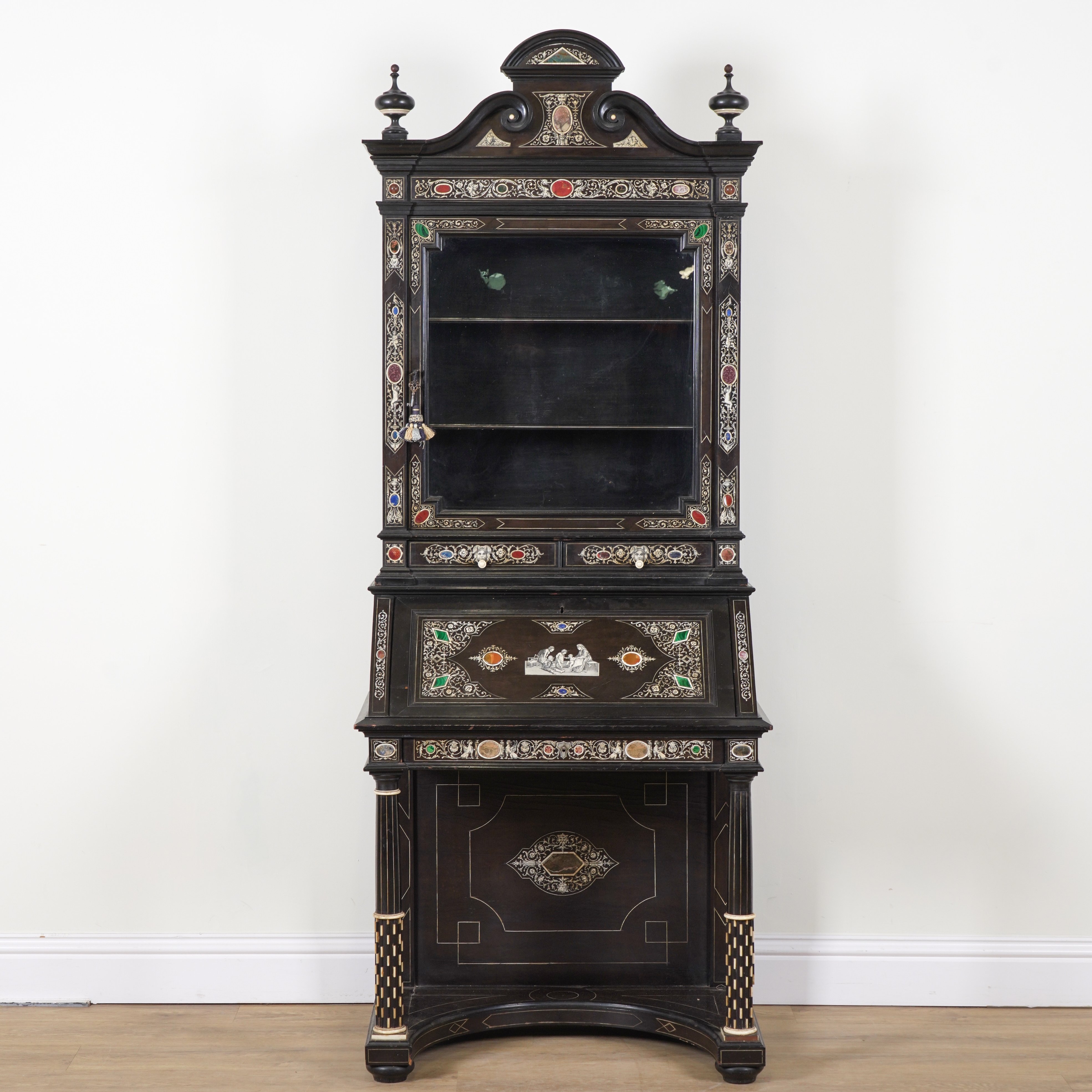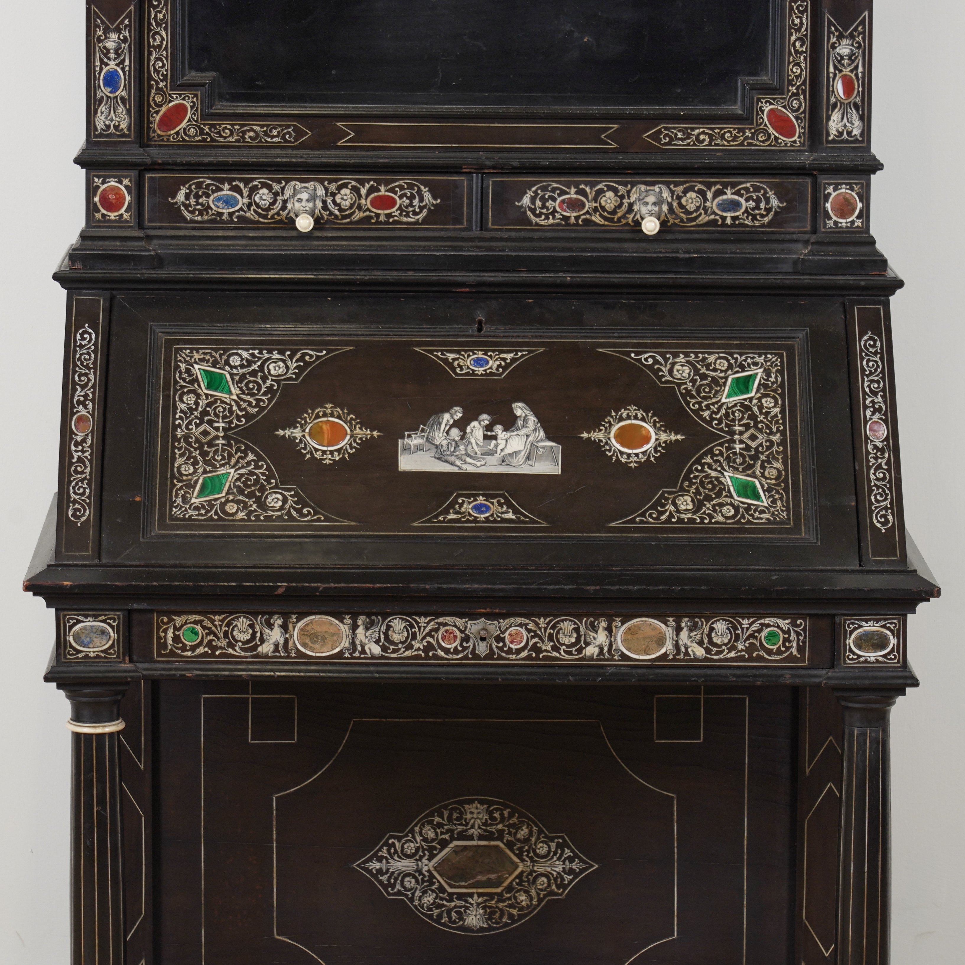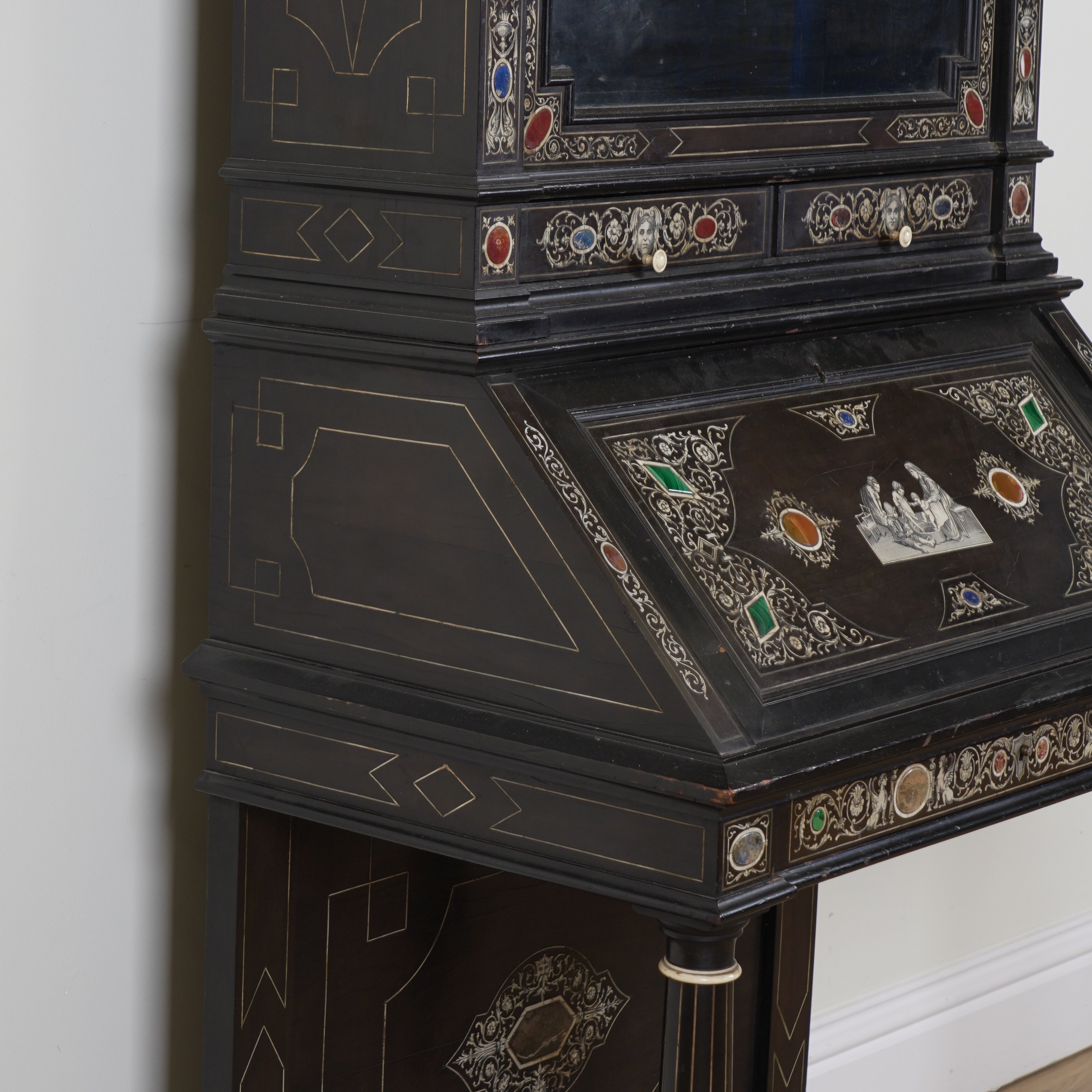 FERDINANDO POGLIANI; A 19TH CENTURY ITALIAN EBONISED STONE INLAID BUREAU CABINET