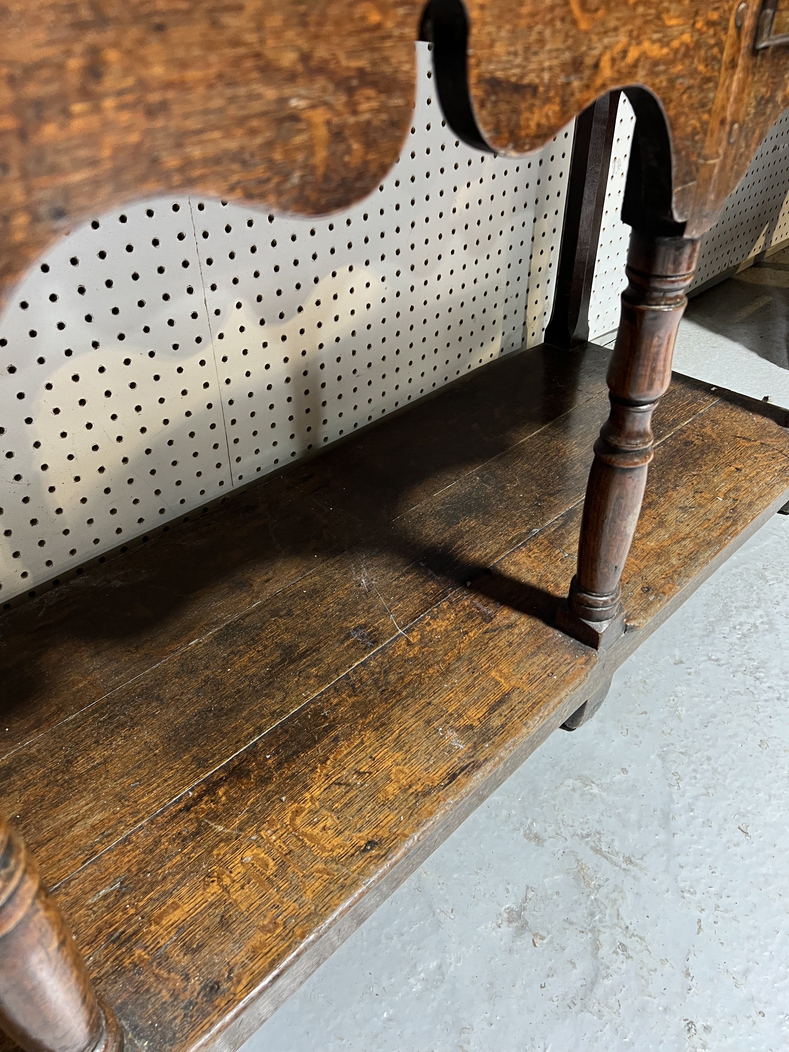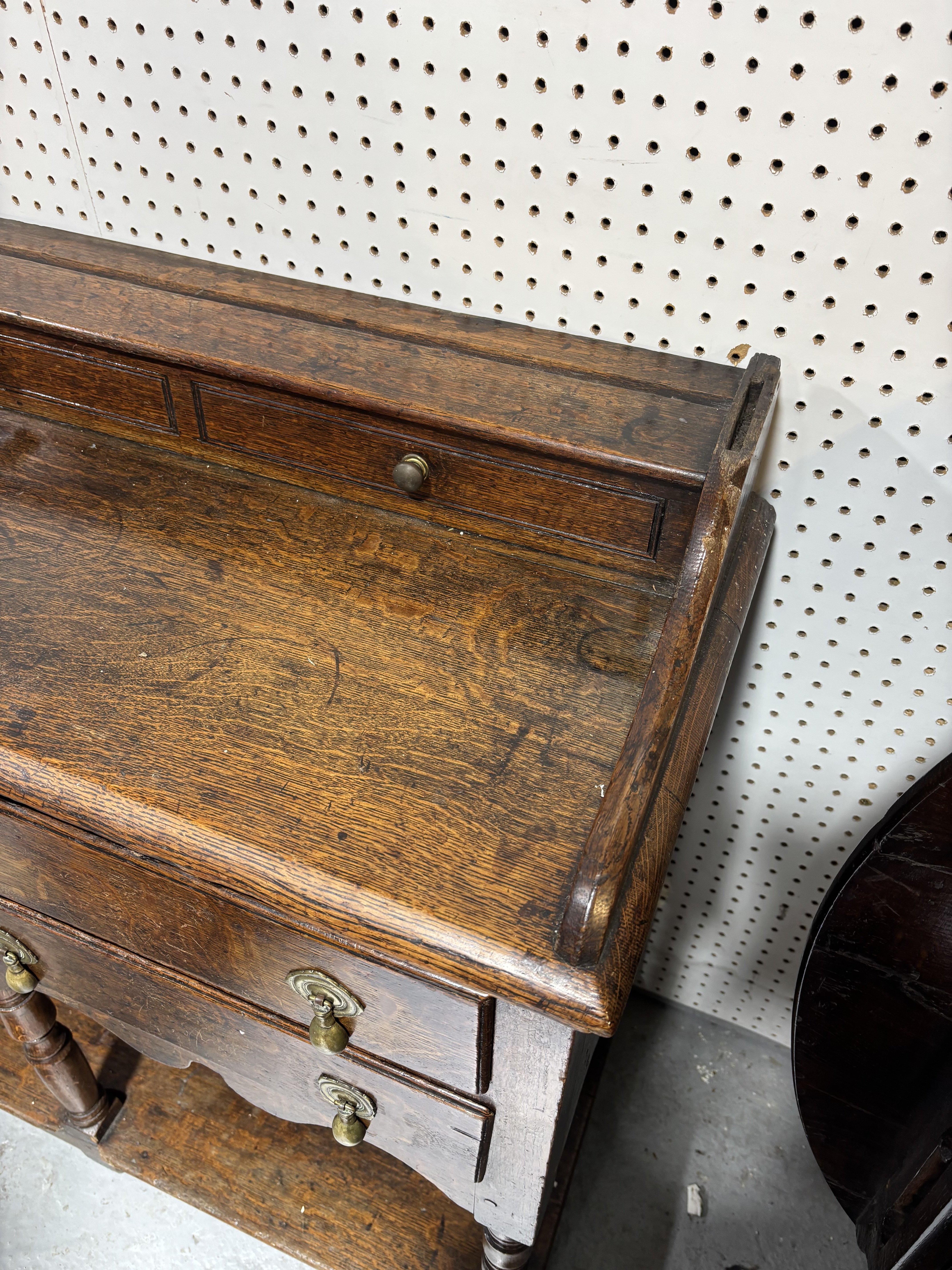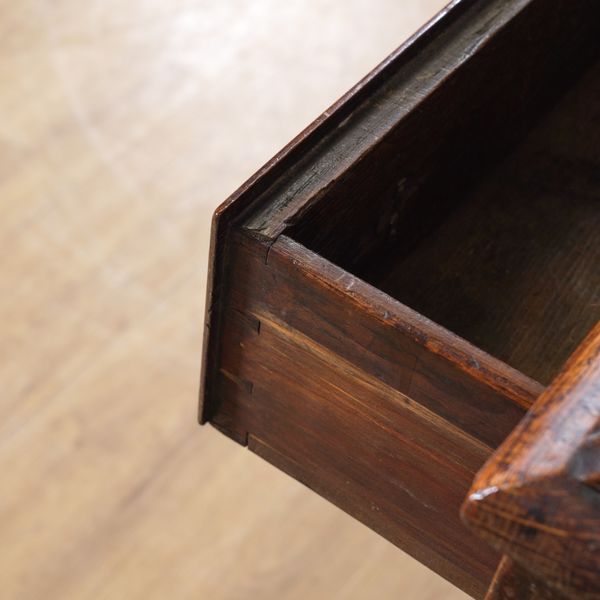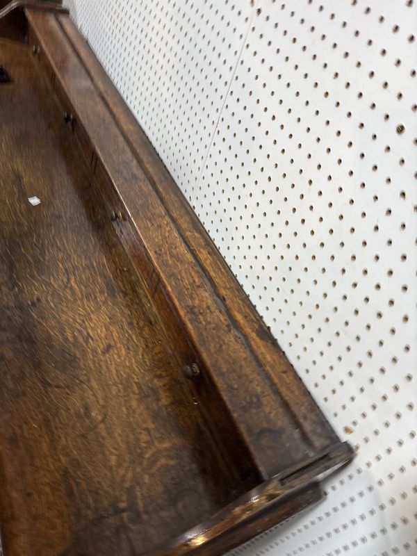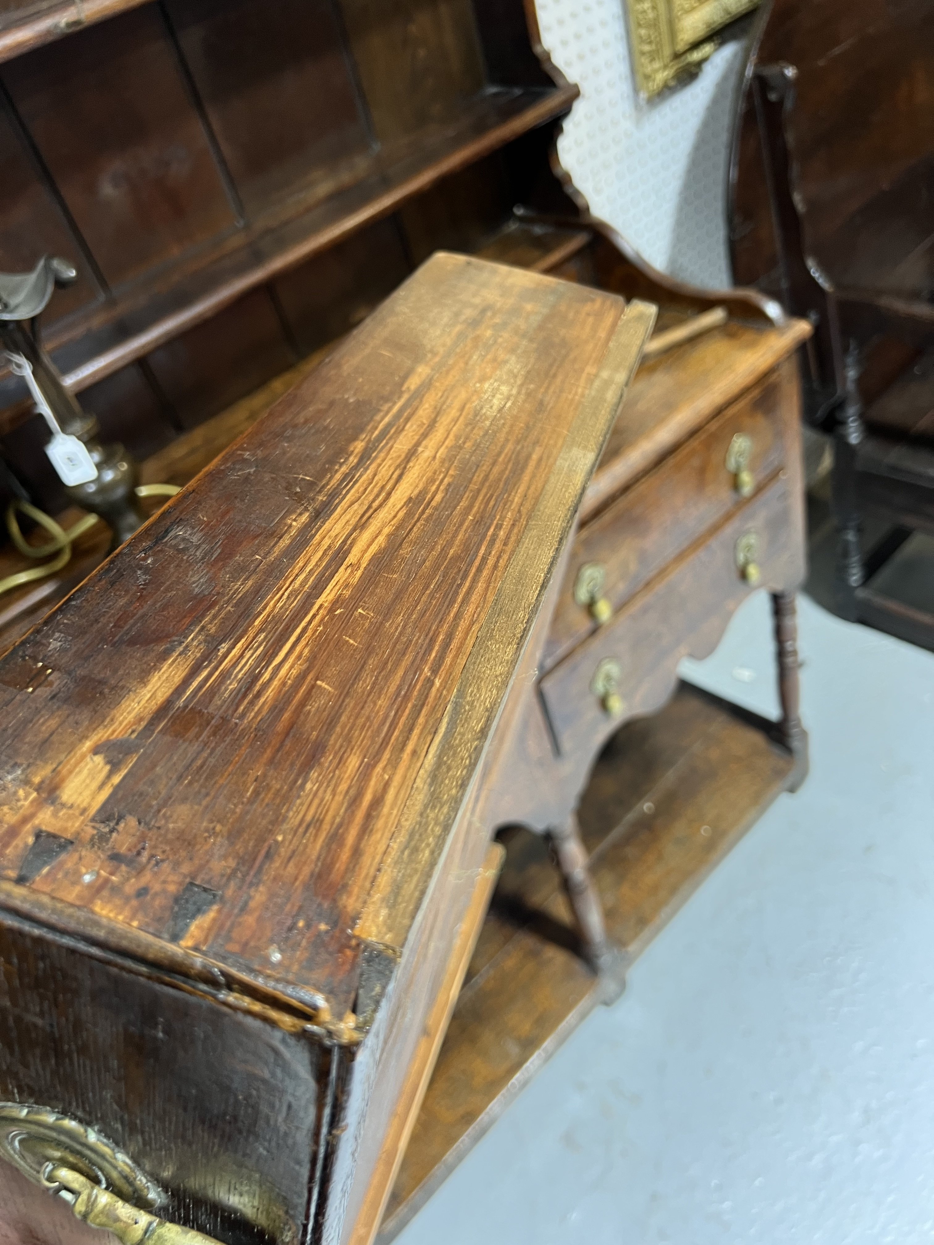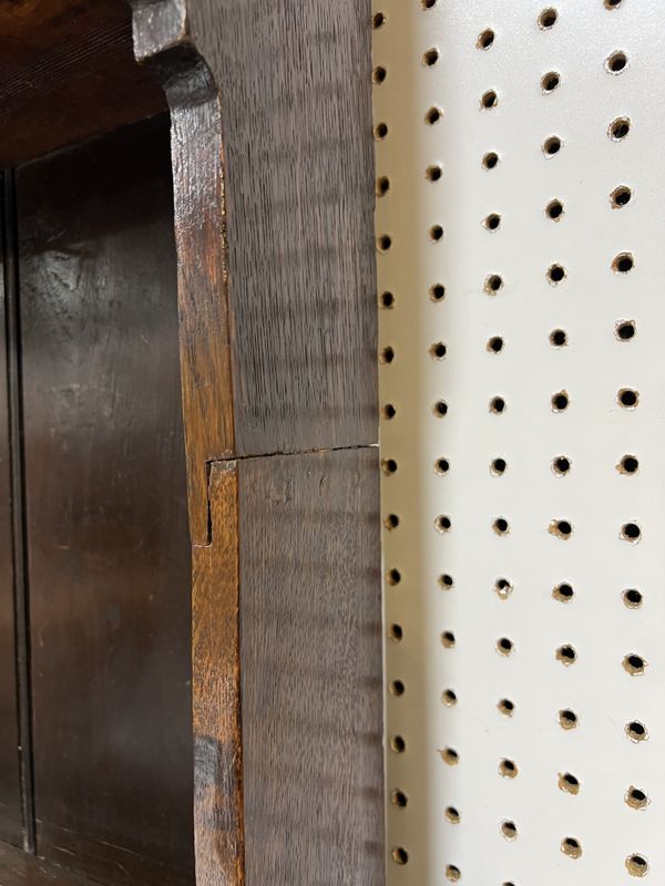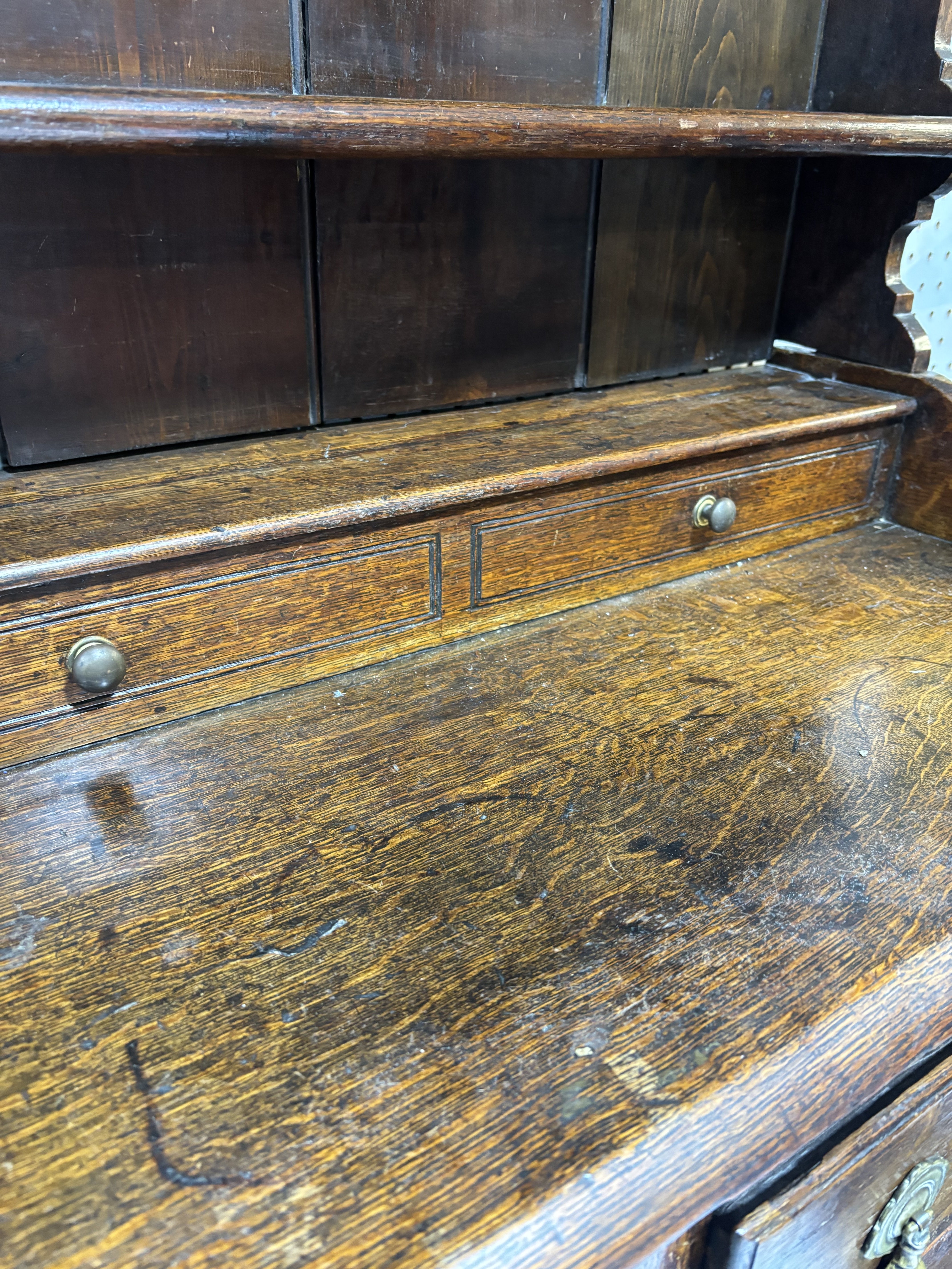 old marks and scratches present all over, some later alterations present to the drawers, split/repair to right side of the rack, see image, later backboard fitted to the rack, chips around the drawer fronts and supports, see images.