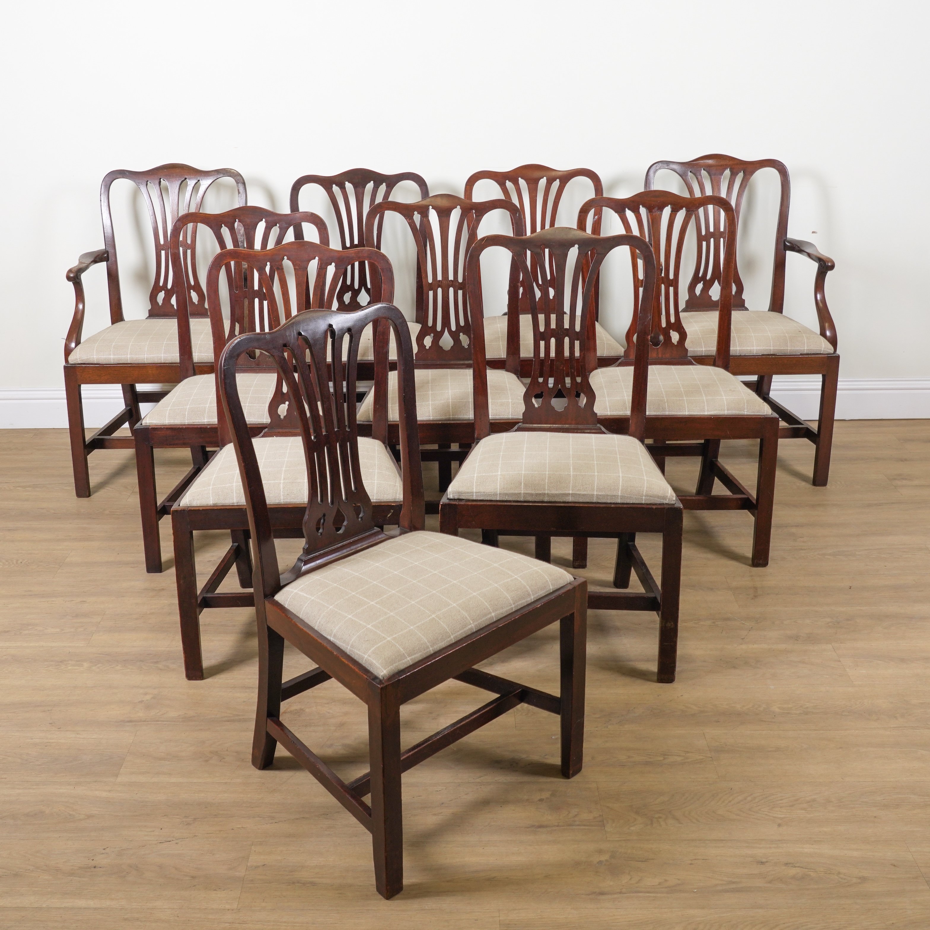 A SET OF TEN GEORGE III STYLE MAHOGANY FRAMED DINING CHAIRS (10)