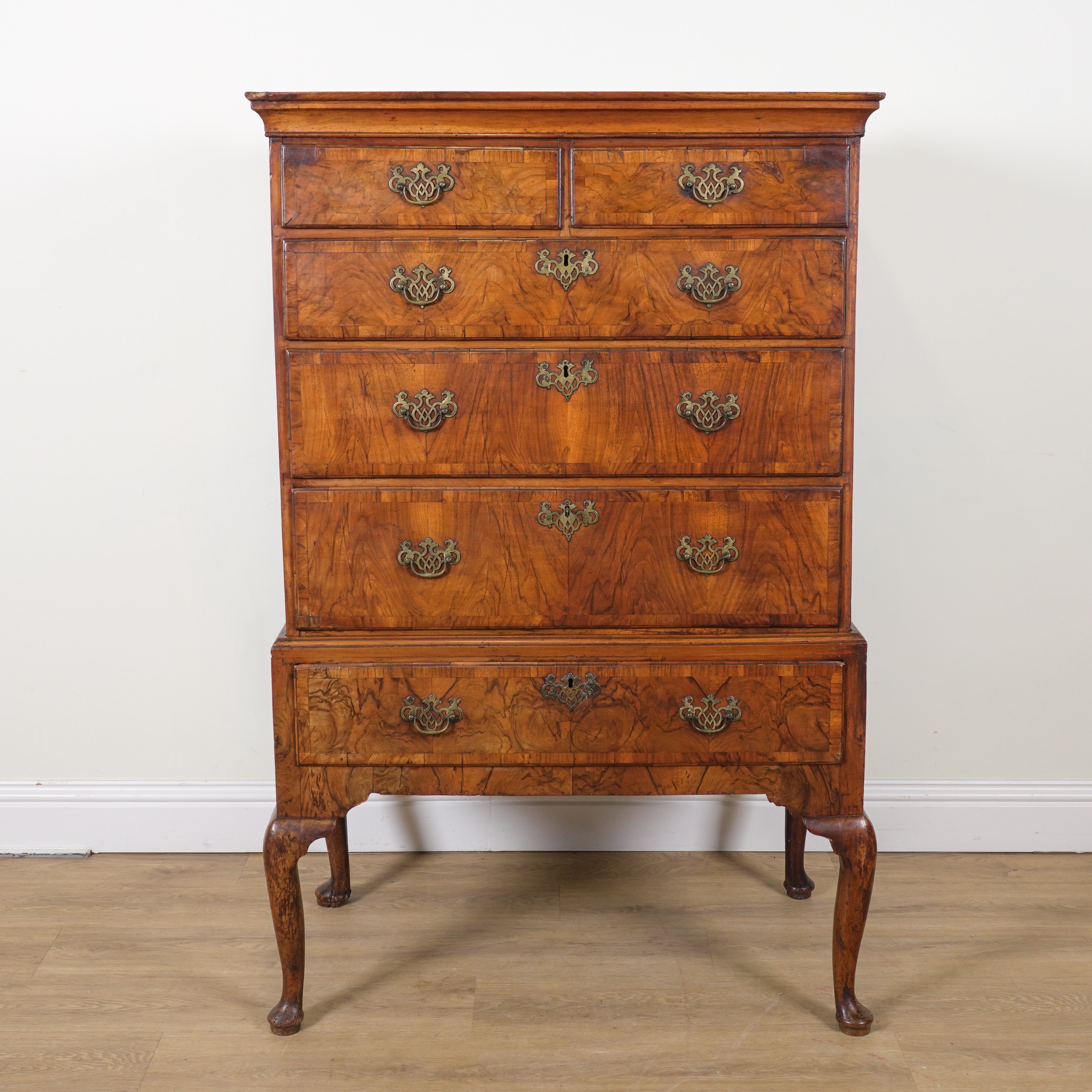 A MID 18TH CENTURY WALNUT CHEST ON STAND