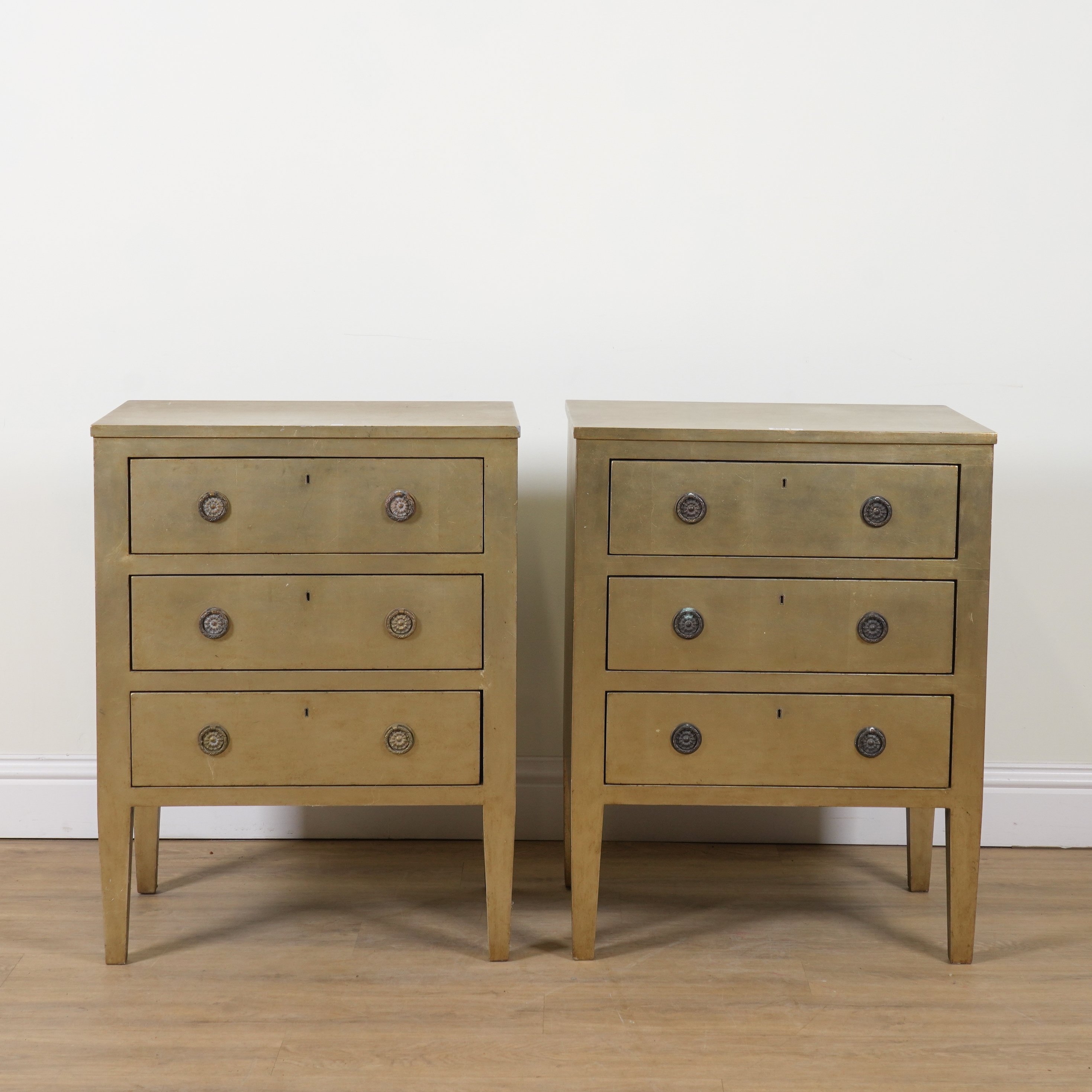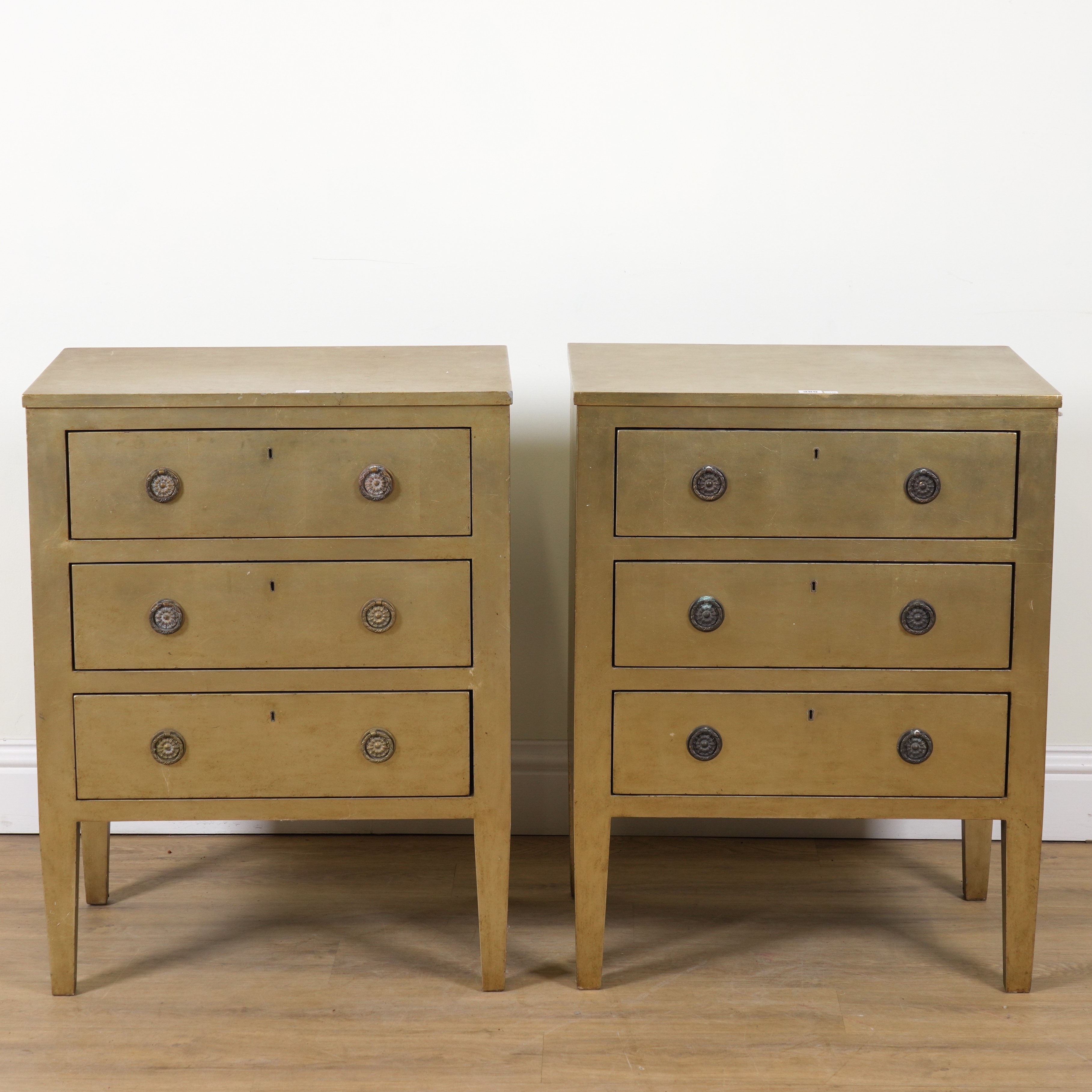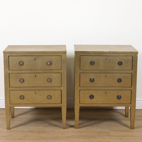 JULIAN CHICHESTER; A PAIR OF GOLD PAINTED THREE DRAWER BEDSIDE CHESTS (2)