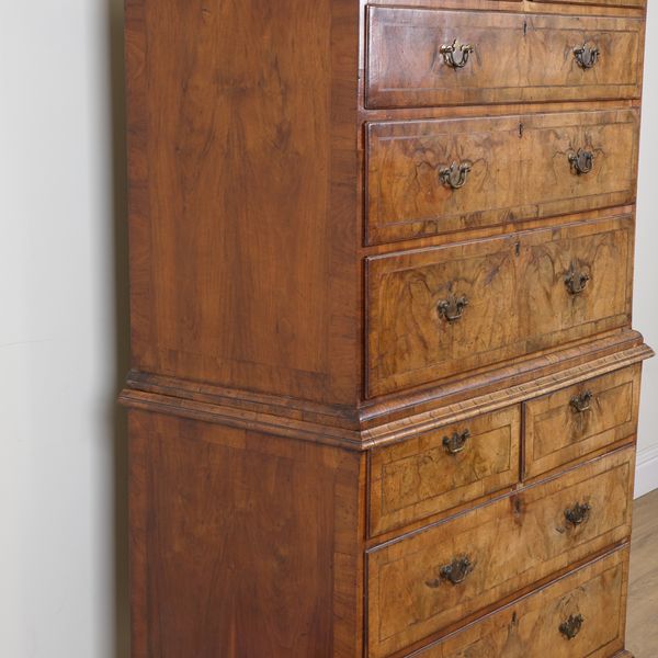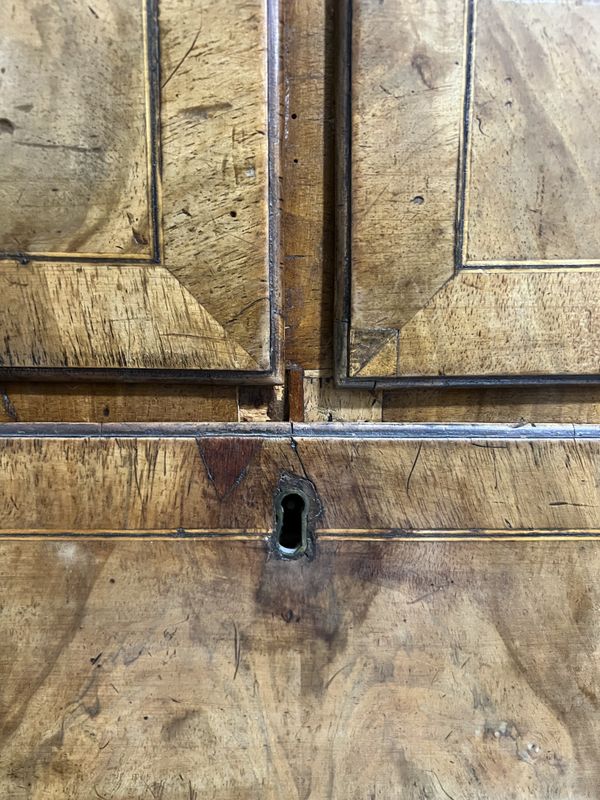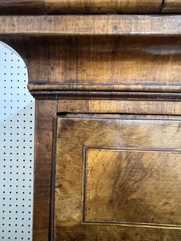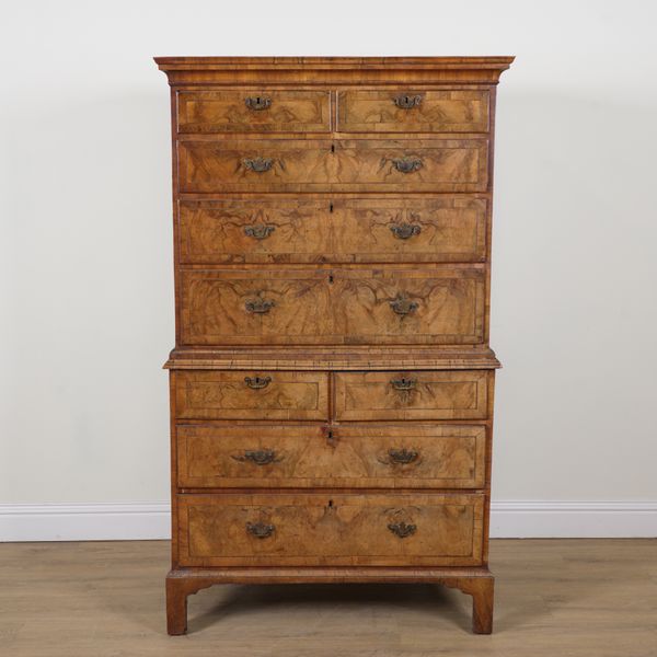 A MID 18TH CENTURY INLAID CROSSBANDED FIGURED WALNUT CHEST ON CHEST