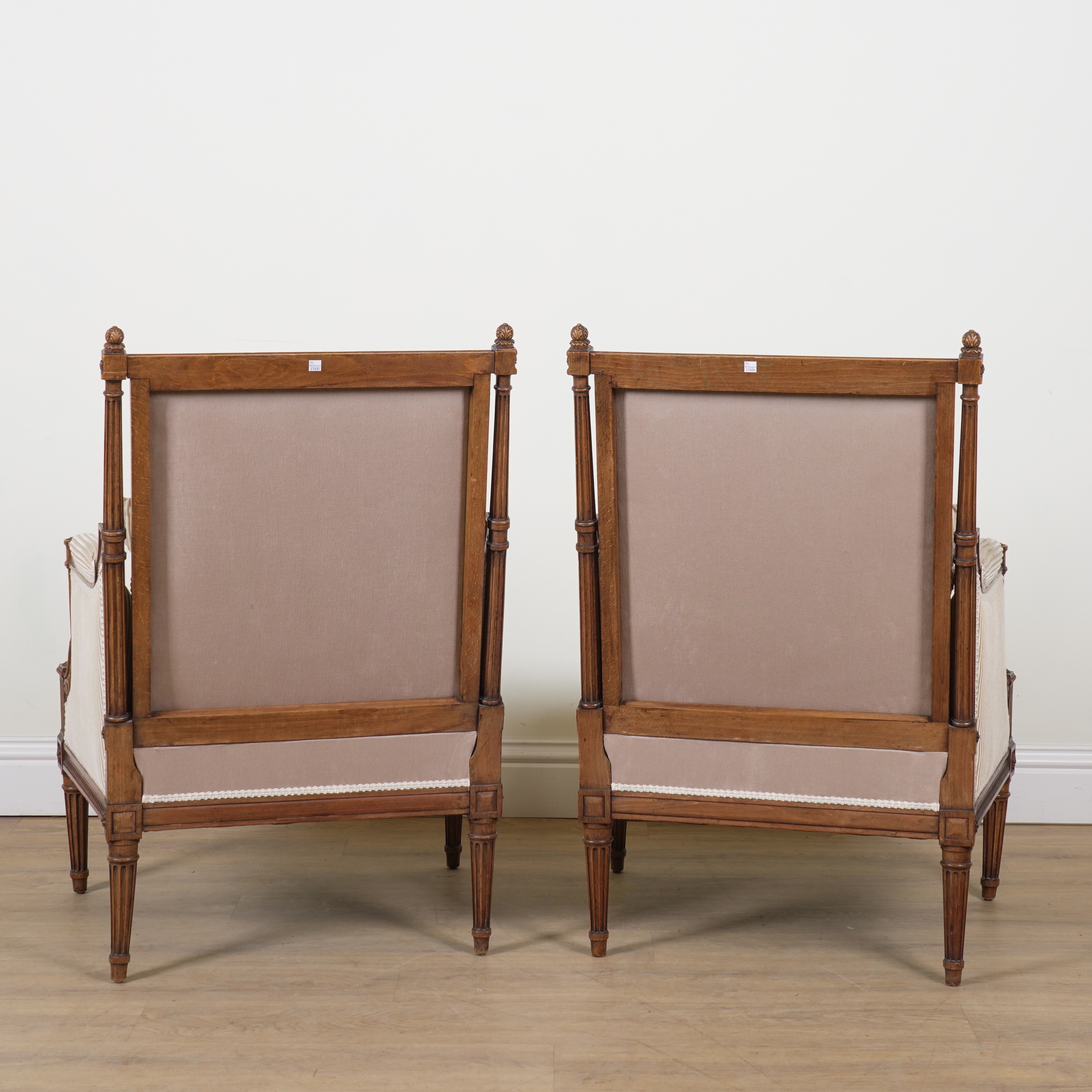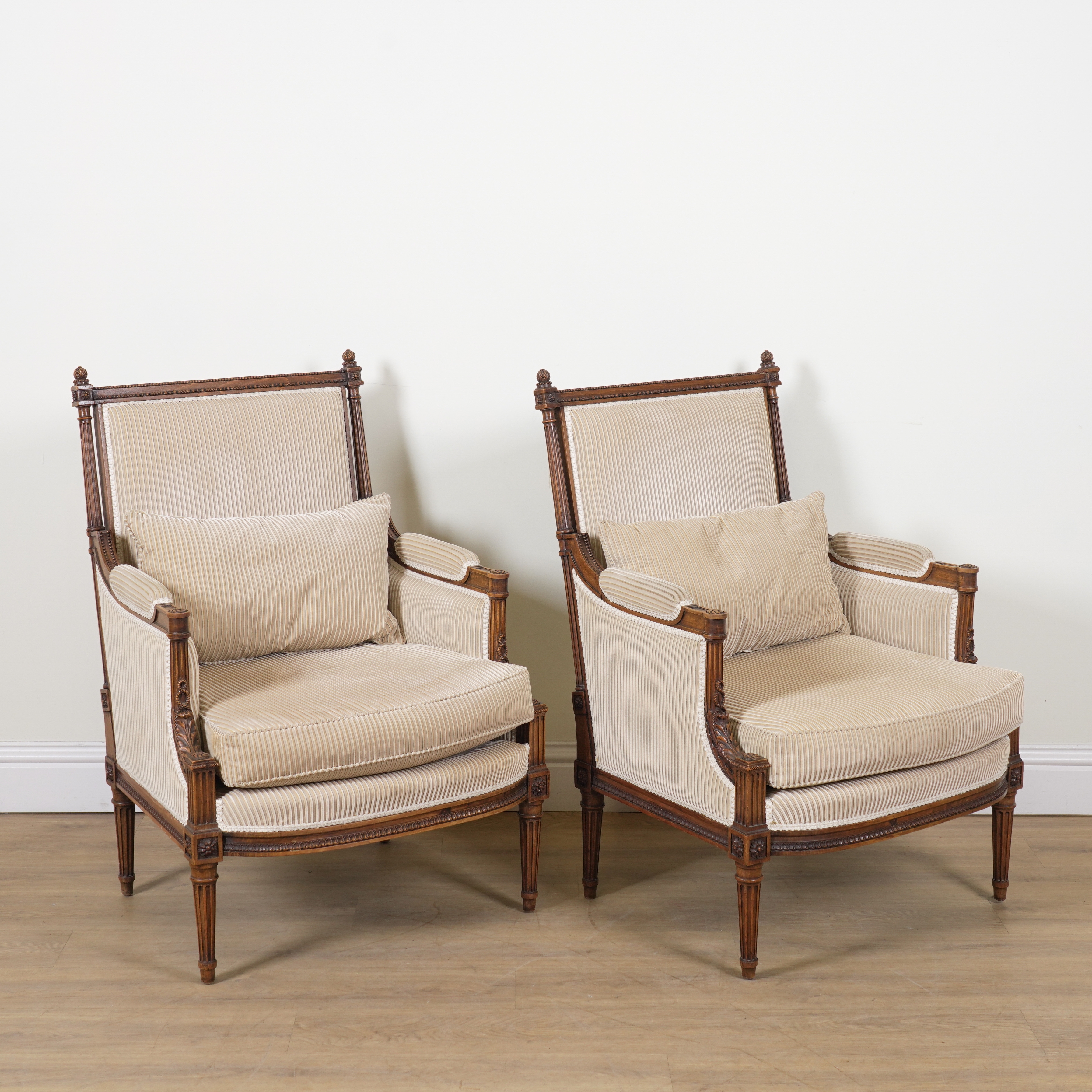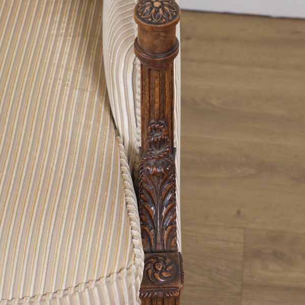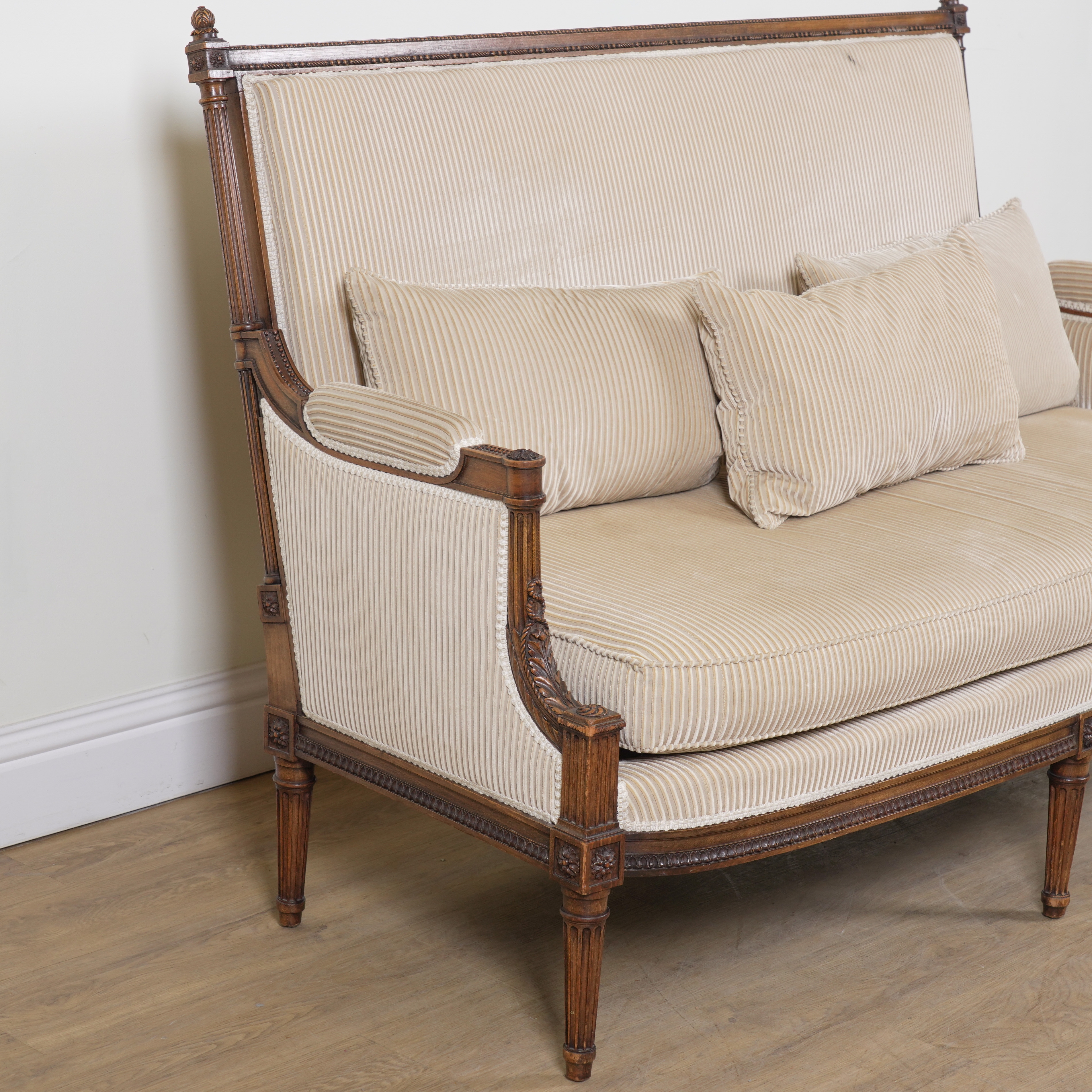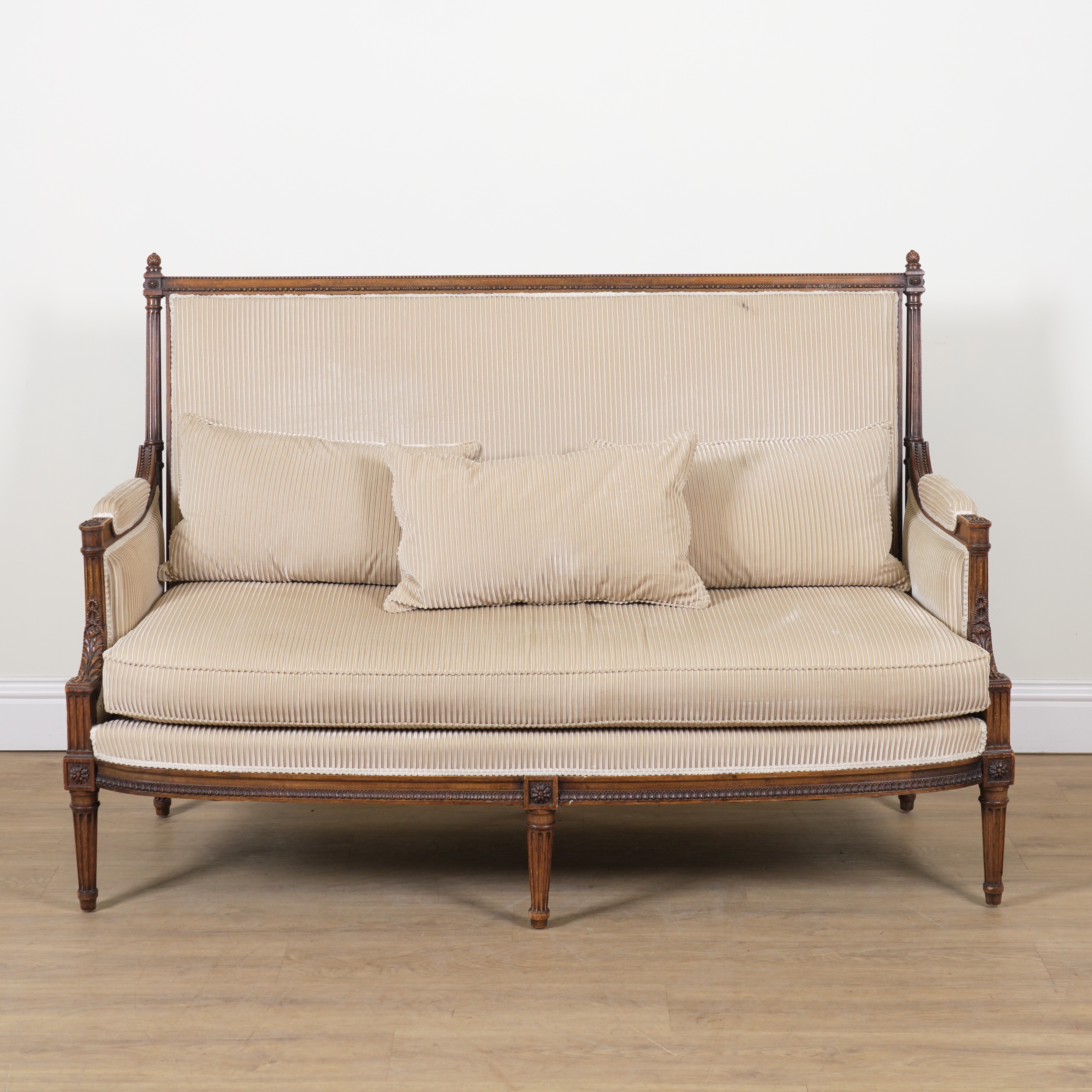 A LOUIS XVI STYLE STAINED BEECH FRAMED THREE PIECE SUITE (3)