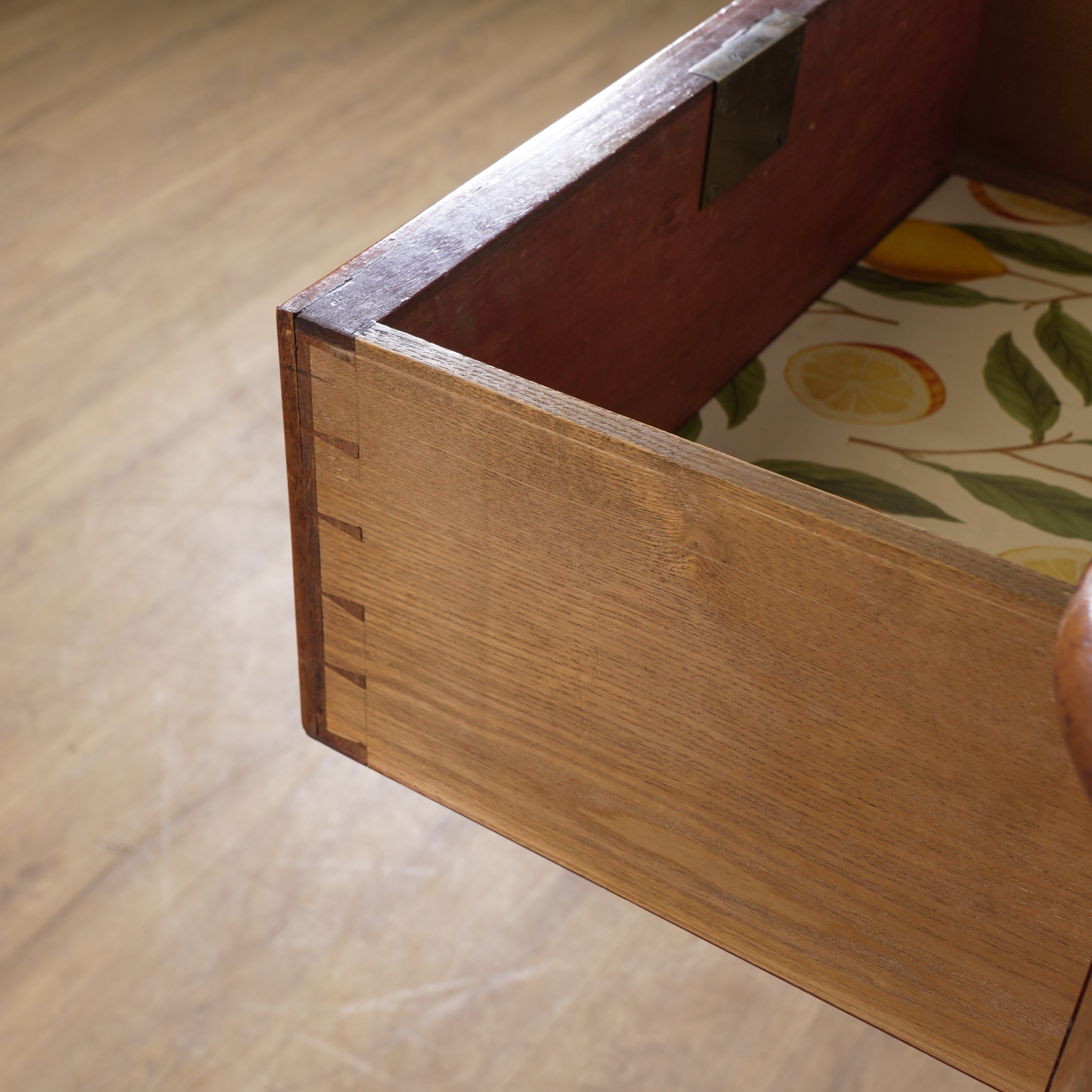 With two short over three long graduated drawers on turned supports, 122cm wide; 60cm deep; 116cm high