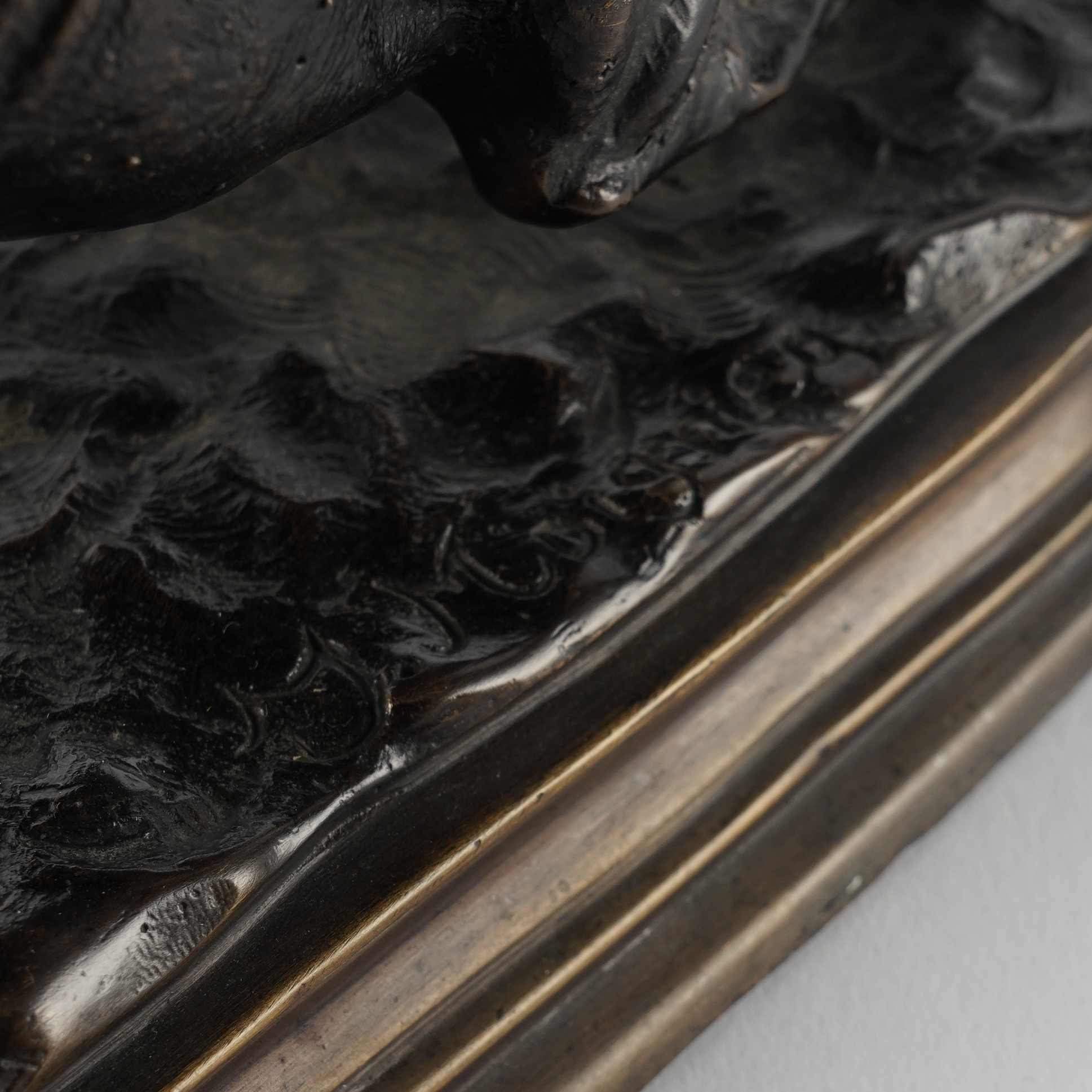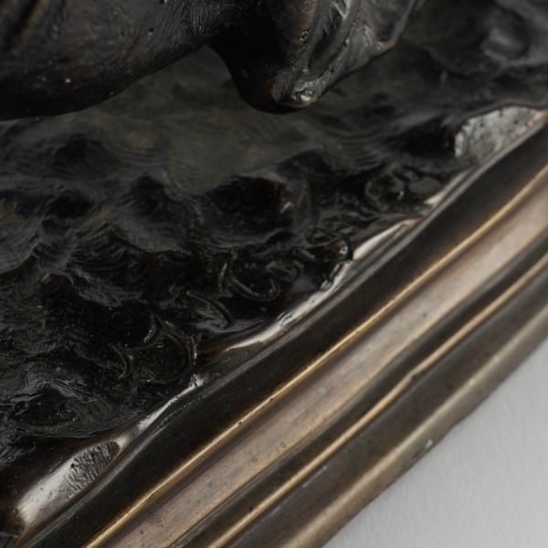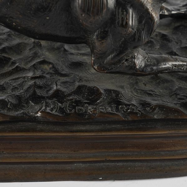 Modelled with hoop and stick, on a naturalistic oval base, cast with signature 'J. Moigniez', 30cm wide