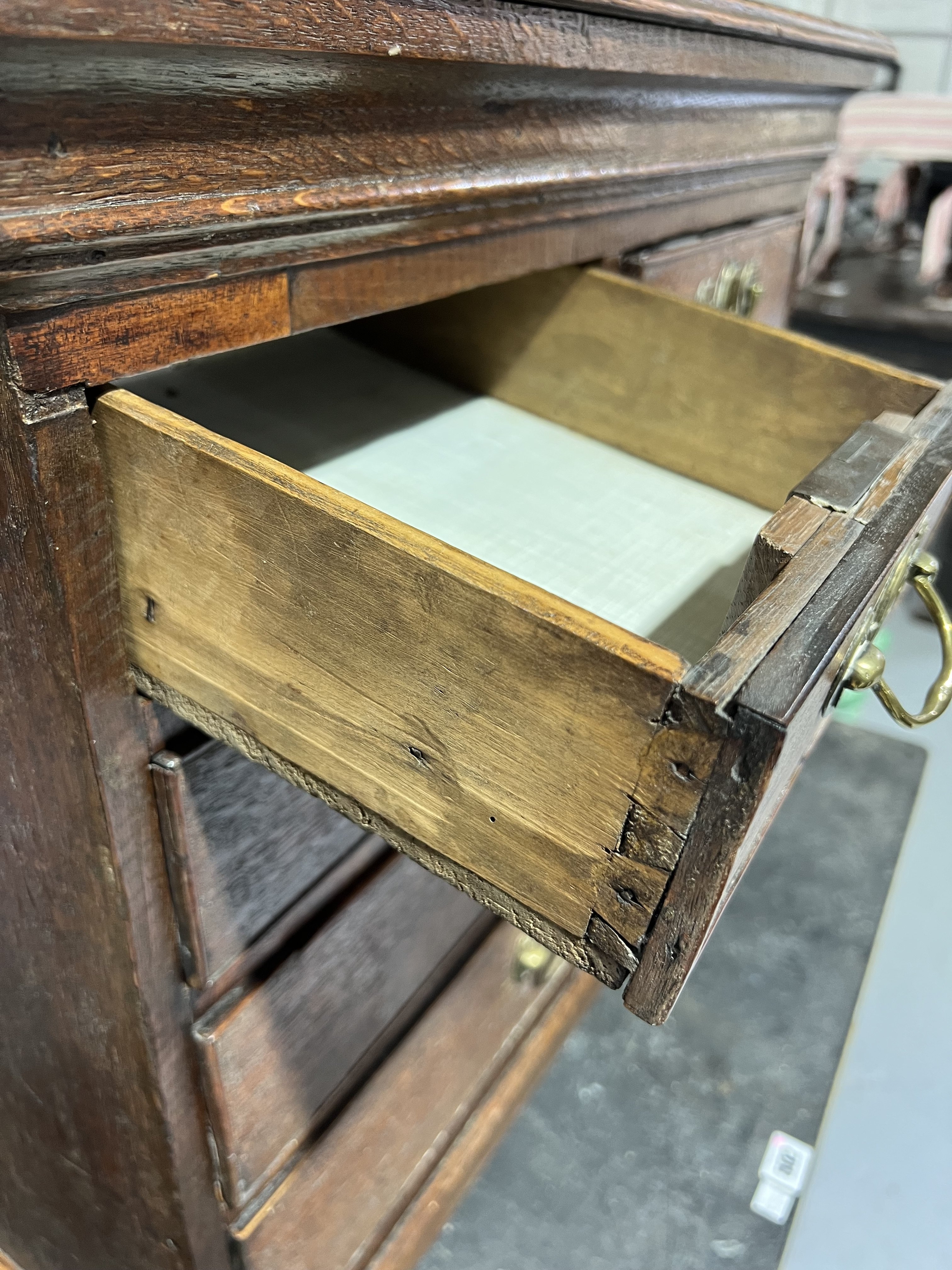 old marks and scratches expected with the age, later repairs present around the drawer front mouldings,
