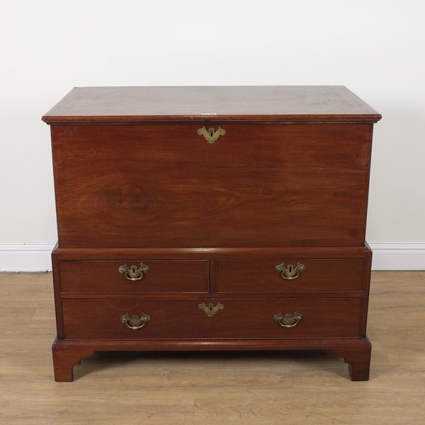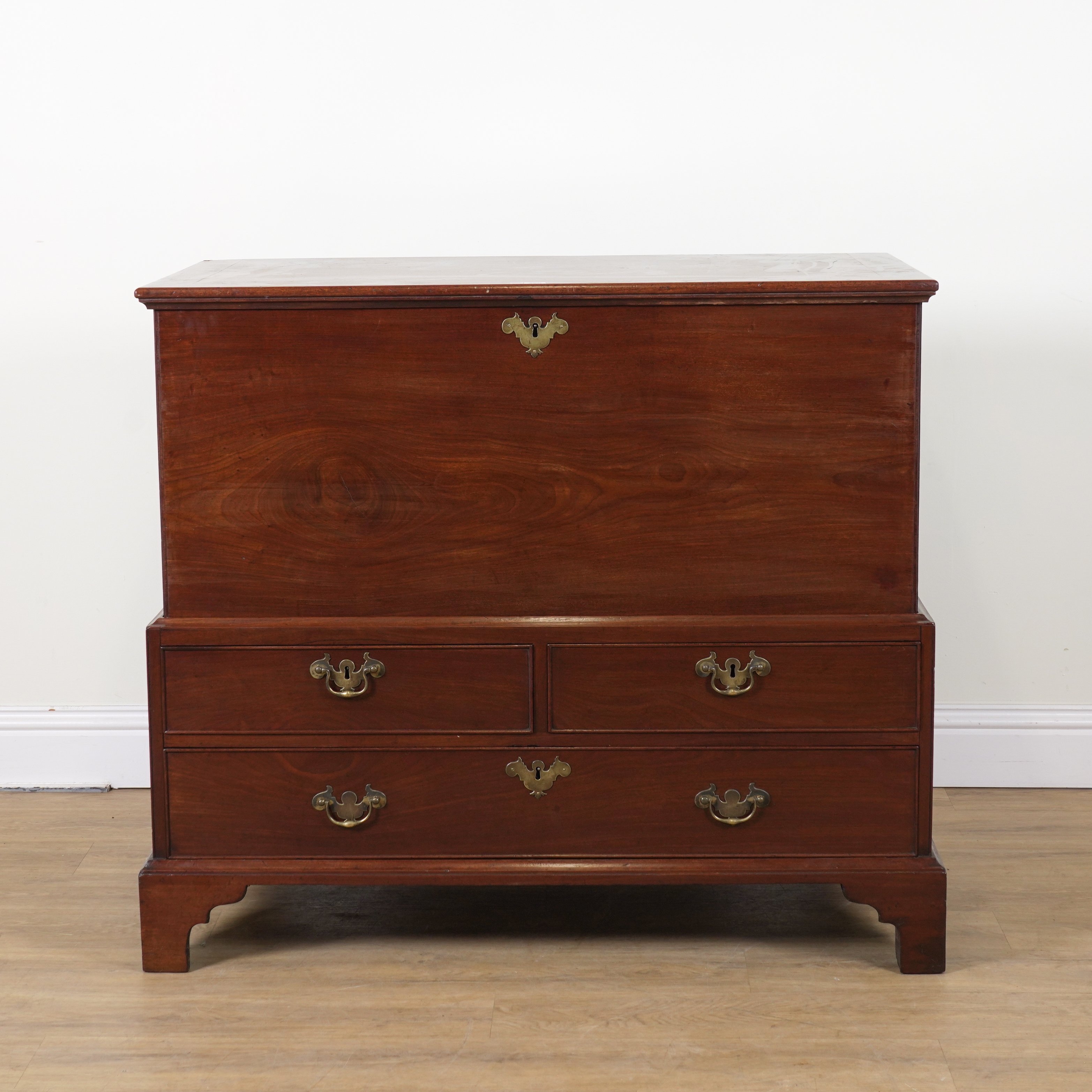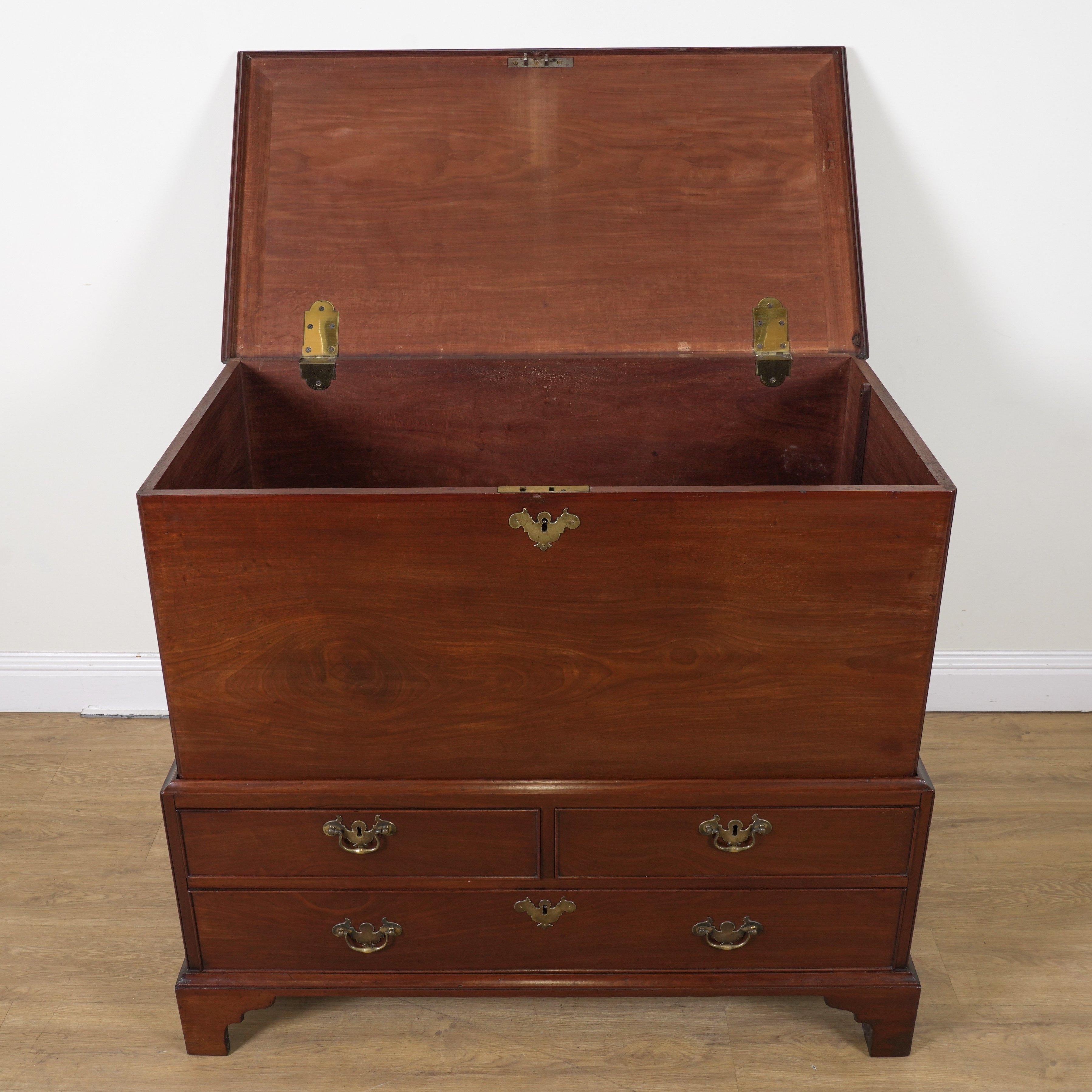 The lift top over two short and one long drawer on bracket feet, 118cm wide; 61cm deep; 101cm high