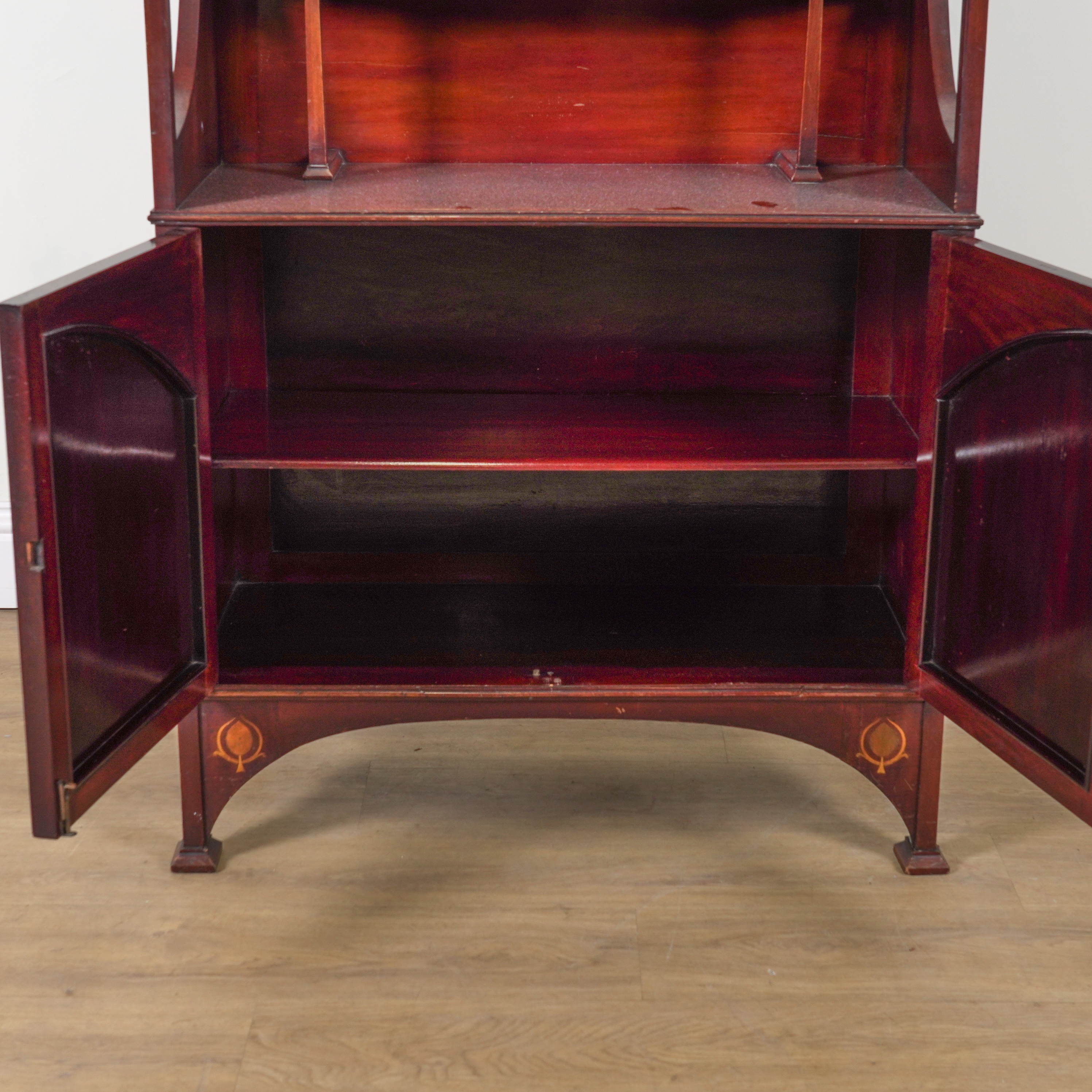 With glazed doors over mirrored back and cupboards, 91cm wide; 42cm deep; 177cm high