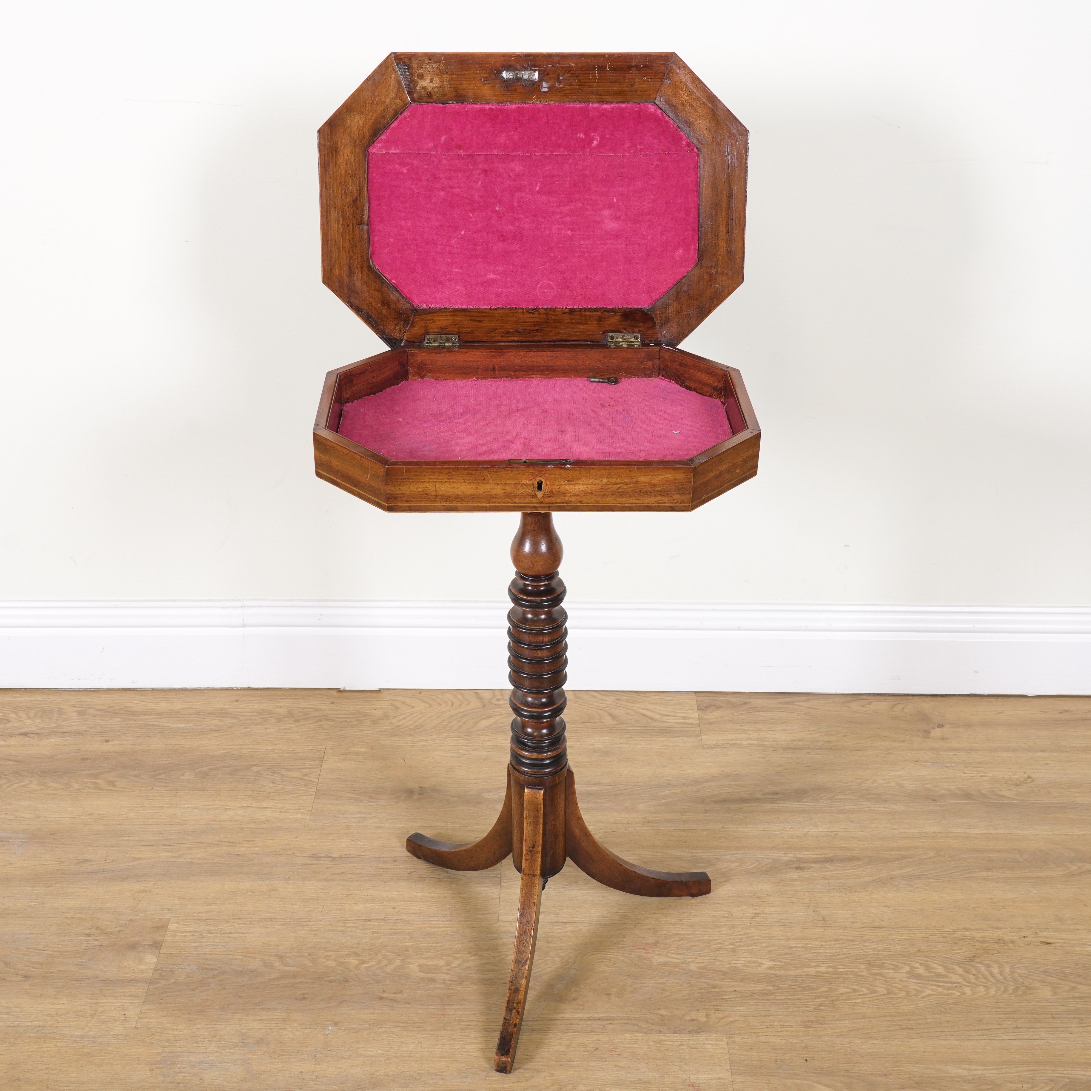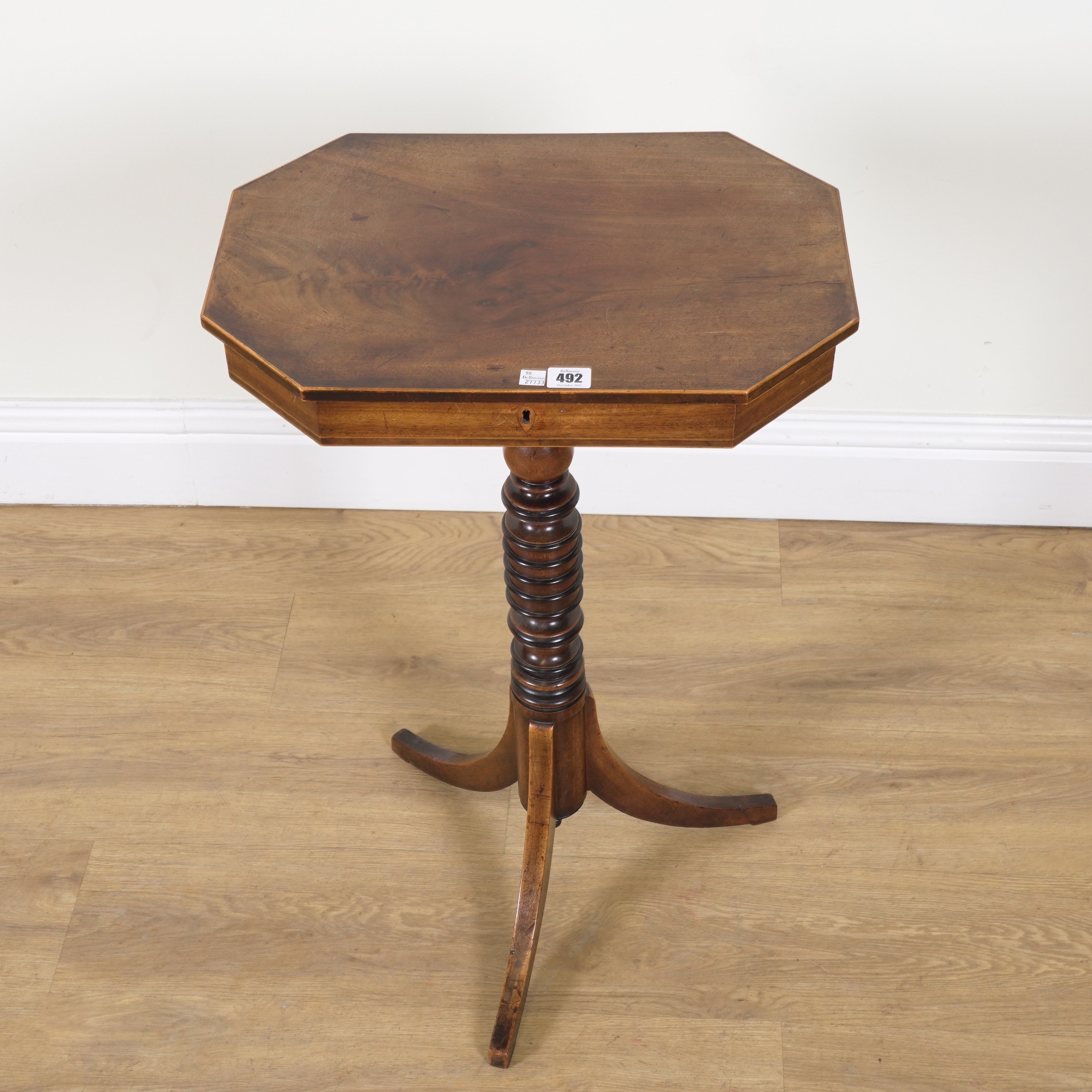 With ring turned column on three outswept supports, 49cm wide; 34cm deep; 76cm high