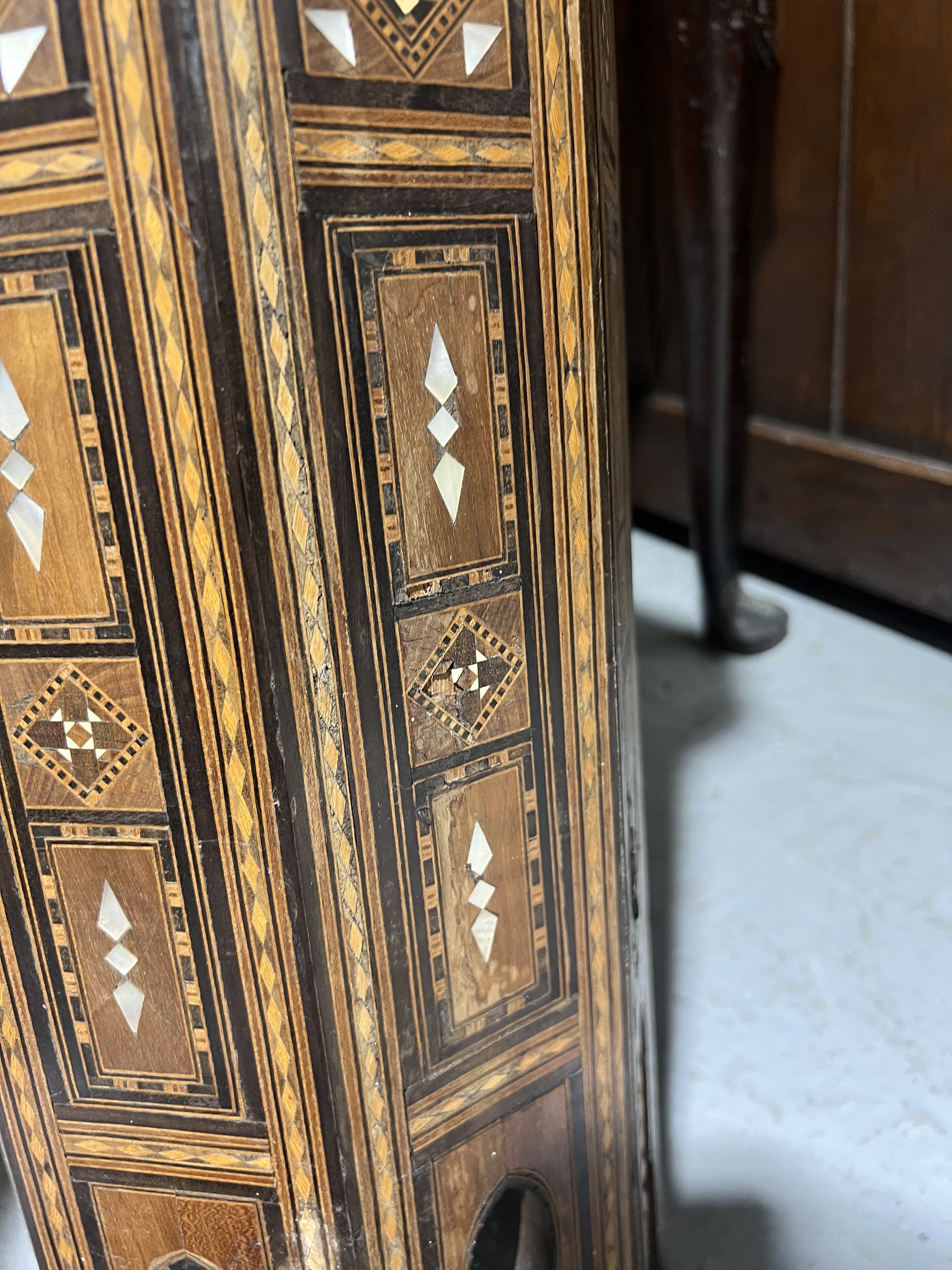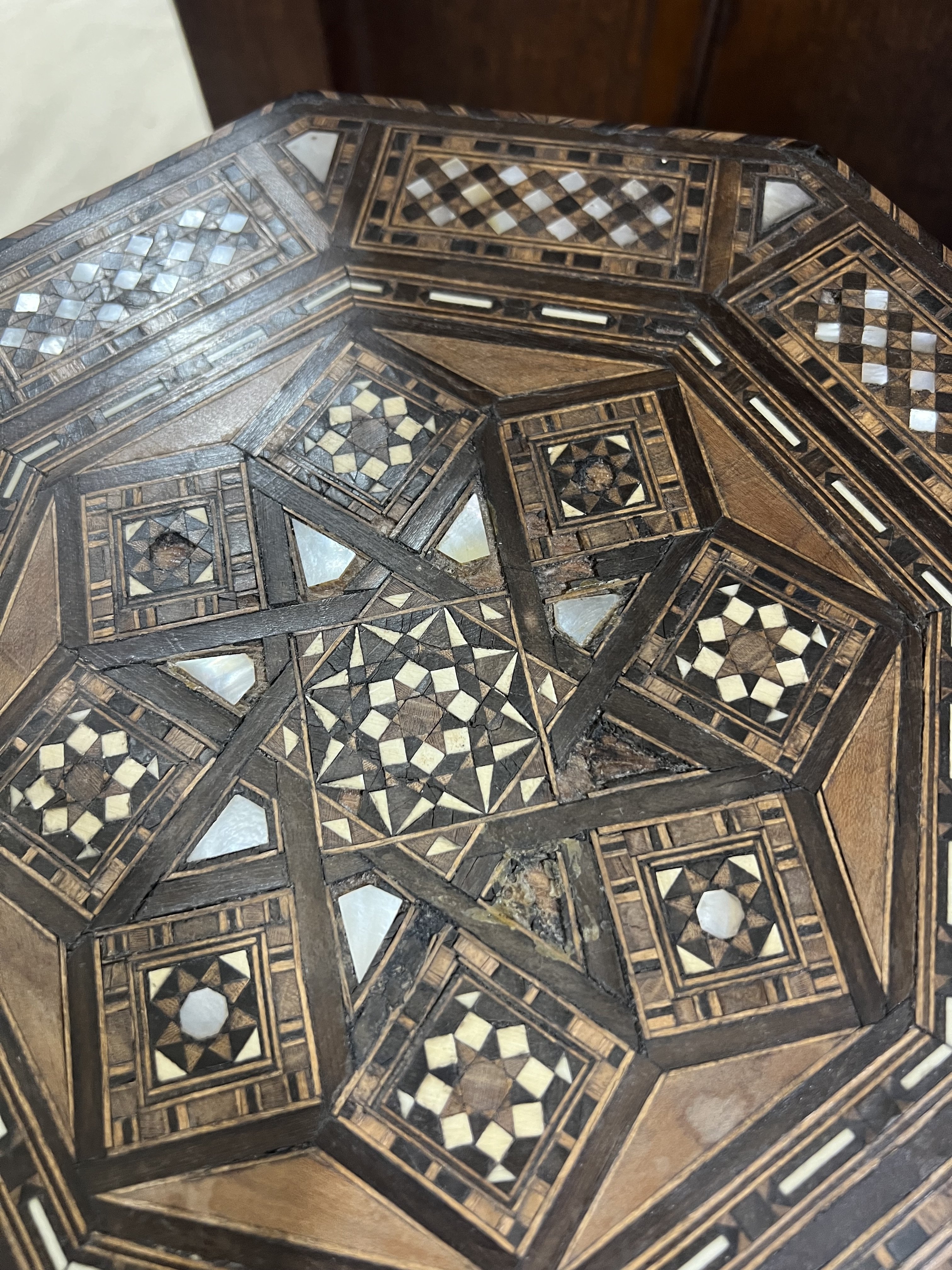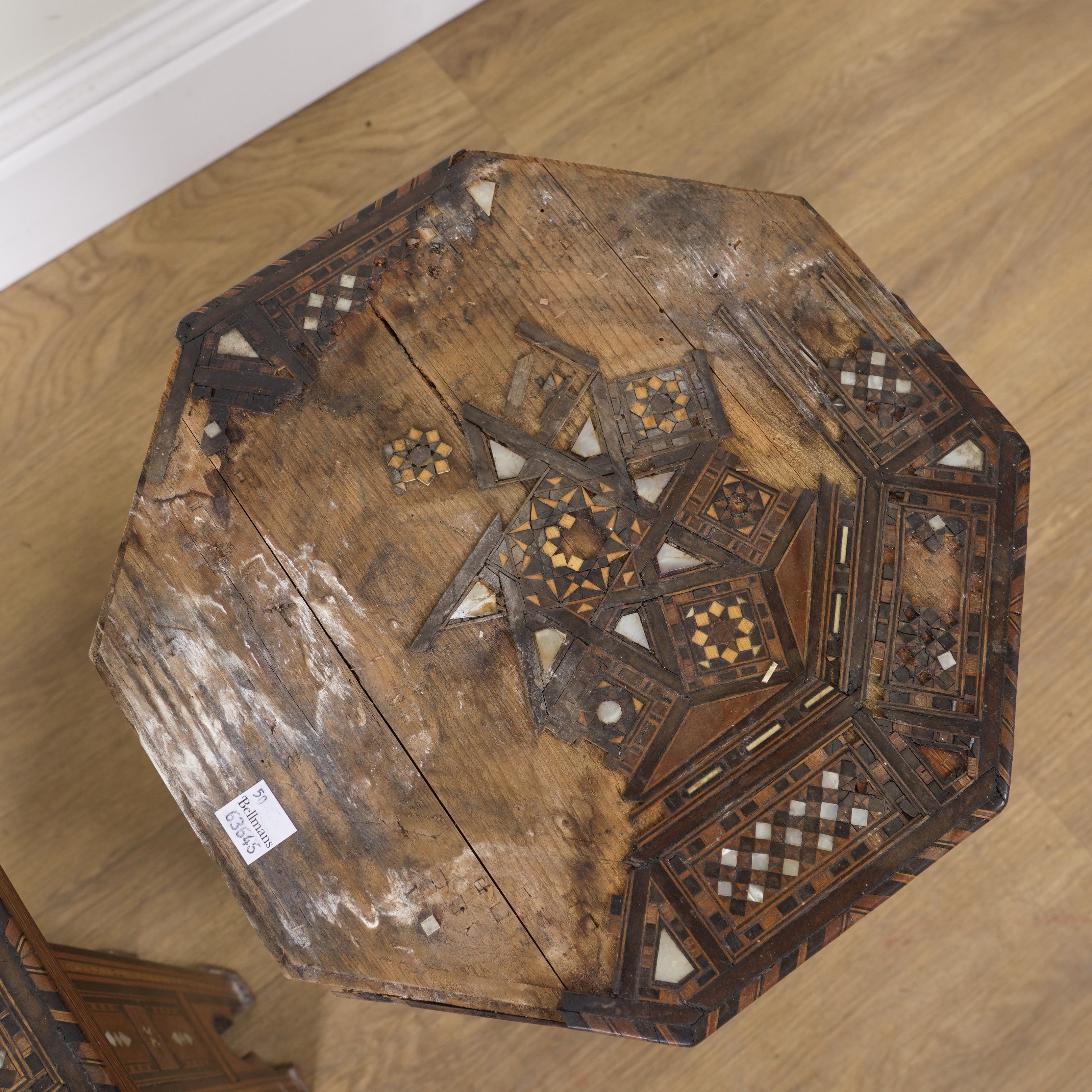 A PAIR OF EARLY 20TH CENTURY MOTHER-OF-PEARL AND BONE INLAID OCTAGONAL OCCASIONAL TABLES (2)