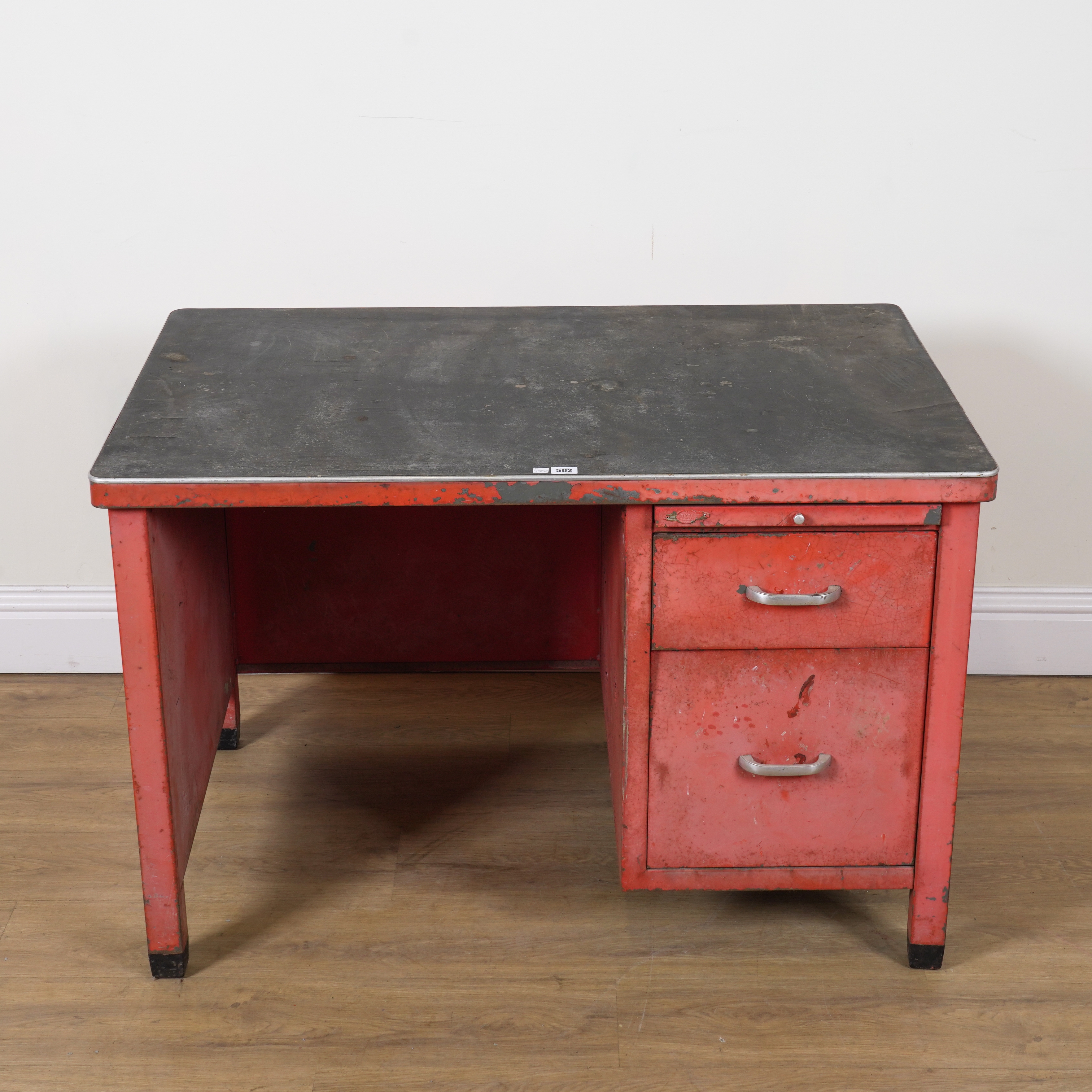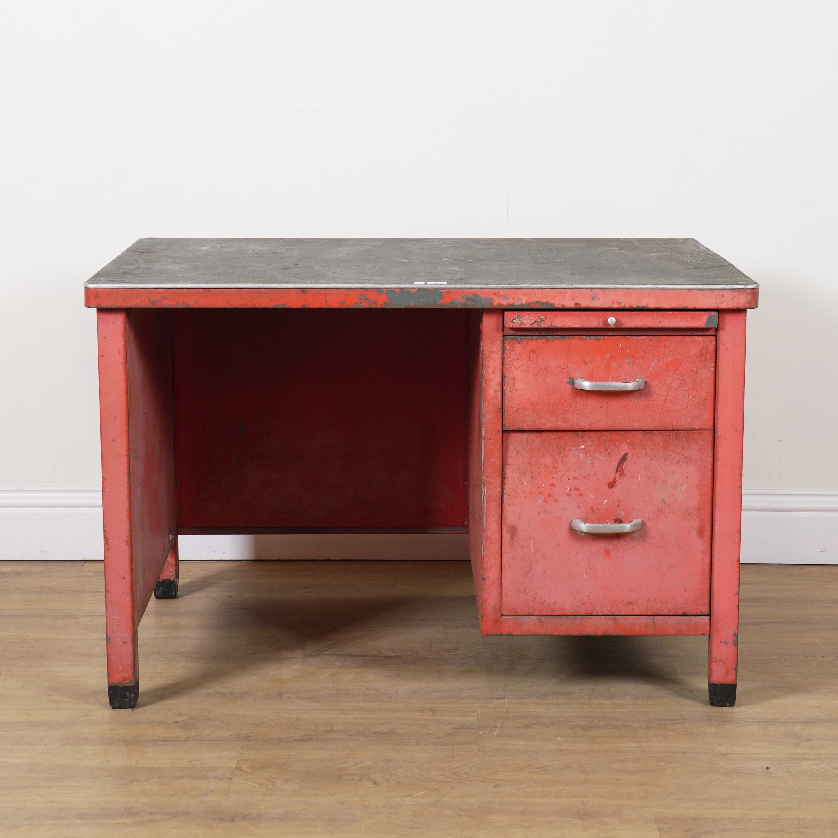 With brushing slide over two drawers, 107cm wide; 70cm deep; 70cm high