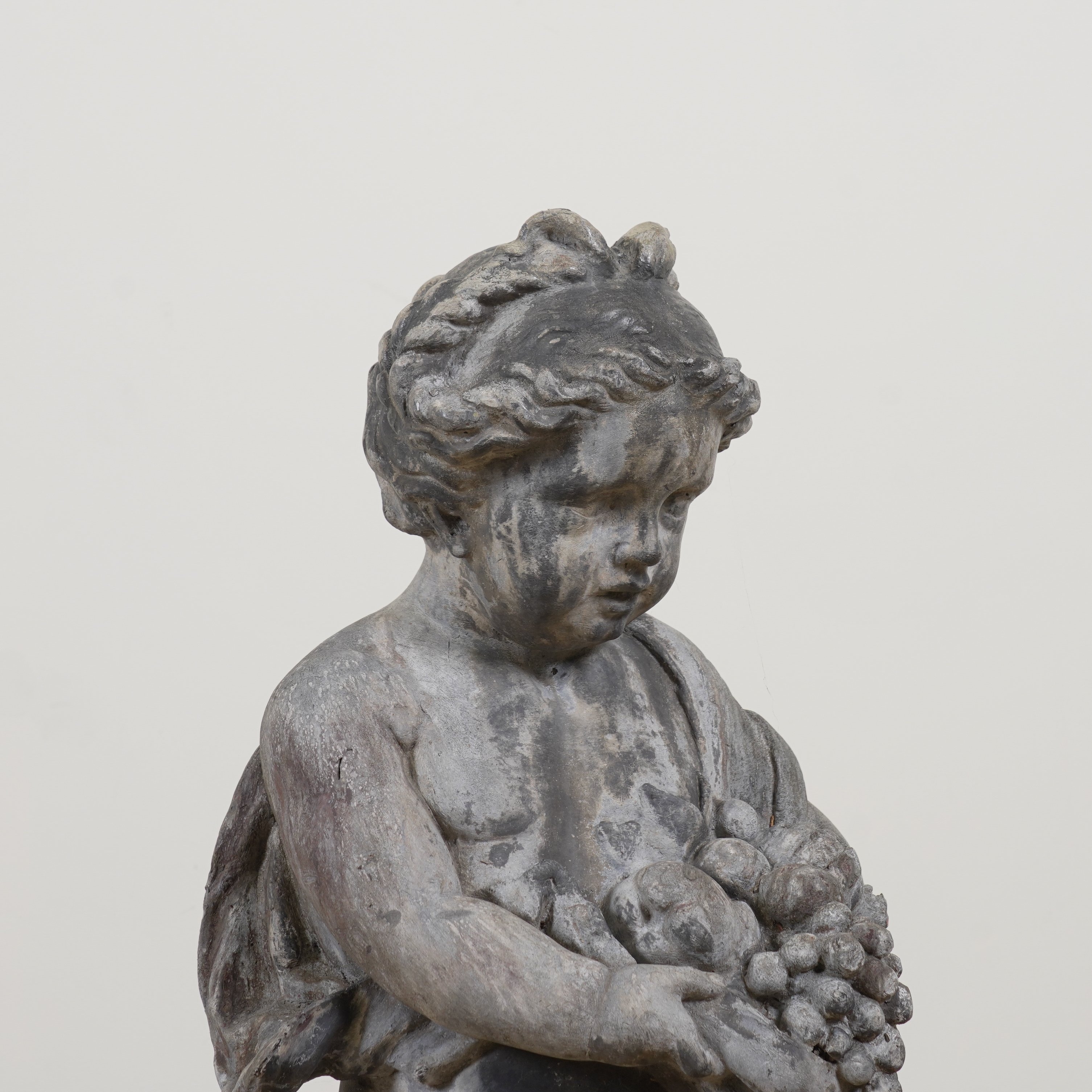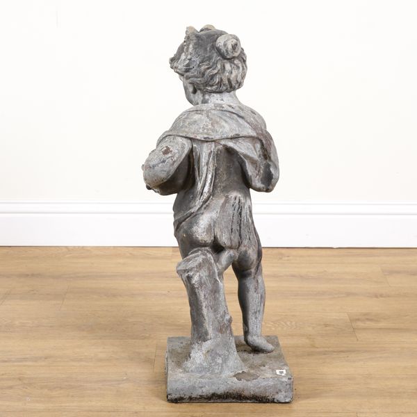 AN ENGLISH LEAD FIGURE OF A PUTTO OR INFANT BACCHANTE
